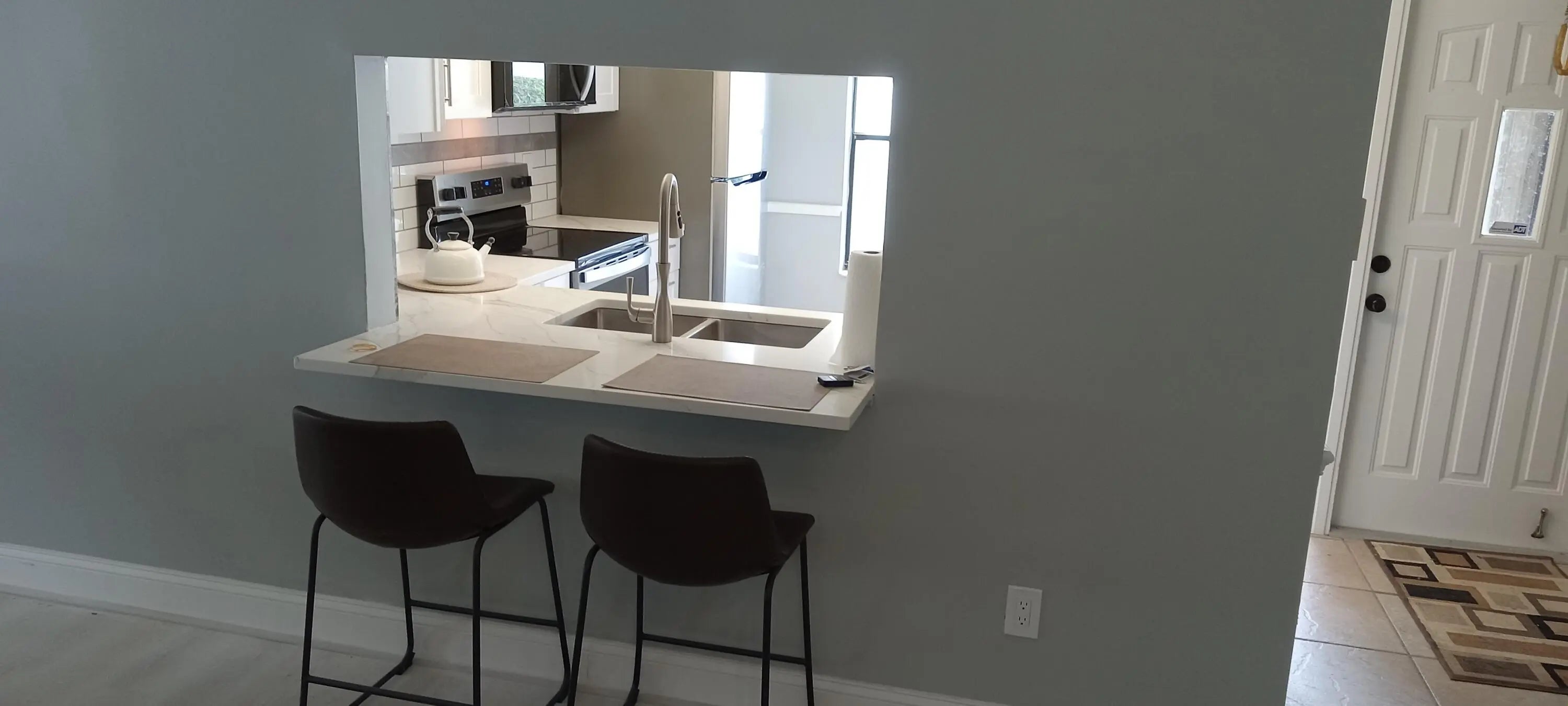 CABLE TV AND SECURITY INCLUDED IN MONTHLY MAINTENANCE. This property had been completely renovated and remodelled. New: Paint, HVAC, Cabinets, Appliances, Baths, Flooring, window treatments, cable TV's. New paint, trim, garage floor. Home is partly furnished in living area. Couches, chairs, TV, Dining table. Property includes private back yard and florida room.