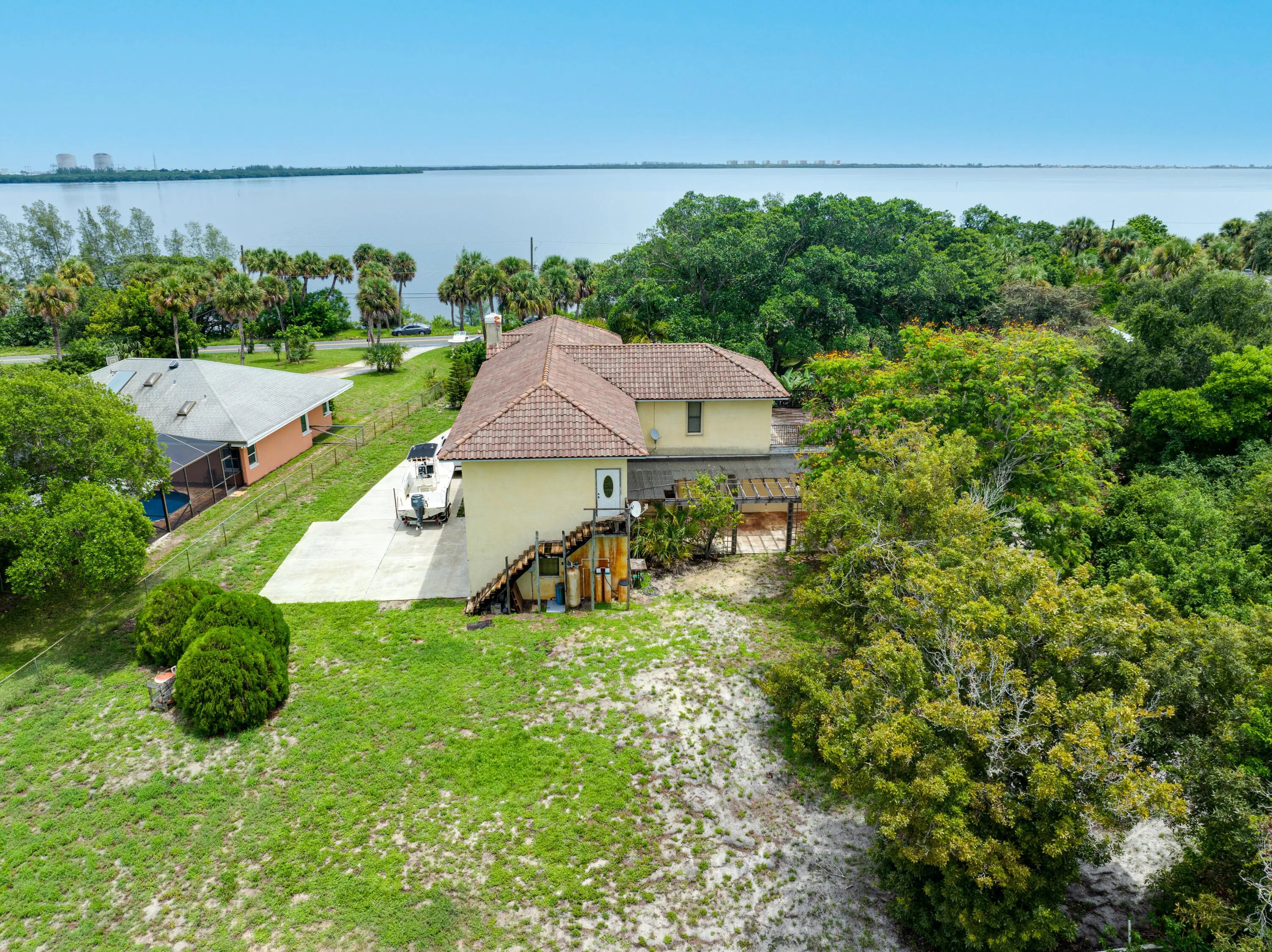 THIS WATERVIEW PROPERTY SITS ON ALMOST 2 ACRES FACING THE INDIAN RIVER AND IS 3,293 LIVING SQ. FEET WITH AN ADA BEDROOM AND FULL BATH WITH ITS OWN ENTRANCE, PLUS HALF BATH DOWNSTAIRS AND TWO BEDROOMS AND FULL BATH PLUS HALF BATH UPSTAIRS. THE HOME FEATURES A WOOD BURNING FIREPLACE; ACCORDIAN SHUTTERS THROUGHOUT AND ELECTRONIC SHUTTERS ON THE TWO LARGE FRONT WINDOWS; THE GARAGE HAS 2 LARGE SPACES AND 1/2 SPACE FOR A GOLF CART; INCLUDES ALL APPLIANCES WITH A DOUBLE CONVECTION OVEN; GRANITE COUNTER TOPS; LARGE PANTRY; NEWER HOT WATER HEATER; TWO ZONED A/C UNITS; NEWER WELL WATER SYSTEM; AND 5-ZONE SPRINKLERS. PARK YOU WATER TOYS AND CARS/RV'S ON THE SPACIOUS ACREAGE. PRICED TO SELL!
