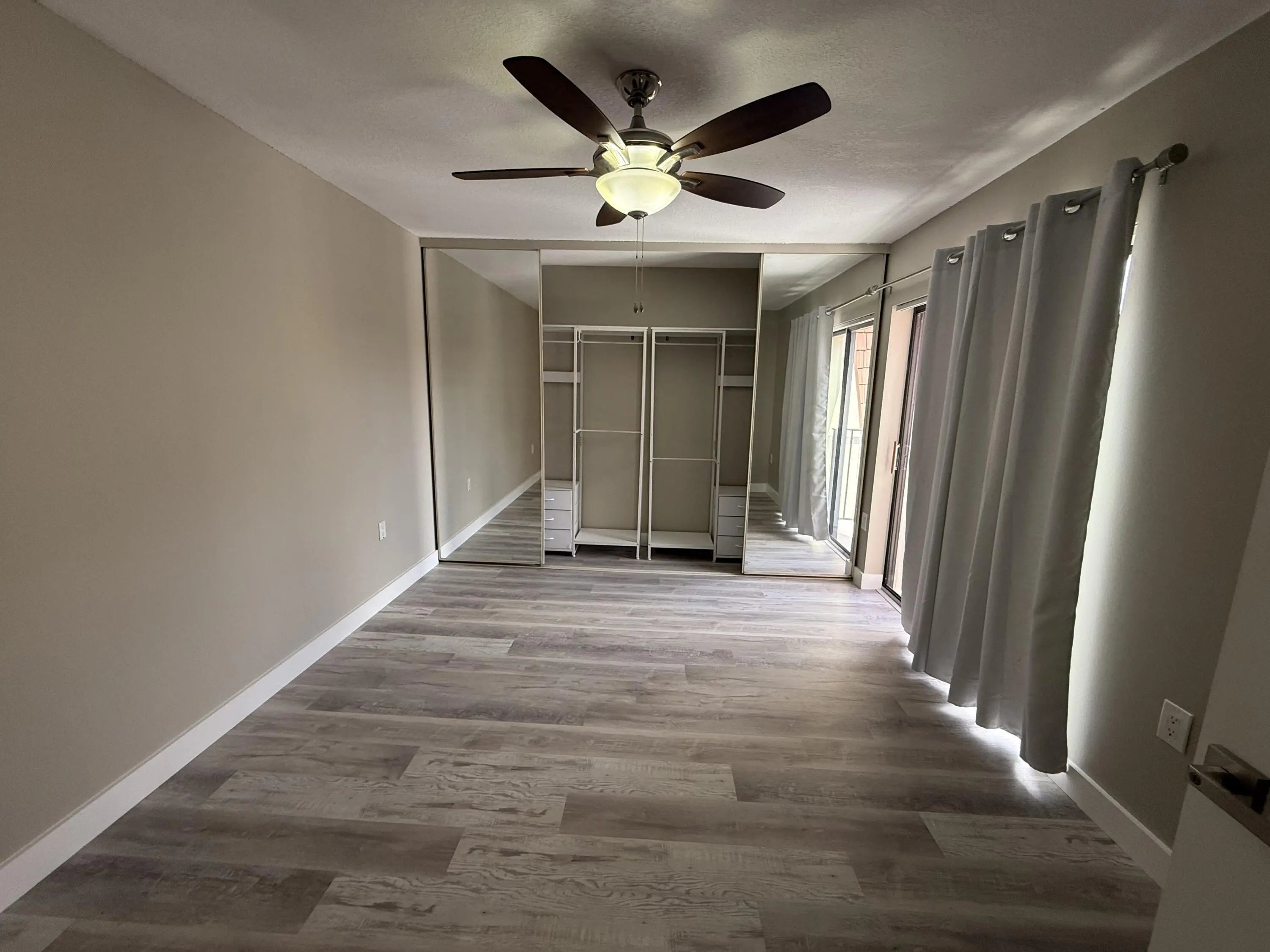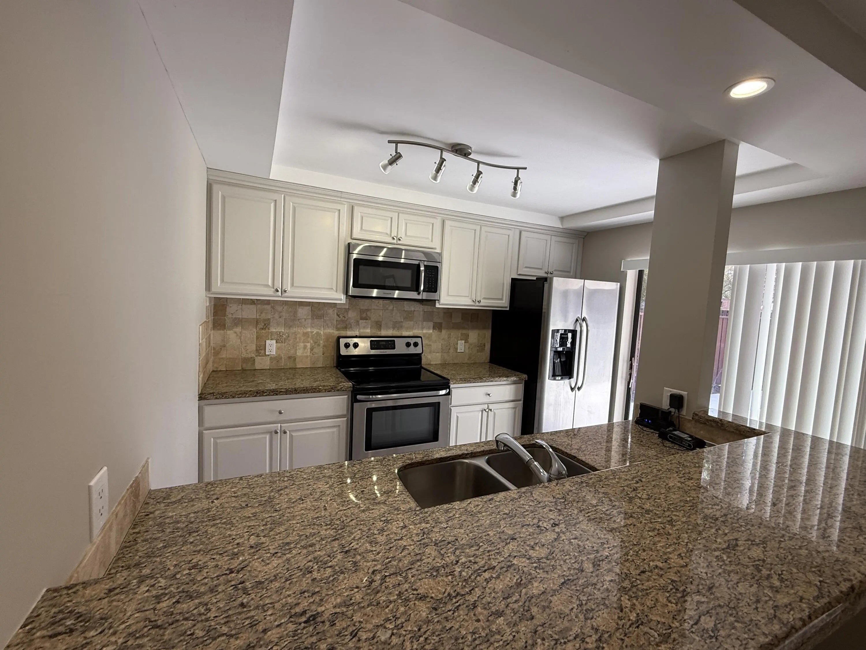 Beautifully remodeled townhome featuring brand-new Flooring throughout and a fresh, modern feel. The updated kitchen includes a new dishwasher, while a new water heater adds peace of mind. Bathrooms have been tastefully renovated, and custom closet organizers maximize storage space. Knockdown finish on ceilings-no popcorn-enhance the clean look, complemented by ceiling fans for added comfort. Step outside to a large, private fenced courtyard perfect for relaxing or entertaining. Roof replaced in 2025. Convenient parking is located just outside the unit for easy access. Move-in ready and thoughtfully upgraded, this home offers style and comfort. Neighborhood conveniently located near Turnpike and I-95 entrances for easy community to the Palm Beaches.