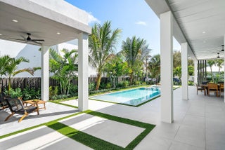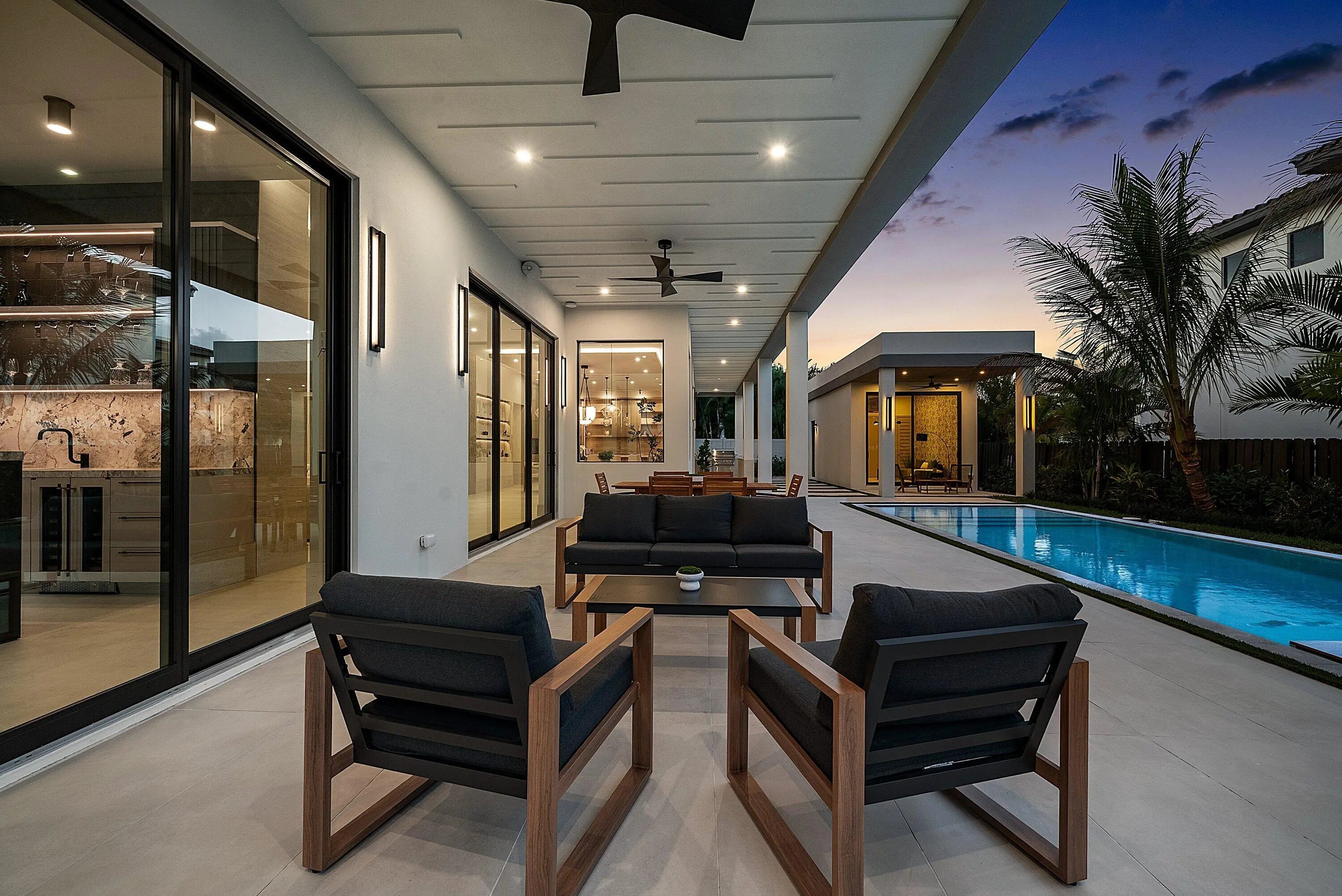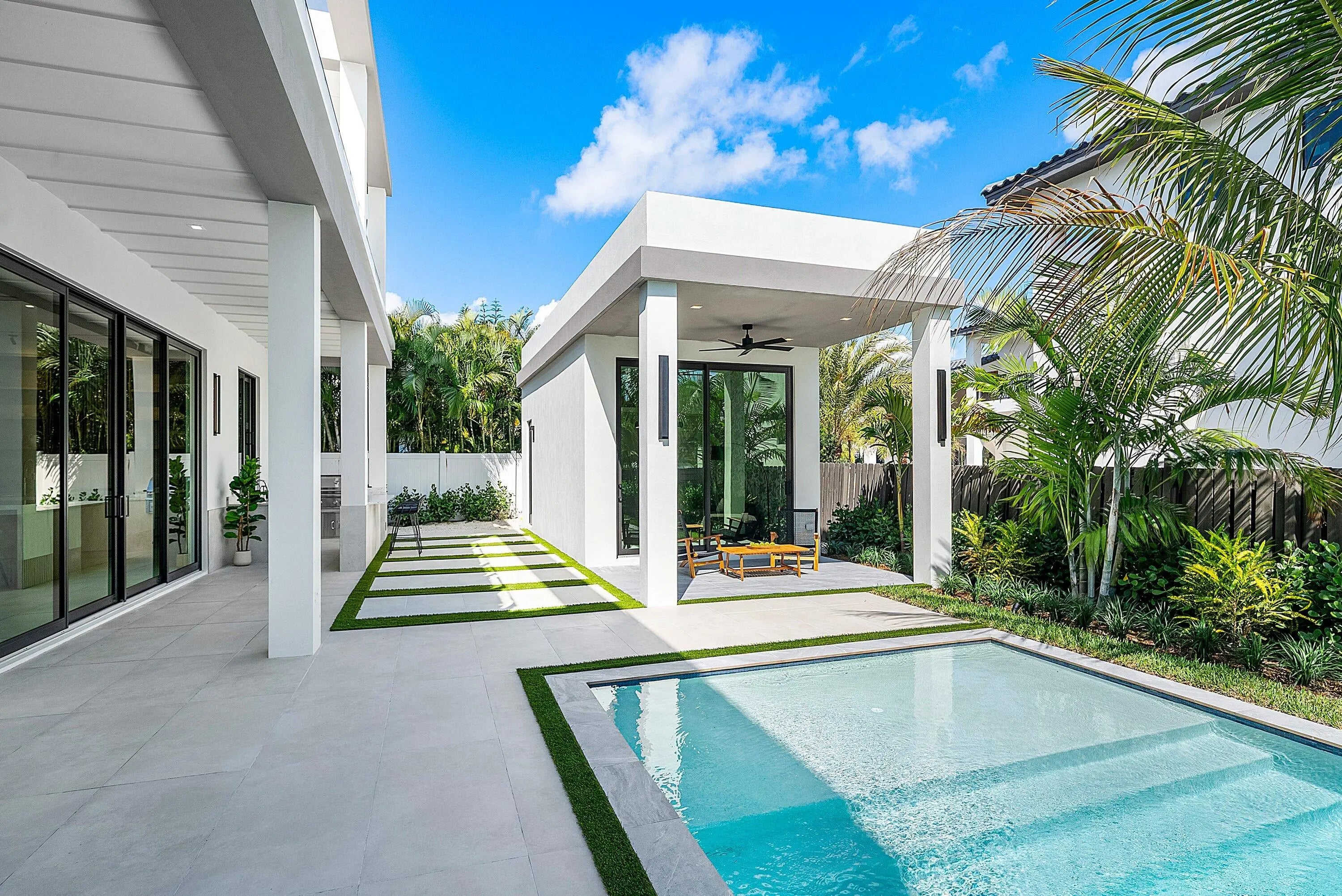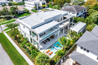 Introducing the crown jewel of Boca Villas -- a newly constructed architectural residence where elevated design, exceptional craftsmanship, and an unmatched walkable location converge. Built by the renowned Primo Luxury Homes and thoughtfully designed by Ariana Tascione, this extraordinary corner-lot estate is poised to become the crown jewel of the neighborhood. Perfectly positioned just steps from the ocean and moments from The Boca Raton, Mizner Park, Royal Palm Place, and the vibrant shops and five-star dining along East Palmetto Park Road, this residence offers an unparalleled lifestyle where luxury, location, and design converge. Spanning 5,815 square feet under air and 9,344 total square feet, the home showcases five bedrooms, five full and one-half baths, a private office, club room with custom bar, dedicated gym space, and two full laundry rooms for ultimate convenience. One bedroom suite is ideally located on the first level for guests. From the moment you enter, the home reveals a seamless blend of sophisticated architecture and modern elegance. Elevated, designer-selected finishes and exceptional craftsmanship are showcased throughout, with custom detailing, refined materials, and a level of quality rarely found in new construction. Expansive living spaces are enhanced by cove lighting and integrated LED illumination, while walls of glass frame the outdoor living areas and flood the interiors with natural light. The showpiece double-island kitchen is designed for both entertaining and everyday living, complemented by a walk-in butler's pantry offering abundant storage and preparation space. The primary suite is a private retreat featuring two expansive custom closets, spa-inspired baths, and access to one of the home's three oversized balconies, creating a true sanctuary above the city. An all-glass elevator connects every level of the residence, while the upper-level loft offers a versatile gym or sitting lounge, opening to a spectacular balcony complete with a sun-filled solarium. Outdoor living is equally impressive. A resort-style pool and spa anchor the backyard, surrounded by multiple entertaining spaces including a summer kitchen and outdoor barbecue area, ideal for al fresco dining and gatherings year-round. Adding to the home's flexibility is a separate cabana/guest house, perfect for visitors, extended family, or a private retreat. Additional highlights include: " Three-car garage with expansive driveway " Partially integrated smart home technology " Three oversized balconies for seamless indoor-outdoor living " Club room with full bar designed for entertaining " Corner lot offering exceptional presence and natural light This remarkable residence offers the rare opportunity to own a newly built architectural masterpiece in one of Boca Raton's most desirable walkable neighborhoods -- moments from the beach, world-class dining, and the best of downtown Boca.
