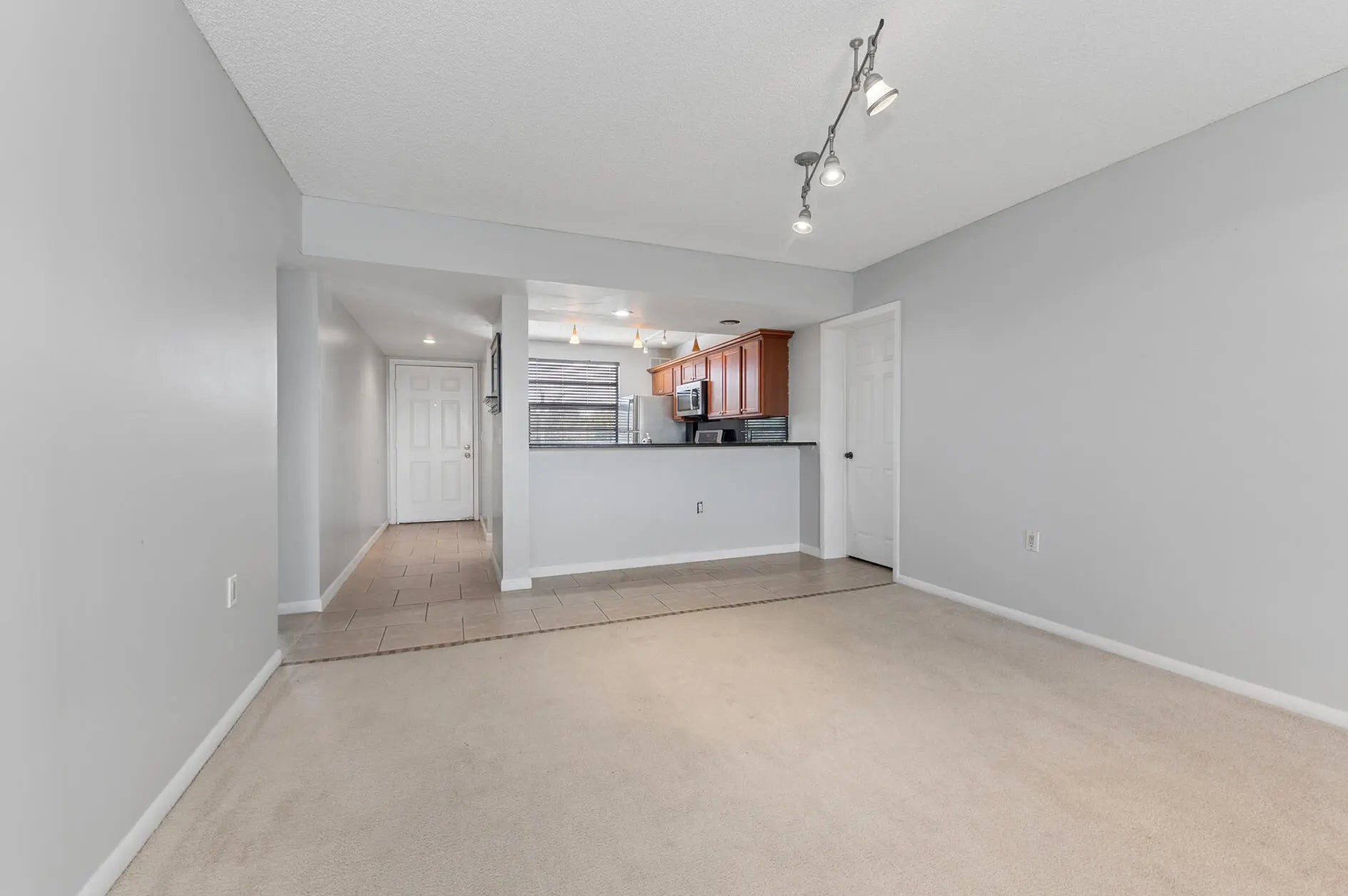Beautiful 2BR/2BA penthouse in Whitehall with serene courtyard and clubhouse views. This spacious unit features a versatile den/office that can be used as a bonus room or workspace. Upgrades include new kitchen appliances, new carpet throughout, and impact windows. The unit offers generously sized bedrooms and plenty of living space. Community amenities include four heated pools, a clubhouse, and a fitness center. Conveniently located close to downtown shopping, dining, and restaurants.