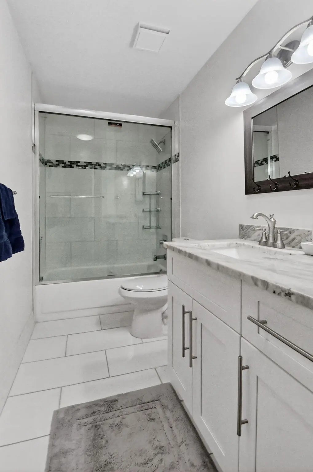 Welcome to this beautifully updated and remodeled villa adjacent to an oversized lot. Updated features include tile and laminate flooring throughout. Oversized kitchen island with quartz countertops, shaker cabinets, and stainless steel appliances. Both Bathrooms have been updated including a master walk in shower. This home has an oversized living area adjacent to the kitchen and dining area giving you an extra living area for work, entertaining or extra guest quarters. Both the back and front patios are screened and the entire home has accordion shutters for hurricane protection. This home has an extra wide driveway for ample parking and located adjacent to a wide lot providing with tremendous green space. Delray Villas is close to shopping, beaches, restaurants and downtown Delray.