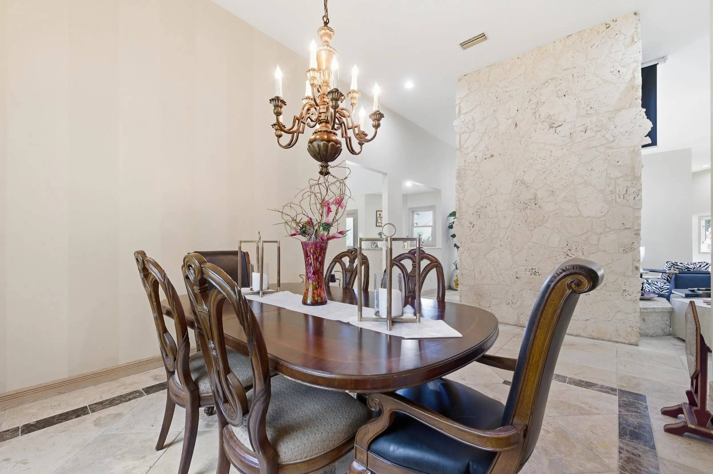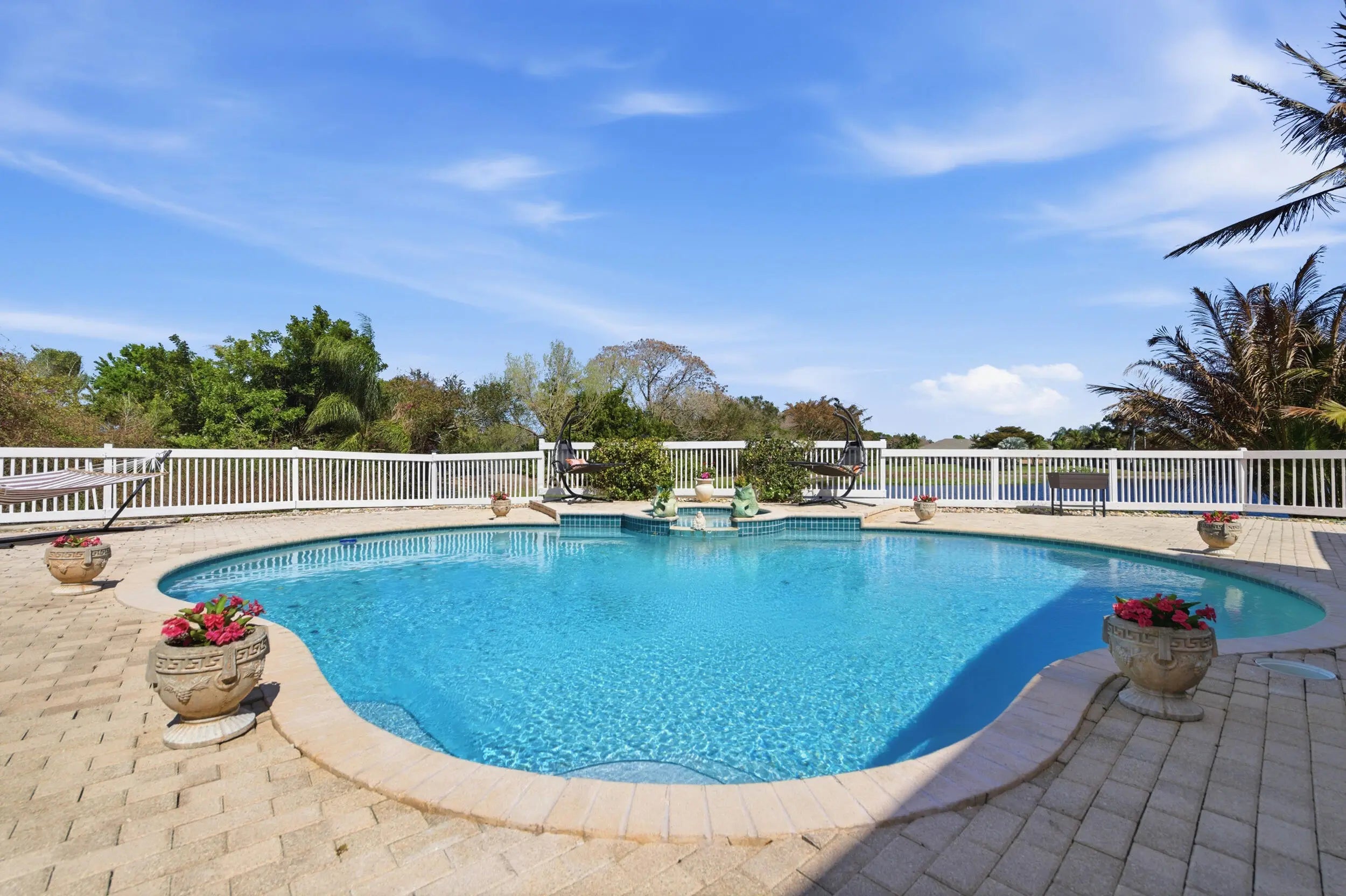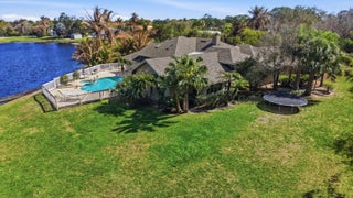 This custom-built 3-bedroom, 3-bath lakefront home offers spacious, light-filled interiors designed for both everyday living and entertainment. A double-door entry opens to vaulted ceilings, detailed millwork, and travertine and stone flooring throughout. The main living area is anchored by a striking wood-burning fireplace and framed by expansive lake views. A formal dining room, generous family room, wet bar, and projector screen provide flexible gathering spaces. The oversized kitchen is designed to bring people together, featuring granite countertops, wood cabinetry, stainless steel appliances, and a gas cooktop set into a large island with bar seating. A breakfast nook overlooks the water, adding a relaxed space for casual meals. The primary suite is positioned to take full advantage of the setting, with sliding doors that open directly to the pool and patio. The spacious bath includes dual sinks, a soaking tub, an oversized walk-in shower, and a large walk-in closet. Two additional bedrooms and baths offer comfort and privacy for family or guests. A new roof was completed in 2024. Set on 1.25 acres behind the gates of Lakeridge, an intimate community of just 10 homes, the property offers rare privacy and open lake views enhanced by mature, lush landscaping. The covered terrace, pool, and spa overlook the expansive backyard and water, creating a quiet outdoor retreat. Located near the St. Lucie River and just minutes from downtown Stuart, this home combines a peaceful setting with convenient access to shopping, dining, and cultural attractions, all within a good rated school district.
