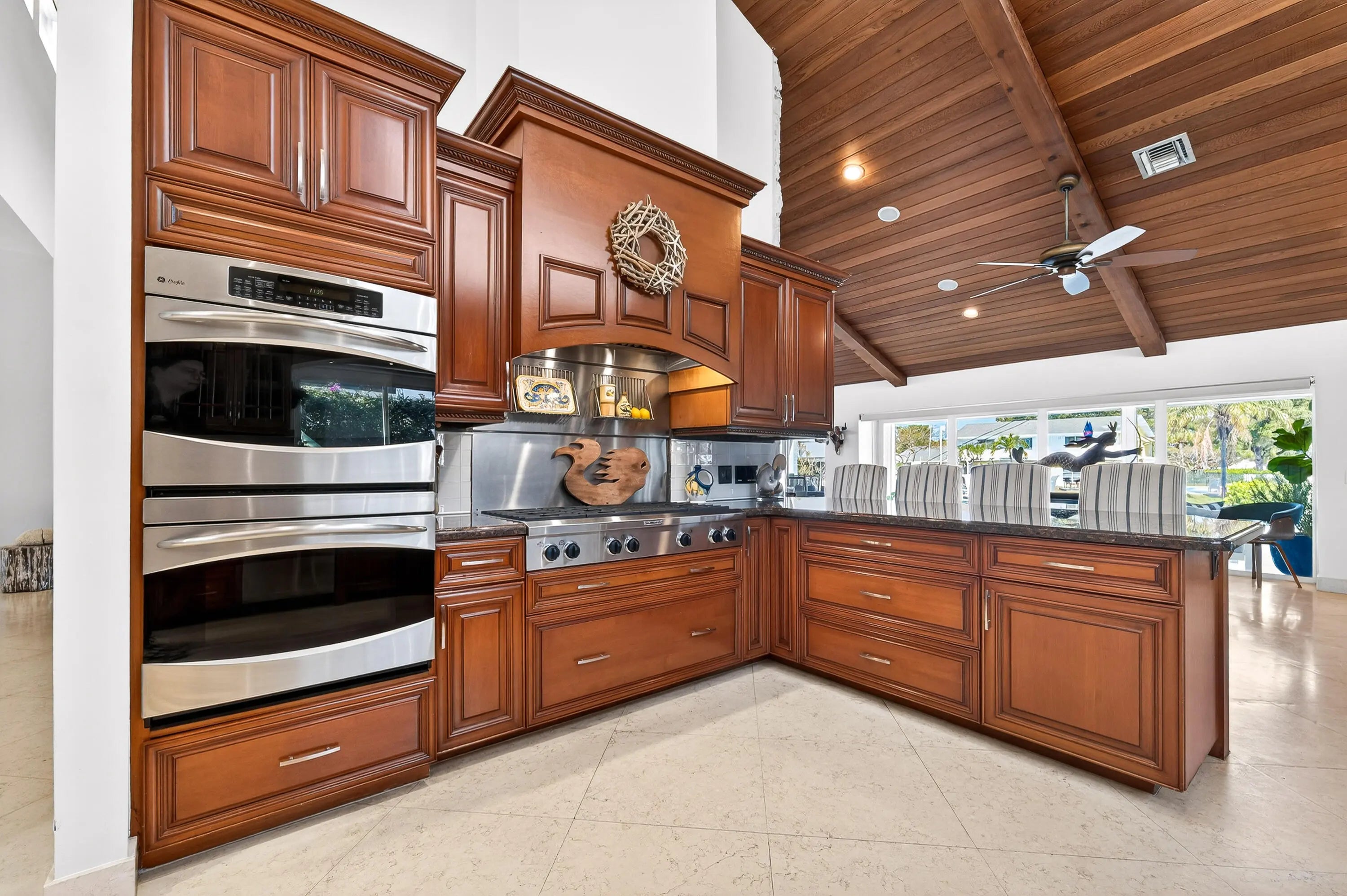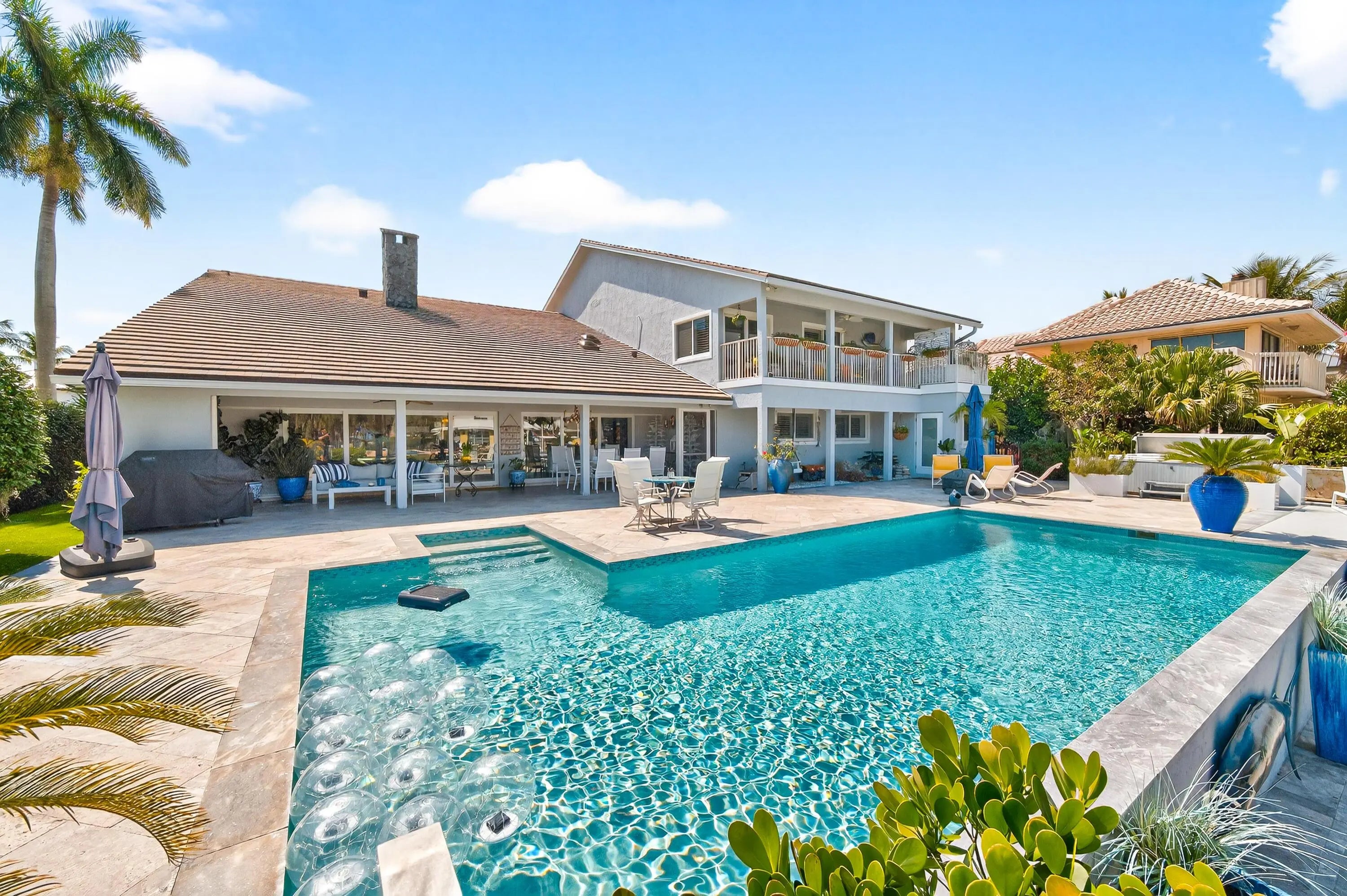 Welcome, boating enthusiasts and admirers of refined coastal living, to this exceptional waterfront residence in the heart of North Palm Beach. Offering approximately 90 feet of deep-water dockage with a lift and positioned just moments from the open bay, this property is thoughtfully designed for effortless days on the water. Wake to breathtaking, unobstructed sunrises over Singer Island, with the green expanse of Lakeside Park perfectly positioned just across from the home, preserving both views and privacy. From the street, the home offers a quiet sense of intrigue. Step inside, however, and its scale and craftsmanship unfold beautifully. Vaulted 24-foot ceilings clad in rich wood create a dramatic yet inviting great room, anchored by a... (see supplement for full remarks) Welcome, boating enthusiasts and admirers of refined coastal living, to this exceptional waterfront residence in the heart of North Palm Beach. Offering approximately 90 feet of deep-water dockage with a lift and positioned just moments from the open bay, this property is thoughtfully designed for effortless days on the water. Wake to breathtaking, unobstructed sunrises over Singer Island, with the green expanse of Lakeside Park perfectly positioned just across from the home--preserving both views and privacy. From the street, the home offers a quiet sense of intrigue. Step inside, however, and its scale and craftsmanship unfold beautifully. Vaulted 24-foot ceilings clad in rich wood create a dramatic yet inviting great room, anchored by a striking coral stone fireplace. A true conversation piece, the hearth showcases natural fossilized patterns within the coral--an organic work of art. The space's volume easily accommodates a 15-foot holiday tree, transforming the residence into a spectacular seasonal showpiece. The kitchen is both expansive and thoughtfully designed for gathering. Morning light pours in as you enjoy breakfast overlooking the water--serenity at its finest. Accordion sliding glass panels open wide, seamlessly blending indoor and outdoor living and welcoming in the coastal breeze. Culinary enthusiasts will appreciate the six-burner gas range with an integrated grill, double ovens, a dedicated coffee nook, a secondary refrigerator, and additional pantry storage. The generous footprint offers ample room to incorporate a grand center island, perfect for entertaining or casual family meals. A formal dining room provides an elegant setting for memorable evenings, while the adjacent family lounge captures sweeping views of the pool and the Intracoastal Waterway. With doors fully retracted, the space becomes an open-air retreat, ideal for hosting or simply unwinding. The thoughtfully designed floor plan offers exceptional privacy. The main level features a private guest wing, including a mother-in-law suite complete with a full bath, kitchenette, private entrance, and patio. Two additional guest bedrooms and two full baths complete the first floor, ensuring comfort for family and visitors alike. The upper level is reserved exclusively for the owner's suite, a private sanctuary. An adjoining office (or optional bedroom) features its own bath and balcony. The primary bedroom itself is grand in scale, enhanced by tray ceilings, abundant natural light, an exceptionally large closet, and a spa-inspired bath with an oversized shower. Outdoors, endless summer awaits. The pool terrace captures unobstructed sunrise views over protected public land--ensuring your vista will remain forever pristine. For the avid angler and boating enthusiast, a dedicated tackle room keeps gear organized and ready for spontaneous days on the water. With a large boat lift and immediate access to the Intracoastal, this property is purpose-built for serious boaters. There is no long idle to open water, simply step aboard and cruise toward the Bahamas at a moment's notice. Peace of mind is paramount in waterfront living. The residence is equipped with a whole-house generator, a newer roof, and the added protection of two barrier islands, Munyon Island and Singer Island, helping shield the property from storm surge while ensuring comfort and continuity year-round. The home's location offers both adventure and natural beauty. Just moments away, John D. MacArthur Beach State Park provides world-class paddleboarding and pristine beaches. A short ride north brings you to Jupiter, while renowned snorkeling awaits at Blue Heron Bridge, widely considered among the best shore dives on Florida's east coast. This home is more than a residence; it is a gateway to the South Florida lifestyle, where architecture, privacy, boating access, and natural beauty converge in one extraordinary waterfront offering. All information provided is believed to be reliable; however, it is not guaranteed and is subject to errors, omissions, and changes without notice. Buyers should independently verify all information. All measurements are approximate estimates.