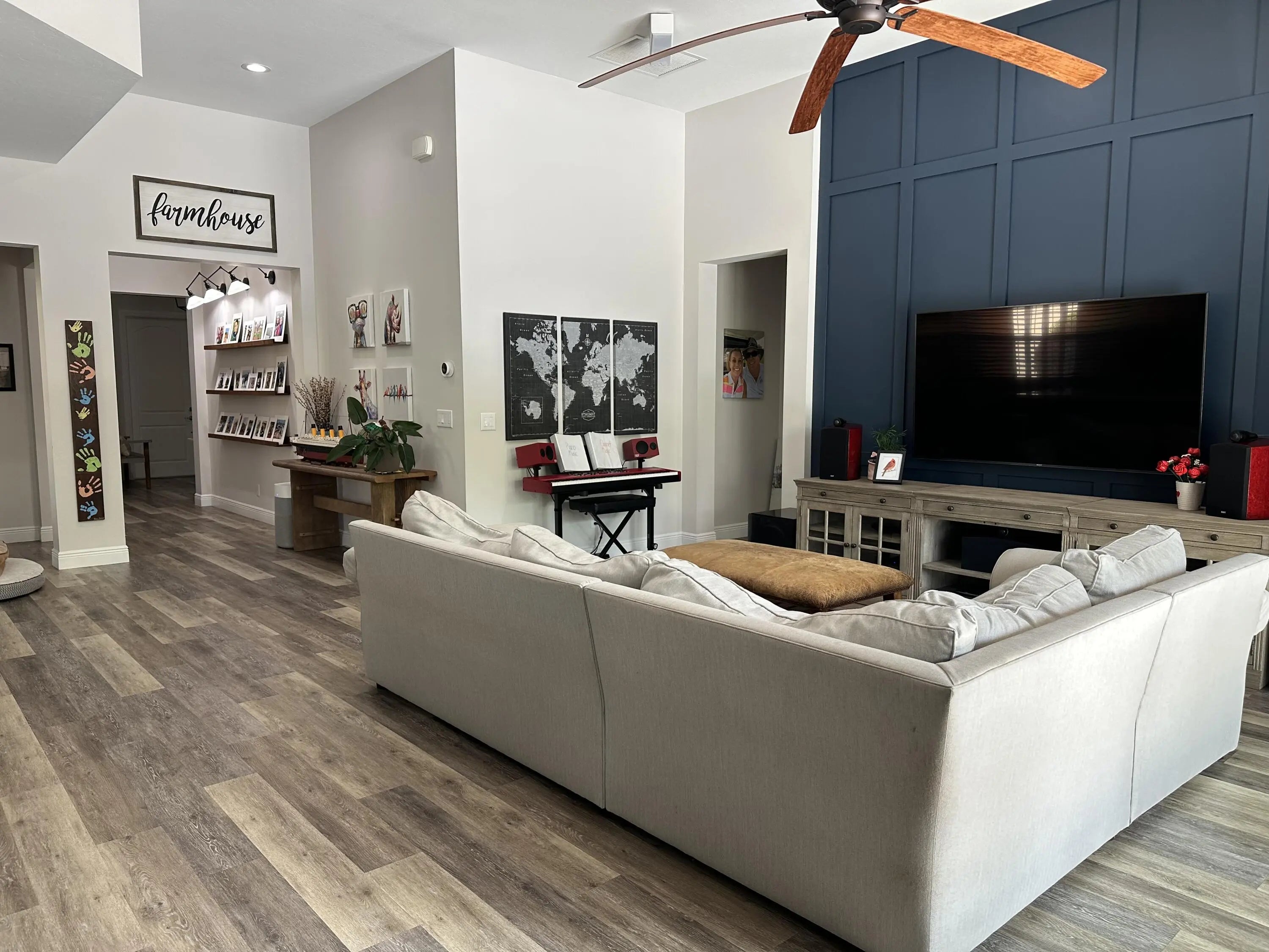 Stunning, move-in ready home in the heart of Wellington! This beautifully upgraded 3-bedroom, 2.5-bath residence offers exceptional versatility with a dedicated den and private office, perfect for today's flexible living. Situated on one of the largest lots in the community, the property is completely fenced and showcases lush, tropical landscaping for ultimate privacy. Enjoy Florida living at its finest with a saltwater pool and elegant travertine deck, ideal for relaxing or entertaining. Inside, luxury vinyl flooring flows throughout, complemented by plantation shutters in every room, creating a bright, refined, and timeless aesthetic. The remodeled dream chef's kitchen features Wolf appliances, gas range, coffee bar, Cambria quartz countertops and designer finishes. Additional highlights include impact windows throughout, whole-home water filtration system, surround sound, security cameras, EV charger, and widened driveway. Located just minutes from the Wellington Equestrian Center, top-rated dining, shopping, and A-rated schools, this exceptional home offers luxury, comfort, and unbeatable convenience. This is Wellington living at its finest -- a must-see!