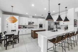 Beautifully upgraded and thoughtfully designed, this 5-bedroom Manchester floor plan is ideally situated on an oversized corner lot offering ample privacy and extra yard space. The sun-soaked, south-facing backyard is a private oasis, complete with lush turf, a marble patio and stunning custom heated salt water pool. This home offers many highlights including: full house generator, designer light fixtures, water filtration system, 2 new A/Cs, new washer and dryer, custom wet bar and a stunning upgraded kitchen. Luxury living is redefined at Seven Bridges where residents have access to world class amenities including a restaurant, 3 pools, elite tennis program with 12 courts, 4 pickleball courts and fitness classes.
