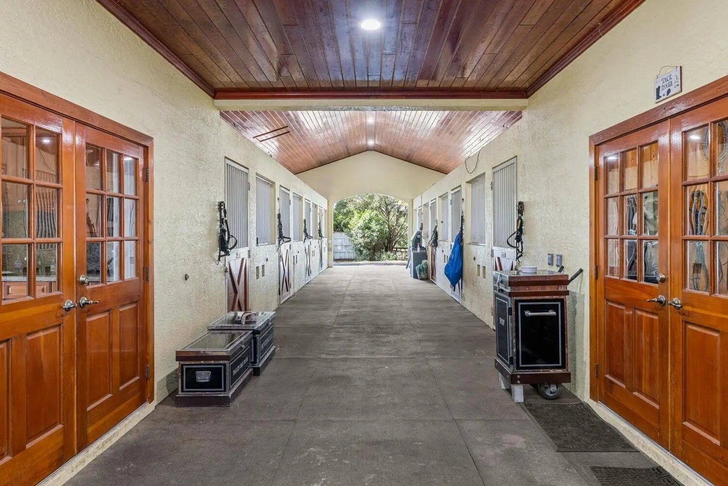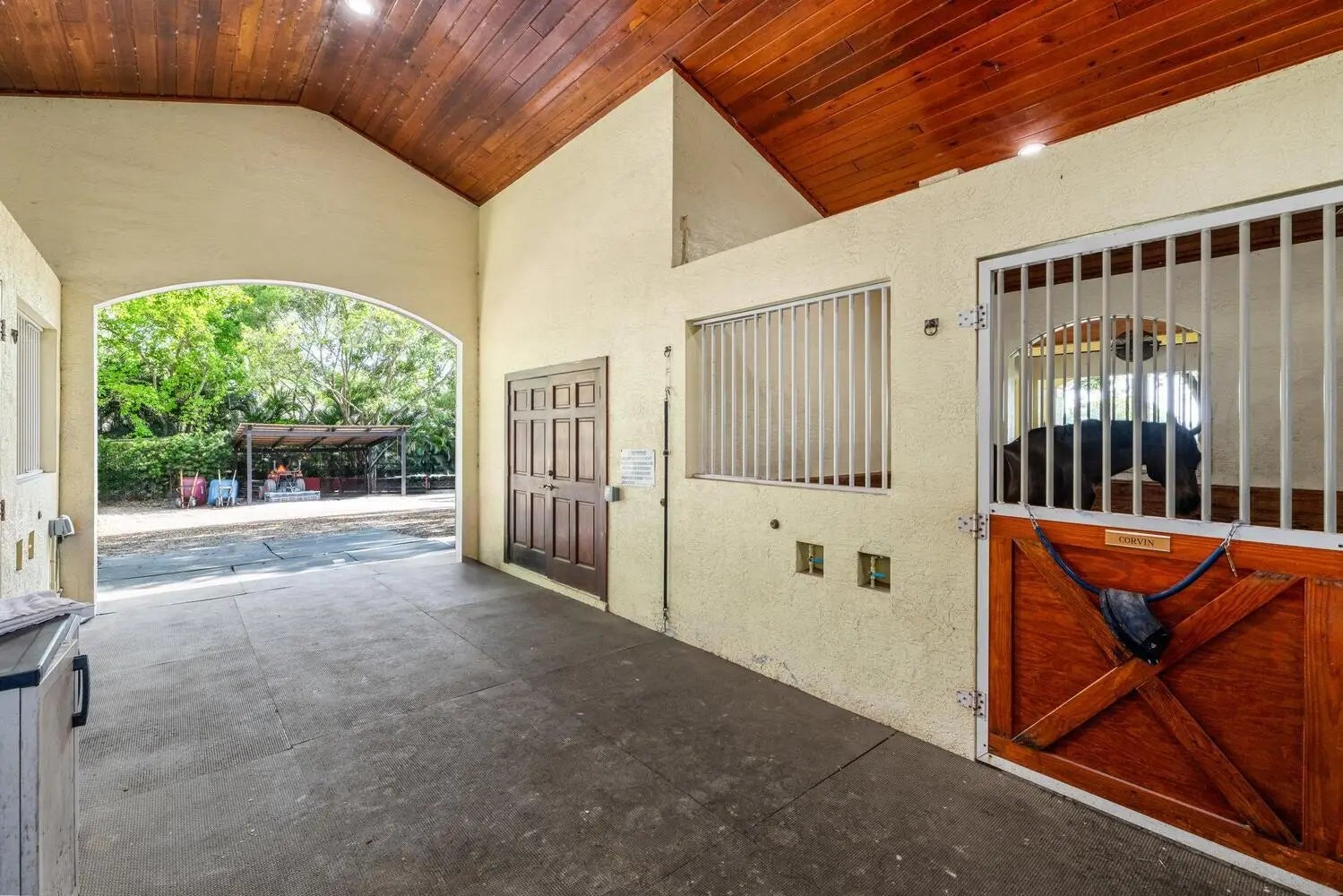 2027 Seasonal Price Breakdown: $11,500 per stall for season. Experience the ultimate equestrian property for both seasonal or annual rent. This exceptional farm offers a premier 22 stall barn, 4 horse walker and expansive 220x120 arena, designed for equestrians looking to train minutes from the Wellington International Showgrounds. The property also features a furnished riding lounge area for relaxation or entertaining as well as a private tack room/office and barn bathroom. The barn is fully equipped with fly spray systems and there is ample parking for cars behind the barn. Also available for rent (separately) is a 2 bedroom apartment above the barn as well as a one bedroom studio apartment on the lower level.