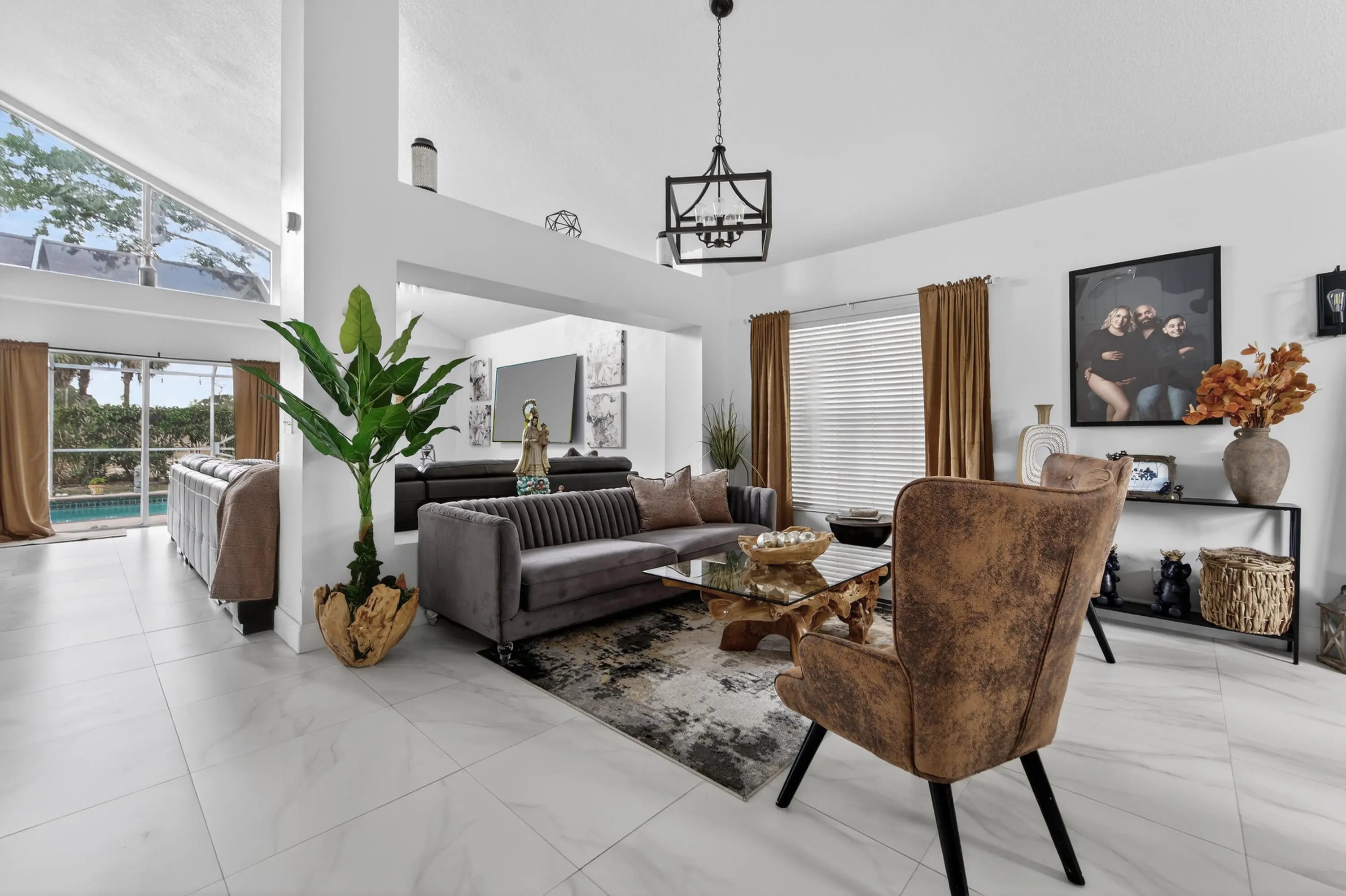 Renovated Multigenerational Pool Home with No Rear Neighbors and Stunning Florida Sunset Views. This 4-Bed, 3-Bath, 2-Car Garage Home Features a Contemporary Kitchen with a Massive Island Perfect for Entertaining and Everyday Living. First-Floor Bedroom and Full Bathroom Ideal for Home Office, Guests, or Multigenerational Living. Upstairs are Three Additional Bedrooms and Two Bathrooms Including the Primary Suite. Step Outside to Your Screen-Enclosed Pool Retreat and Enjoy Beautiful Florida Sunsets. River Bridge Residents Enjoy Resort-Style Amenities Including Clubhouse, Pools, Tennis Courts, Fitness Center, and Scenic Lakes Throughout the Community. Conveniently Located Near Wellington Shopping, Parks, Dining and Equestrian Venues. Enjoy the Lifestyle without Wellington Prices. Low HOA.