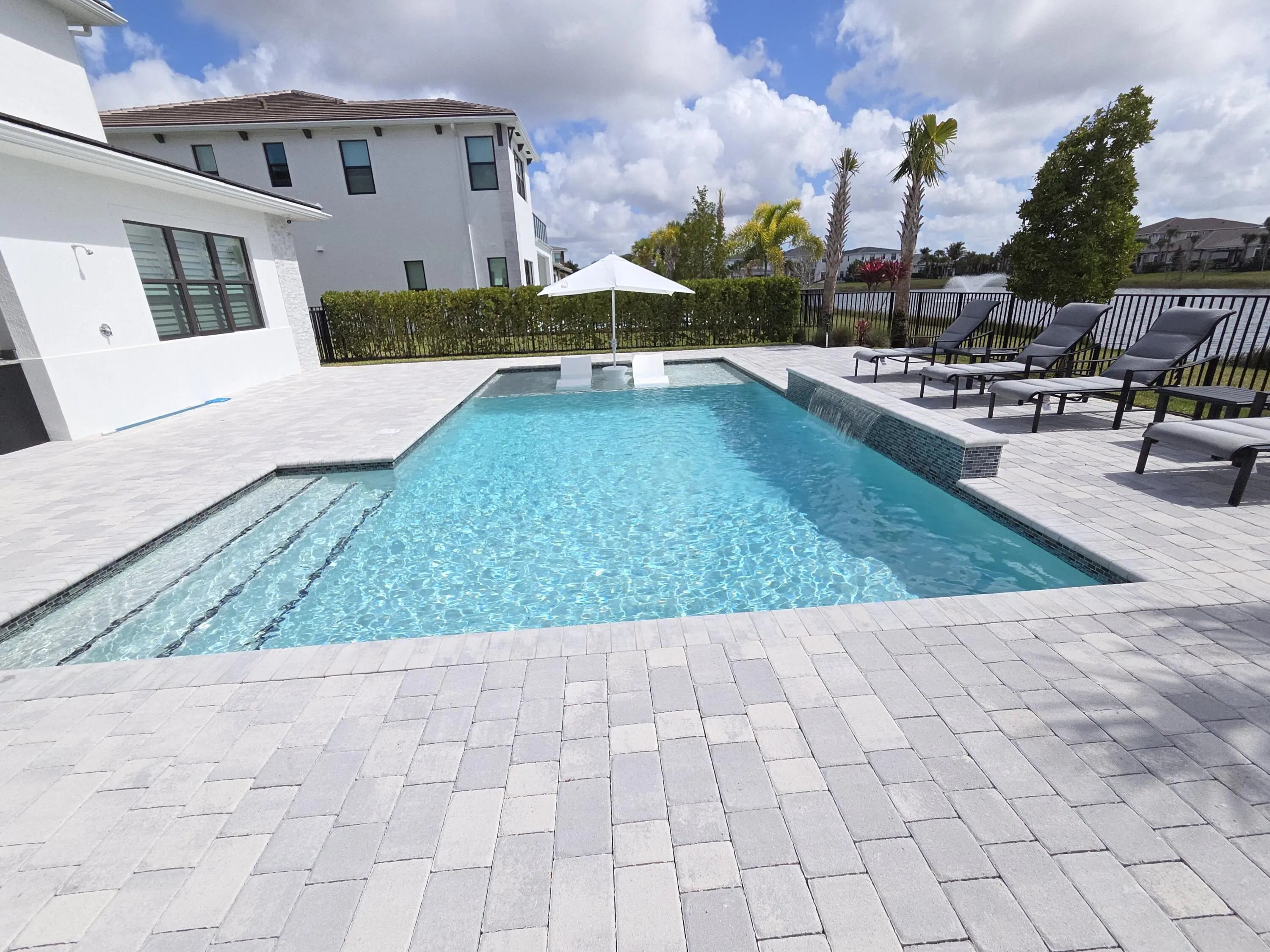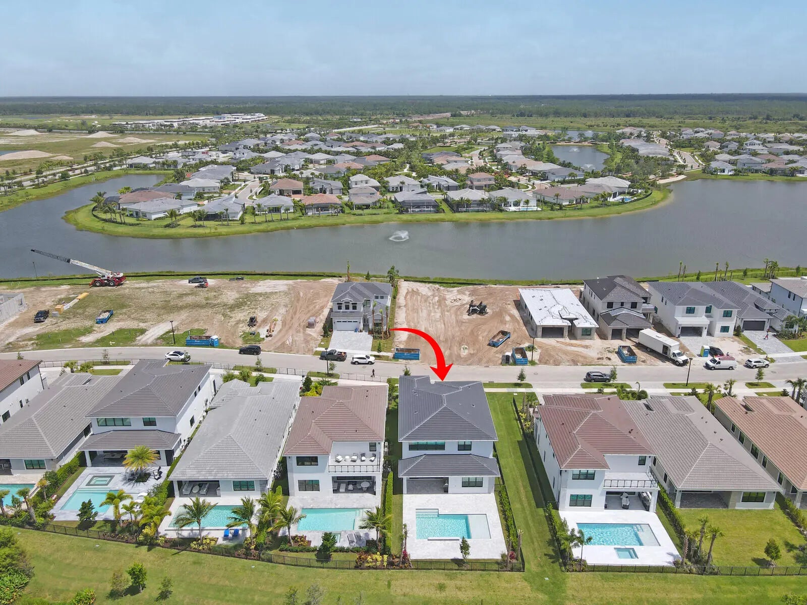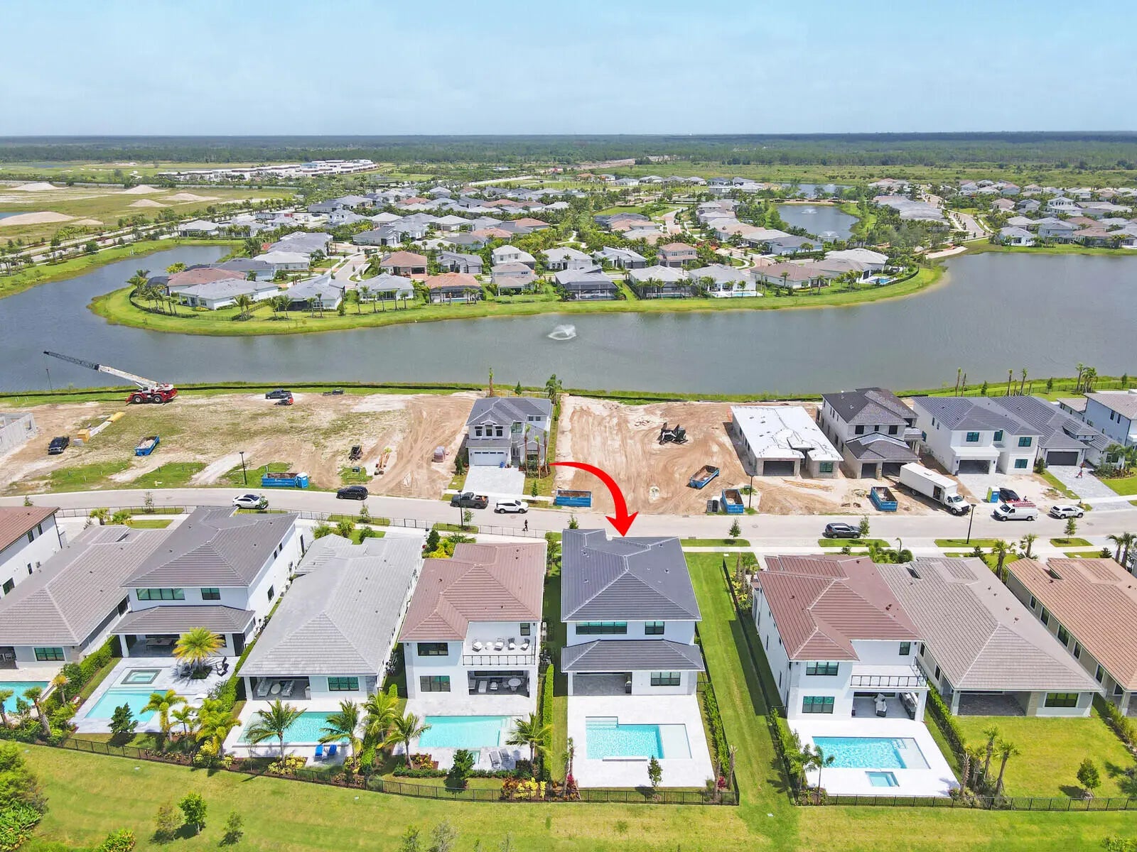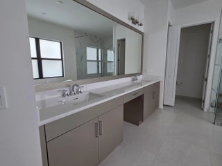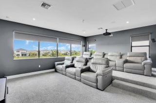 NEW CONSTRUCTION - COMPLETED APRIL 2025! Why wait to build when you can own this brand-new Manhattan model in the exclusive boutique community of Solana Bay at Avenir? Situated on a premium water lot, this sleek & modern residence offers the ultimate in Florida luxury living. Designed w/ attention to detail, this home features over $350k in upgrades, including impact glass throughout for peace of mind & energy efficiency & a custom heated saltwater pool w/ a sun shelf & tranquil waterfall - perfect for relaxing or entertaining. Light-filled & thoughtfully laid out, the open-concept design blends contemporary elegance with everyday comfort. Enjoy serene water views & a lifestyle that's both stylish & low-maintenance. Upgrades include: Plantation Shutters - 24'' porcelain tile w/ satin . finish throughout main floor & Eng. wood on the 2nd floor & staircase - staircase railing w/ oil rubbed bronze balusters open to foyer - custom oil rubbed bronze teardrop pendants at kitchen island with matching foyer chandelier & ceiling fans throughout Upgraded kitchen package w/ soft close doors & drawers, gas cooktop, hood, under counter lighting - Whirlpool stainless steel kitchen appliance package Cristallo Quartzite countertop with full backsplash and large island with 3" mitered edge Upgraded laundry room package with upper cabinets, Whirlpool front load washer & dryer, large laundry sink Upgraded tile, vanities and countertops in all bathrooms Junior suite upstairs with upgraded porcelain, vanities & vanity tops Theater room - black-out shades high end receiver & sub-woofer, projector and 120" screen Outdoor speakers Heated Salt Water Pool with sun-shelf and waterfall Outdoor shower Large patio with extended paver decking Outdoor kitchen with grill, granite countertop, sink, refrigerator and storage cabinets Surround sound speaker interior and exterior Epoxy Flooring in Garage All custom furniture negotiable for purchase! Enjoy serene water views & a lifestyle that's both stylish & low-maintenance in one of Avenir's most sought-after new communities. Don't miss your chance to skip the wait - this turnkey home is ready now!