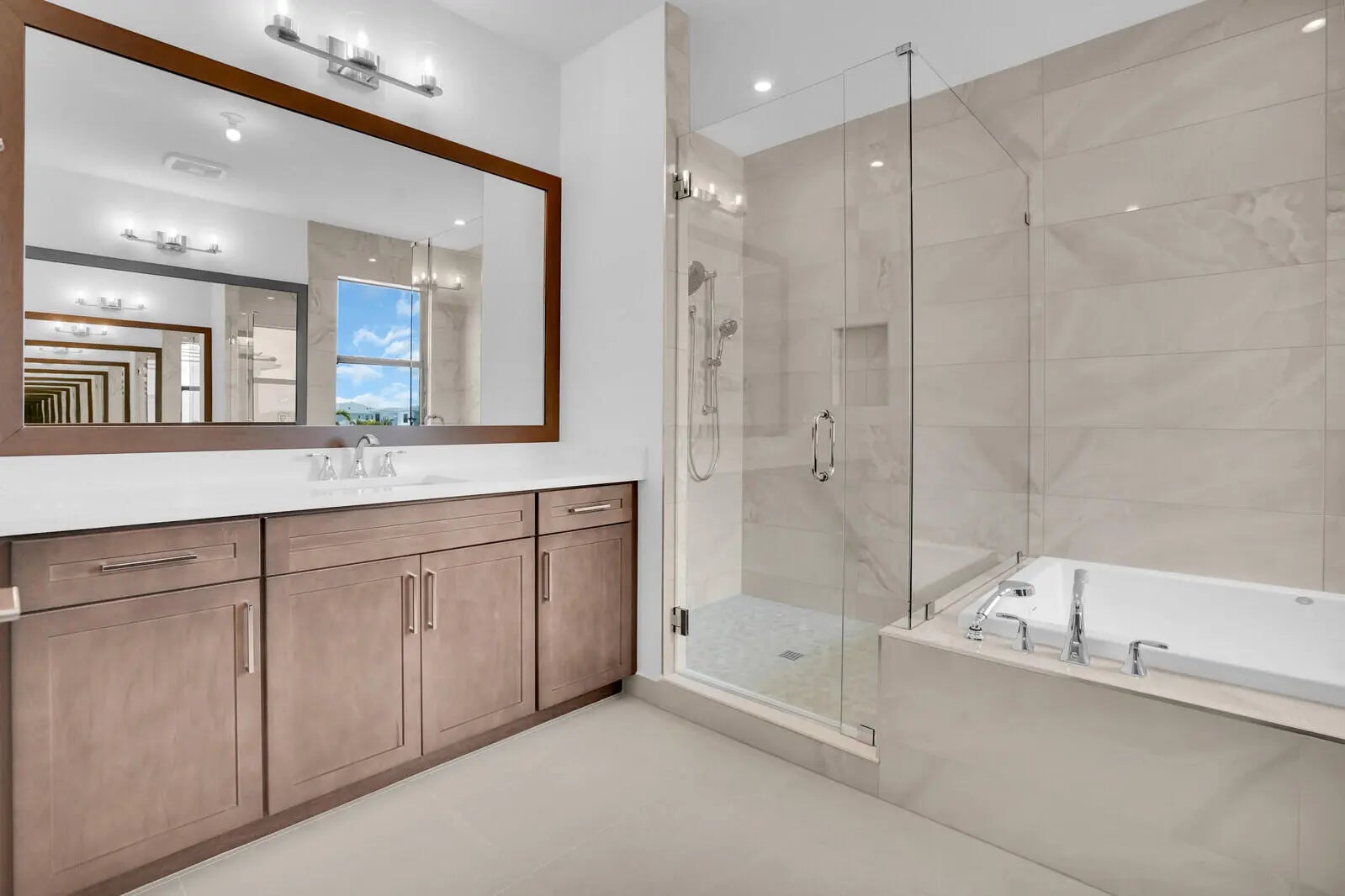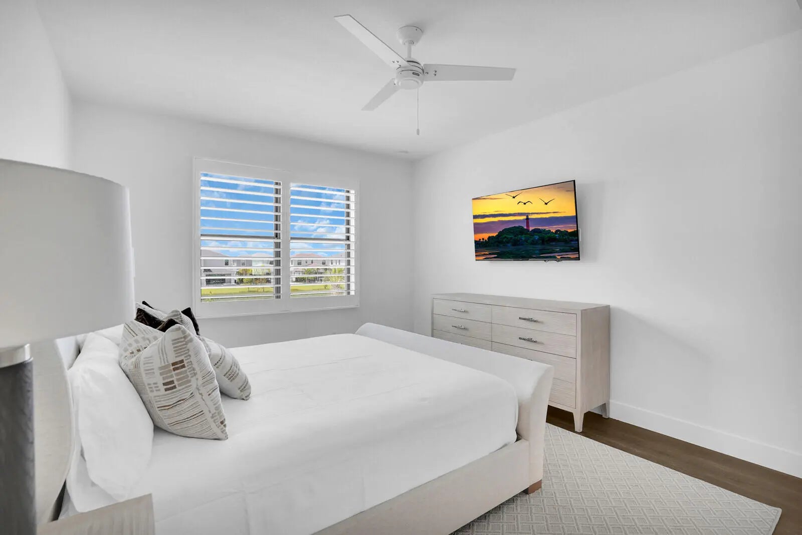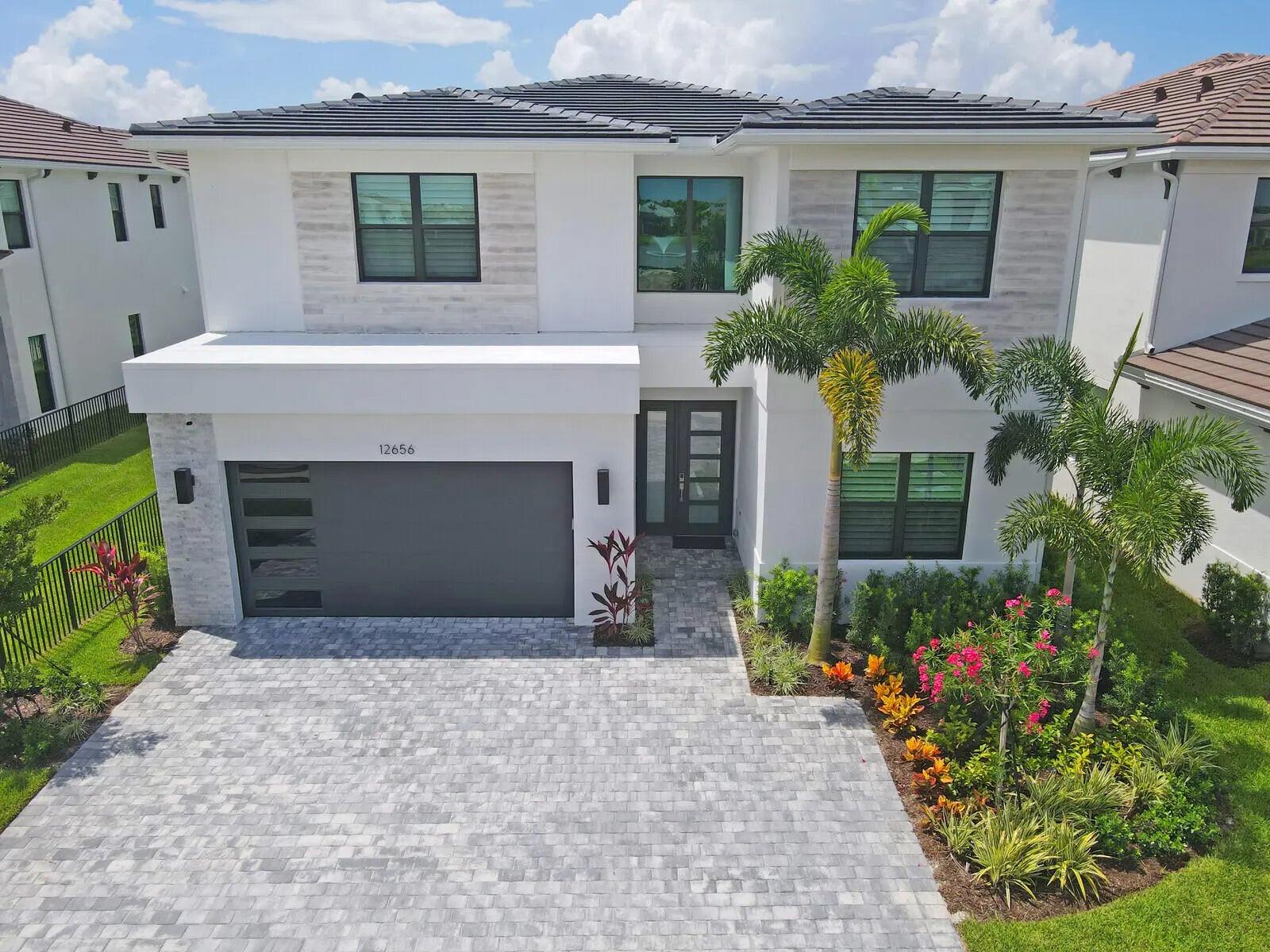 NEW CONSTRUCTION - COMPLETED APRIL 2025! Why wait to build when you can own this brand-new Manhattan model in the exclusive boutique community of Solana Bay at Avenir? Situated on a premium water lot, this sleek & modern residence offers the ultimate in Florida luxury living. Designed w/ attention to detail, this home features over $350k in upgrades, including impact glass throughout for peace of mind & energy efficiency & a custom heated saltwater pool w/ a sun shelf & tranquil waterfall - perfect for relaxing or entertaining. Light-filled & thoughtfully laid out, the open-concept design blends contemporary elegance with everyday comfort. Enjoy serene water views & a lifestyle that's both stylish & low-maintenance. Upgrades include: Plantation Shutters - 24'' porcelain tile w/ satin . finish throughout main floor & Eng. wood on the 2nd floor & staircase - staircase railing w/ oil rubbed bronze balusters open to foyer - custom oil rubbed bronze teardrop pendants at kitchen island with matching foyer chandelier & ceiling fans throughout Upgraded kitchen package w/ soft close doors & drawers, gas cooktop, hood, under counter lighting - Whirlpool stainless steel kitchen appliance package Cristallo Quartzite countertop with full backsplash and large island with 3" mitered edge Upgraded laundry room package with upper cabinets, Whirlpool front load washer & dryer, large laundry sink Upgraded tile, vanities and countertops in all bathrooms Junior suite upstairs with upgraded porcelain, vanities & vanity tops Theater room - black-out shades high end receiver & sub-woofer, projector and 120" screen Outdoor speakers Heated Salt Water Pool with sun-shelf and waterfall Outdoor shower Large patio with extended paver decking Outdoor kitchen with grill, granite countertop, sink, refrigerator and storage cabinets Surround sound speaker interior and exterior Epoxy Flooring in Garage All custom furniture negotiable for purchase! Enjoy serene water views & a lifestyle that's both stylish & low-maintenance in one of Avenir's most sought-after new communities. Don't miss your chance to skip the wait - this turnkey home is ready now!