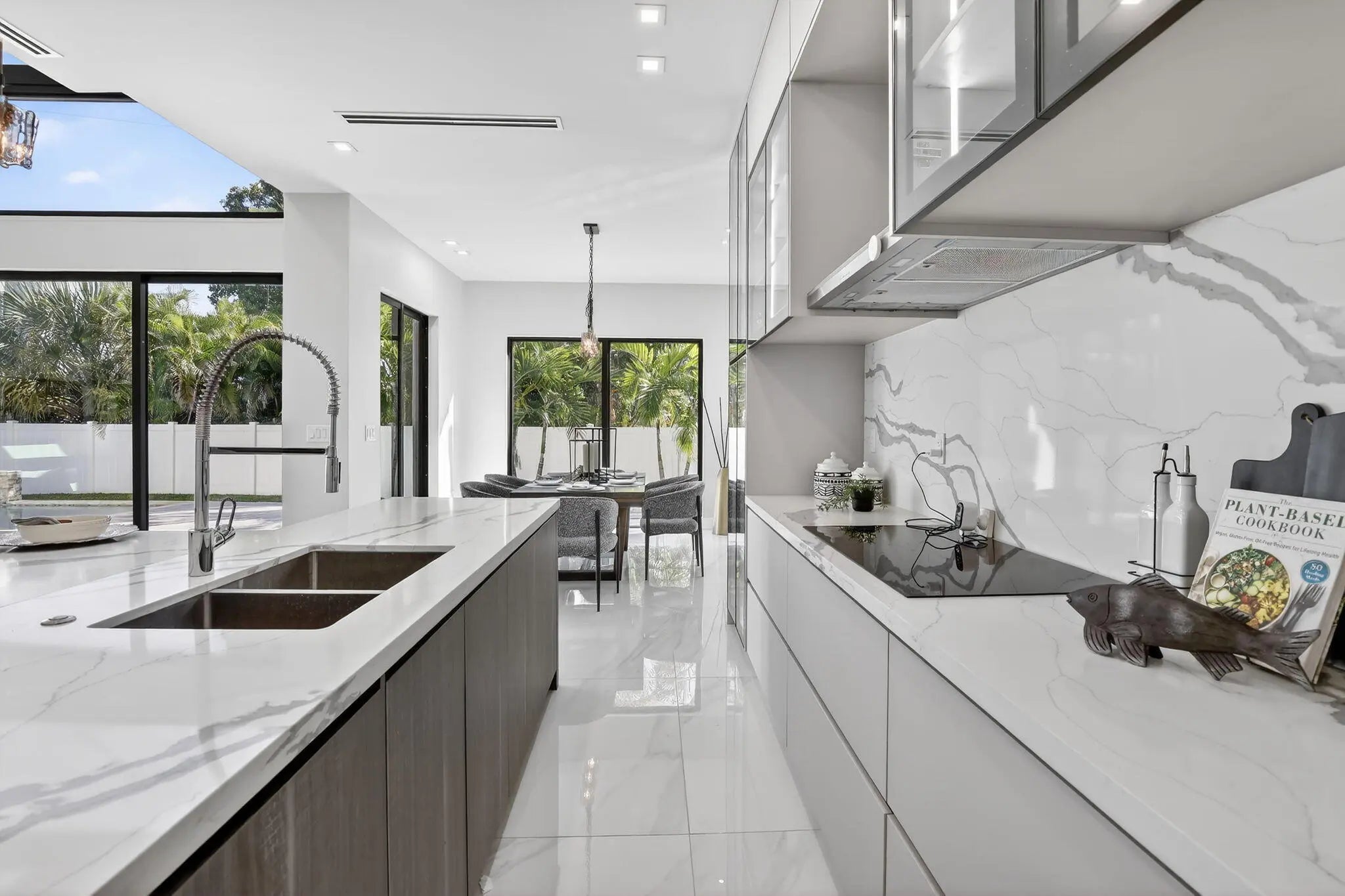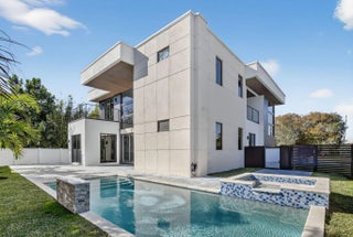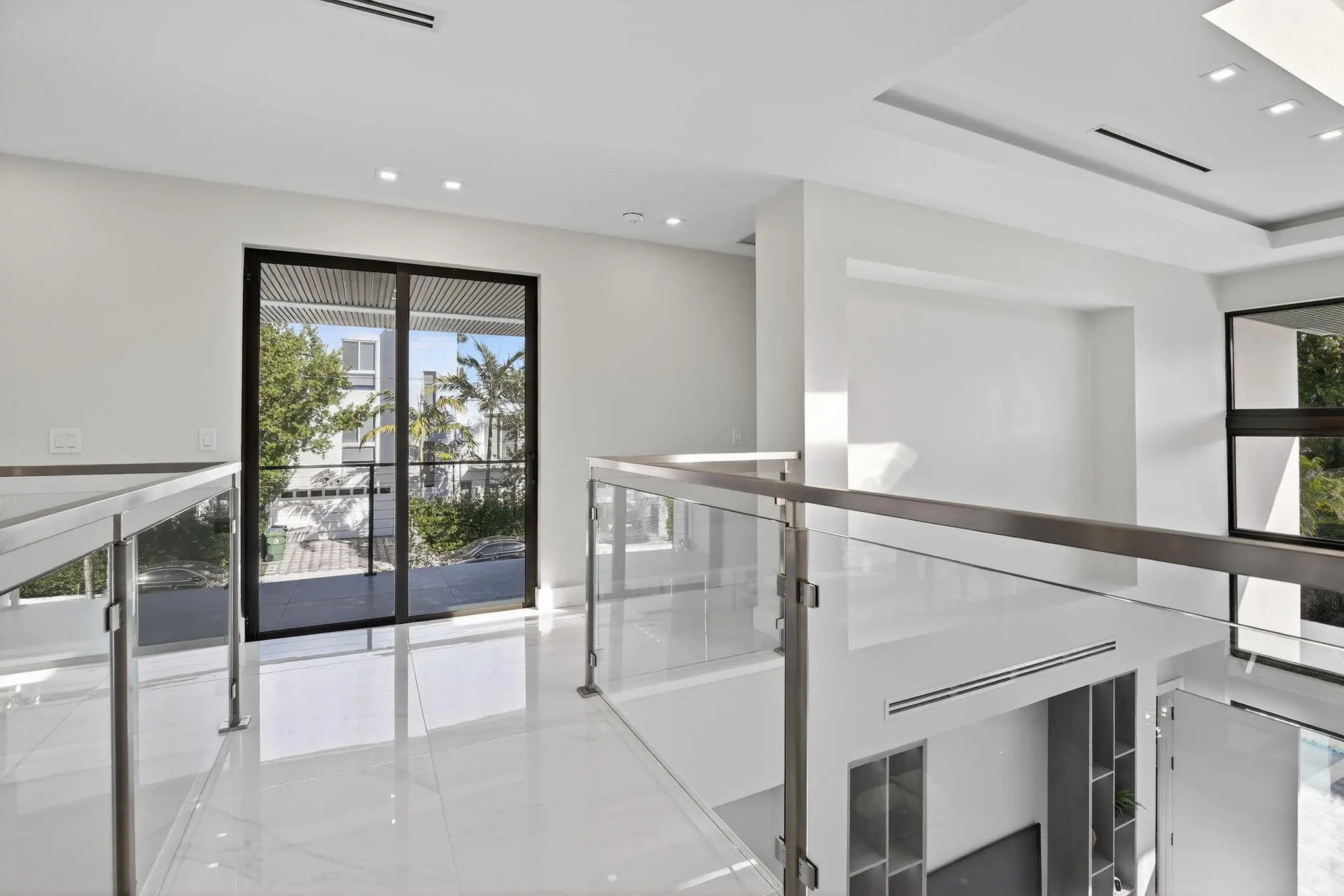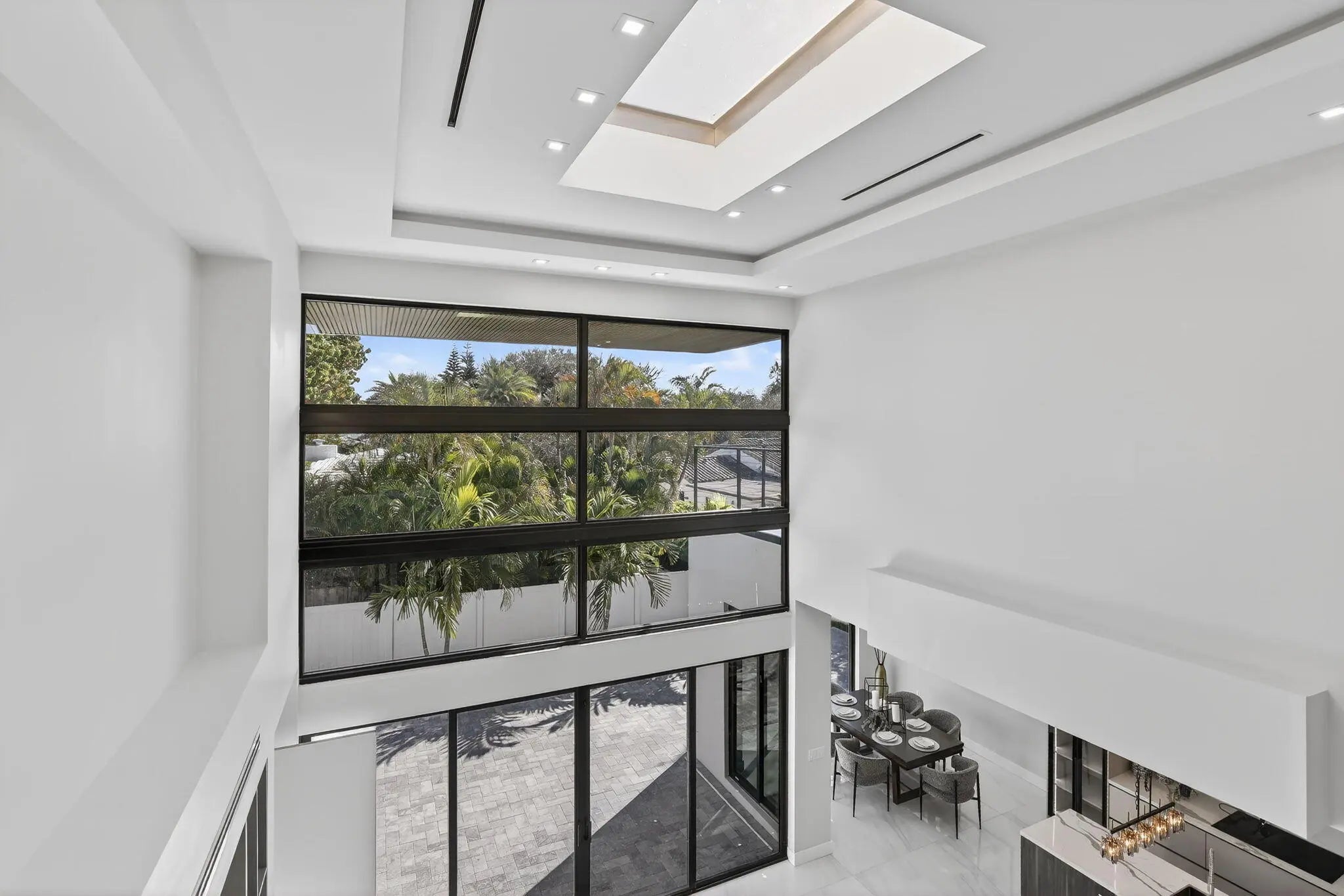 Contemporary Perfection in Victoria Park: A Glass & Light Sanctuary- Experience the pinnacle of modern luxury in Fort Lauderdale's most coveted neighborhood, Victoria Park. This stunning new contemporary construction sits on a rare, expansive 7,702 sq. ft. corner lot, offering a level of privacy and space rarely found in the city. Designed with a sophisticated European aesthetic, the home features striking dark finishes that contrast beautifully with an abundance of natural light. The interior drama is anchored by a breathtaking glass catwalk and dual skylights that flood the core of the home with sunshine. Walls of oversized triple-pane hurricane impact windows blur the lines between indoors and out, creating a surreal, airy atmosphere. Function meets high design on the main level, which hosts a modern, sleek kitchen with a butler's pantry and two versatile bedrooms. One is currently configured as an executive office, offering a private retreat with its own Zen garden and direct access to the pool area. Outside, the grounds are an entertainer's dream, featuring a sparkling swimming pool with a cascading waterfall. The residence is completed by a voluminous two-car garage, specifically engineered to accommodate two full-sized SUVs. Walk up the bright, airy staircase past the signature glass catwalk to find the upstairs quarters. The Primary Suite is a showstopper, featuring a beautiful private balcony and a dramatic, long walk-in closet leading to a state-of-the-art modern bathroom. Two generously oversized bedrooms provide ample space for family or guests.