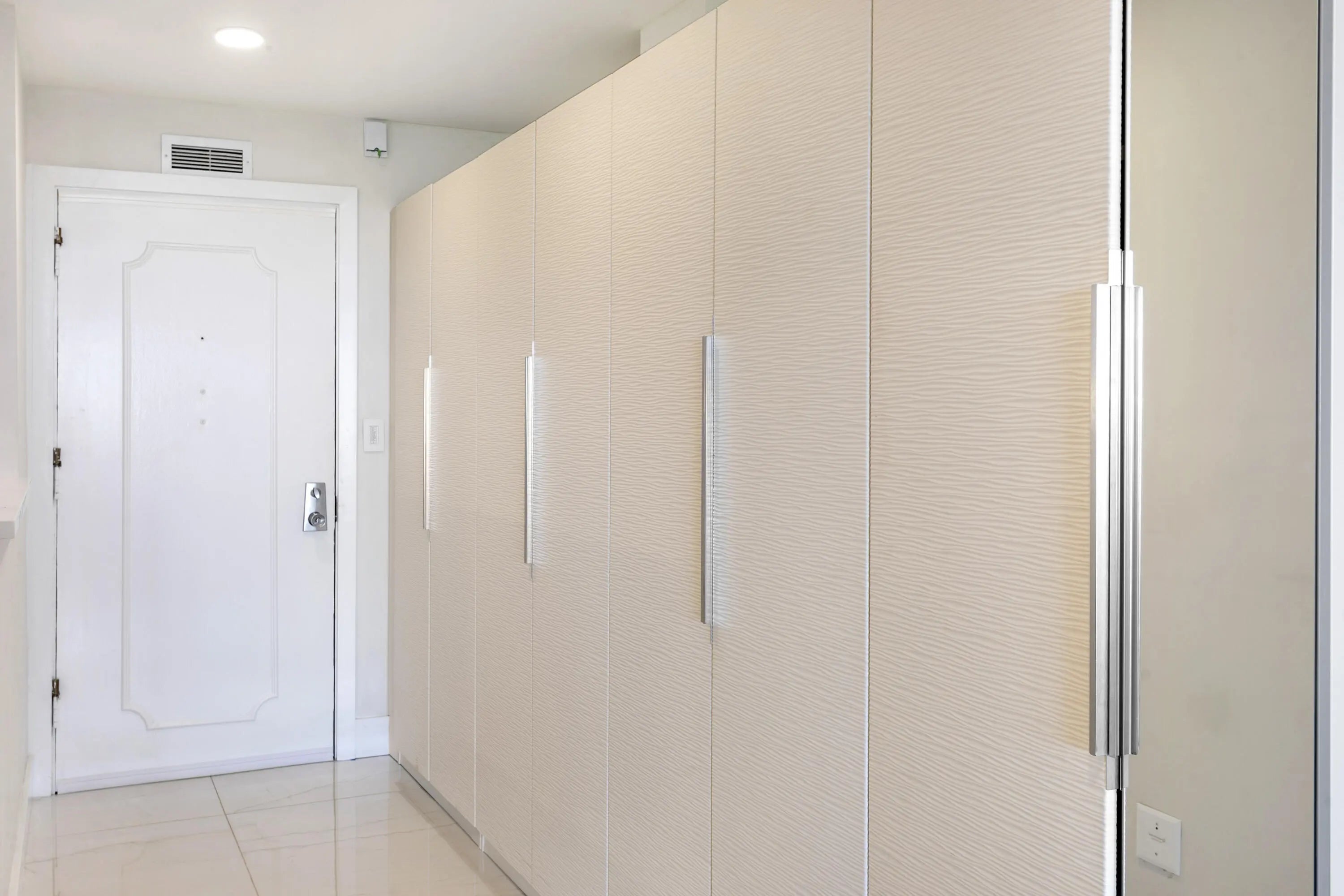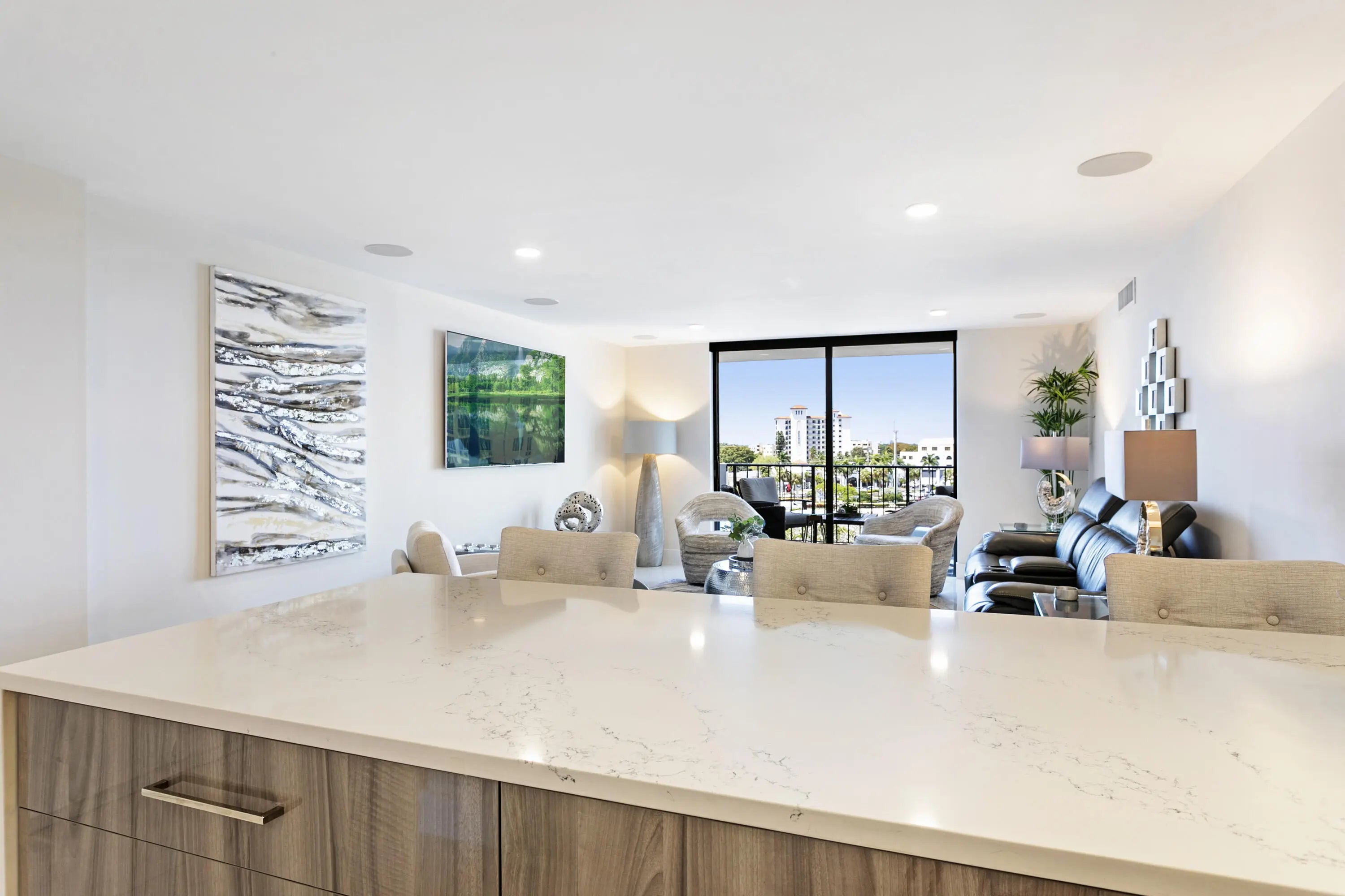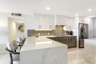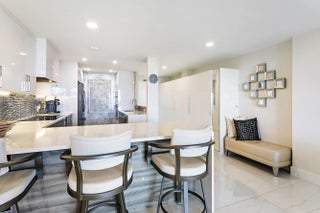 Introducing Residence #507 at ADMIRALTY in OLD PORT COVE . This beautifully renovated home features exceptional craftsmanship and high-end finishes throughout, including stunning 48-inch tile flooring. The expanded open kitchen showcases quartz waterfall countertops, under-mount lighting, and counter-depth appliances, plus a full-size washer and dryer. A custom wall of modern closets at the foyer provides abundant storage. Lutron automated controls manage solar shades and lighting throughout the residence. Enjoy a Sonos sound system with recessed speakers and LED lighting. Marble bathrooms offer high-end fixtures, including a soaking tub in the guest bath. The primary suite features a spacious walk-in closet. Designer furnishings may be available, making this a turnkey opportunity .