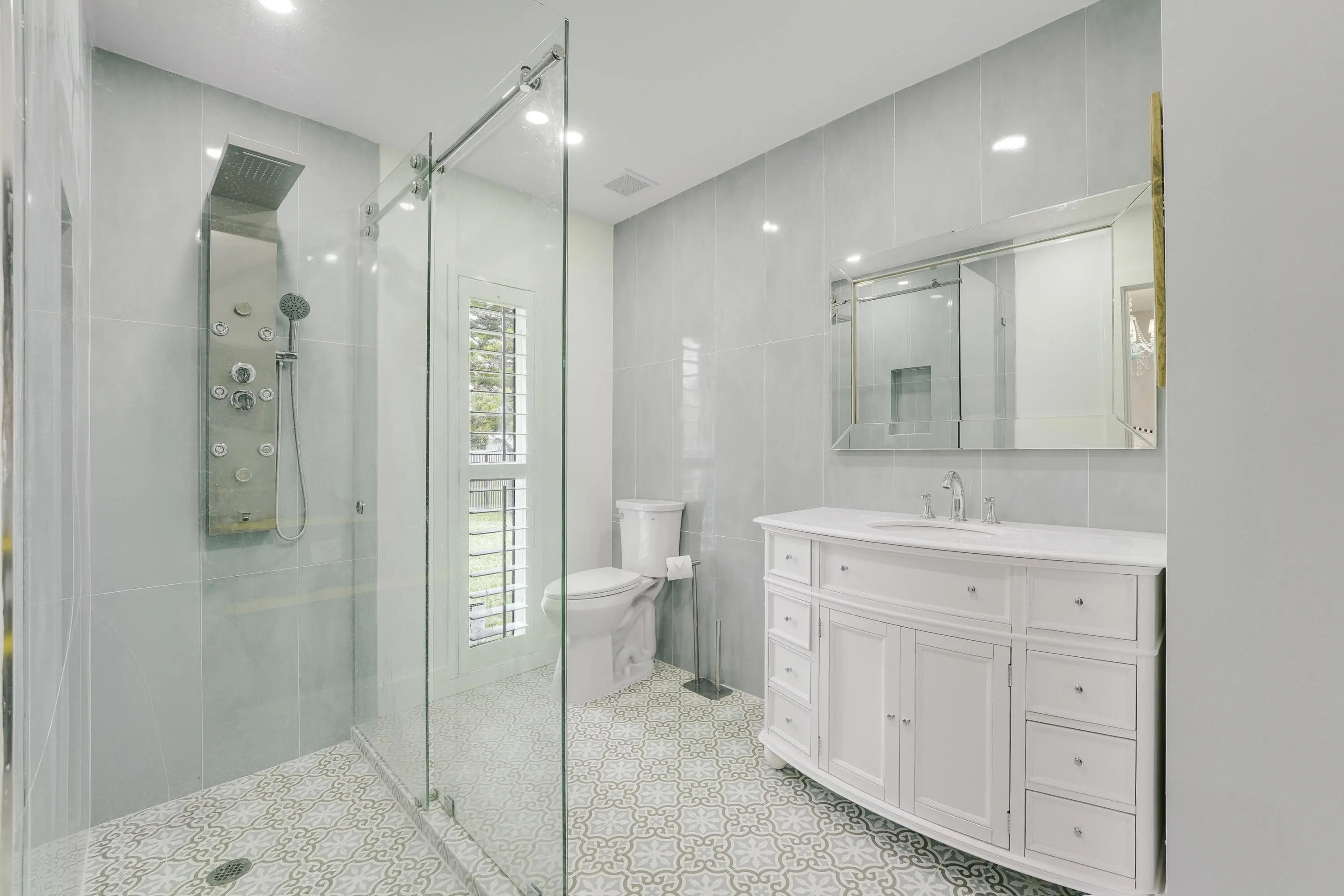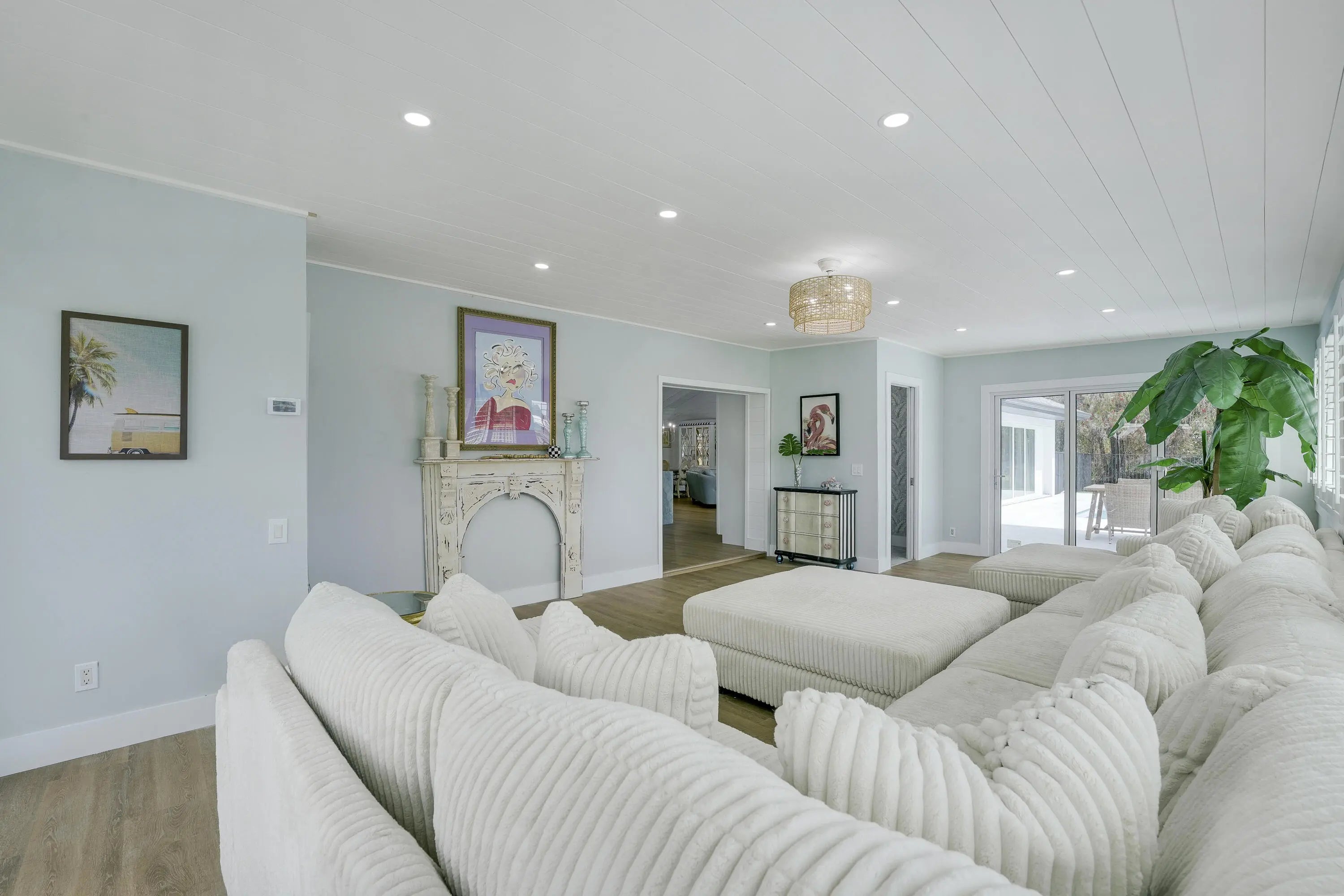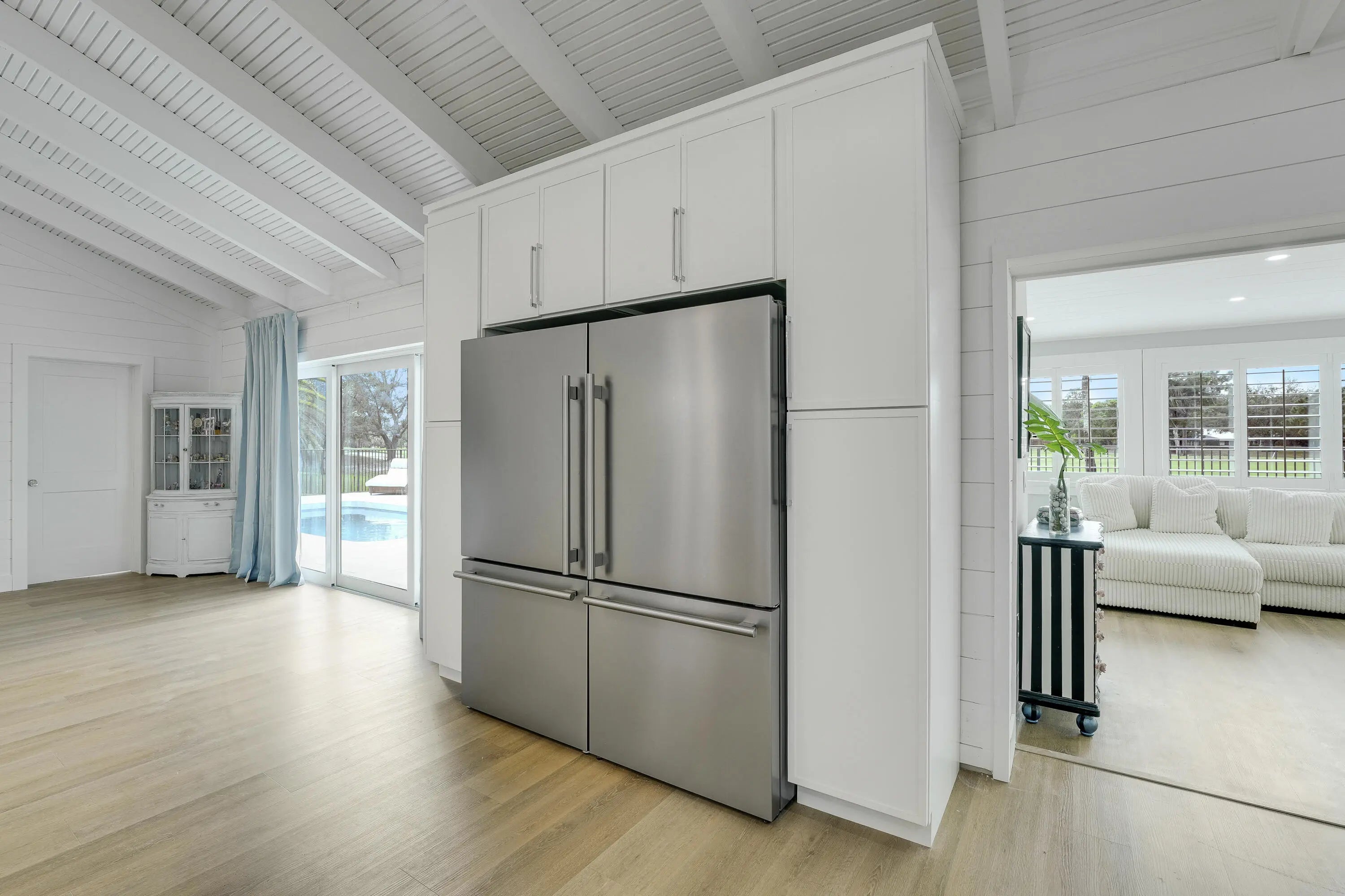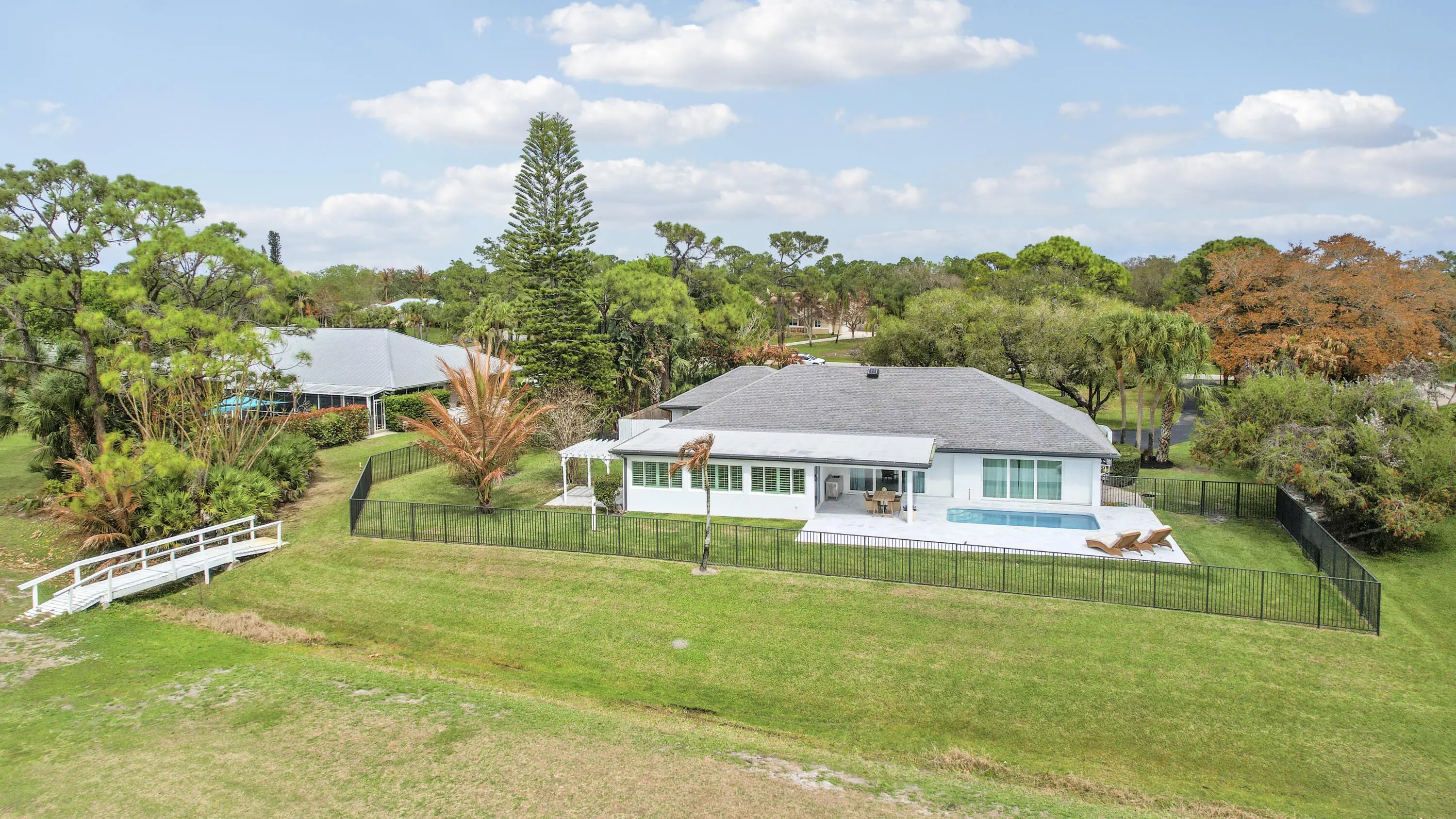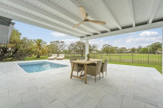 Imagine everyday seeing wide open views of water on a golf course. Relax in your completely redone mosaic swimming pool & marble deck. The house has a completely open floor plan with 13-foot ceiling in greatroom & kitchen. The dream chef's kitchen which includes a 48'' gas stove with griddle & 48'' designer hood and blue marble countertops. 2 refrigerators, 2 freezers that are surrounded by pantries. All new impact windows and doors, new air conditioners, new bathrooms, new flooring, the house was completely remodeled down to the studs! All bedrooms have their own ensuite with high end tile. The main bedroom has an office and 9' door sliders leading to the pool. The primary bathroom is a personal spa with marble tile, free standing tub, and an 8x8 rain shower with seating for 4. Located the exclusive gated community of Evergreen on over an acre lot. This home has been masterfully redesigned for functional and luxury living.