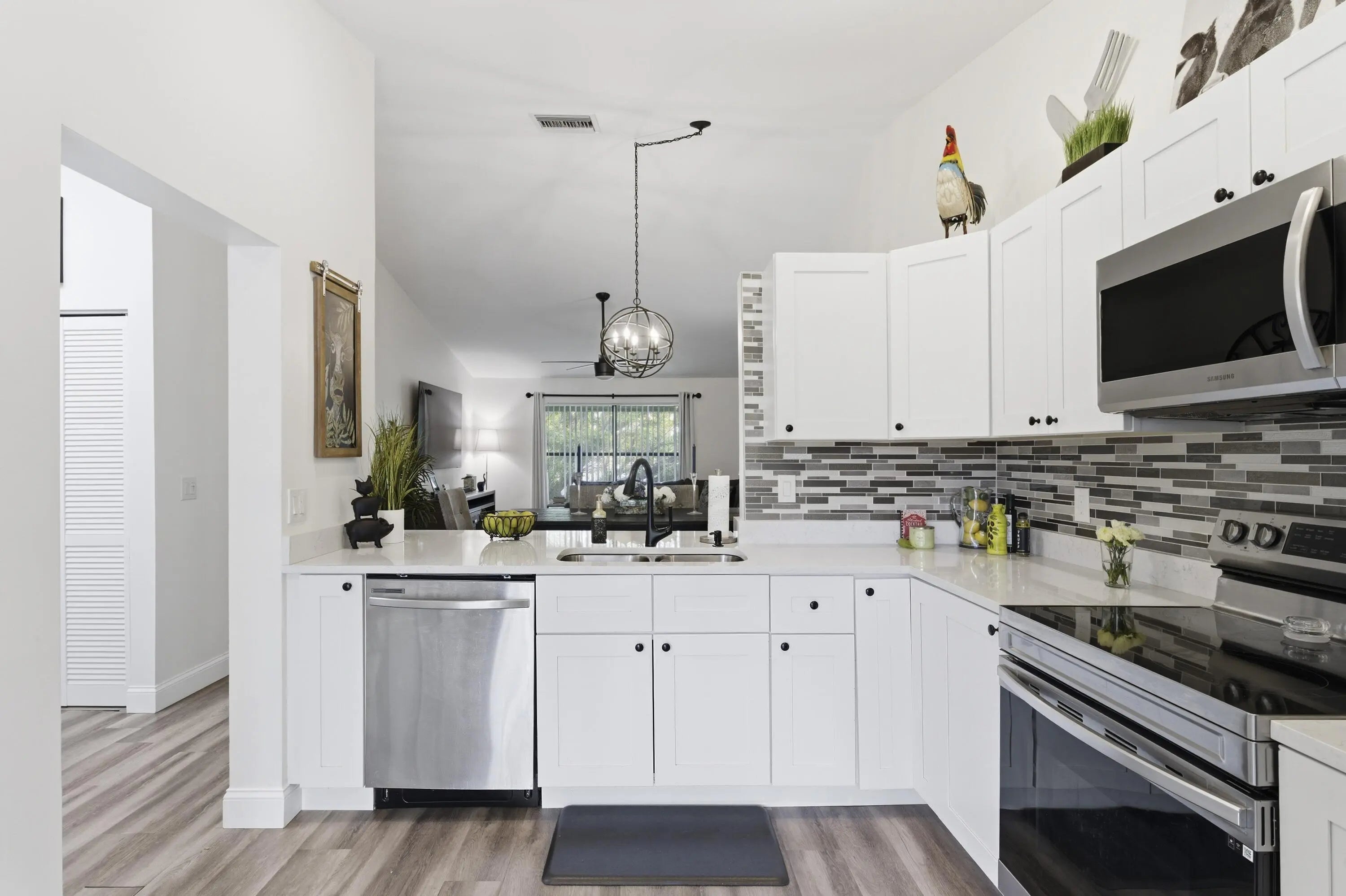 Beautifully updated 3 bedroom condo in the heart of Wellington, just minutes from world-renowned equestrian venues. This light, bright, and immaculate residence features a fantastic renovation including remodeled bathrooms, new luxury vinyl flooring, and a stunning contemporary kitchen with real wood white shaker cabinetry, Calacatta quartz countertops, and stainless-steel appliances. The open interior is enhanced by vaulted ceilings, impact skylights, and stylish designer paddle fans that create an airy, modern feel throughout. Enjoy outdoor living from the screened and covered balcony,. Additional storage room located just off the inviting front porch. Ideally located near Wellington's premier dining, shopping, and the Wellington Mall. Great home, perfect location, and exceptional value!