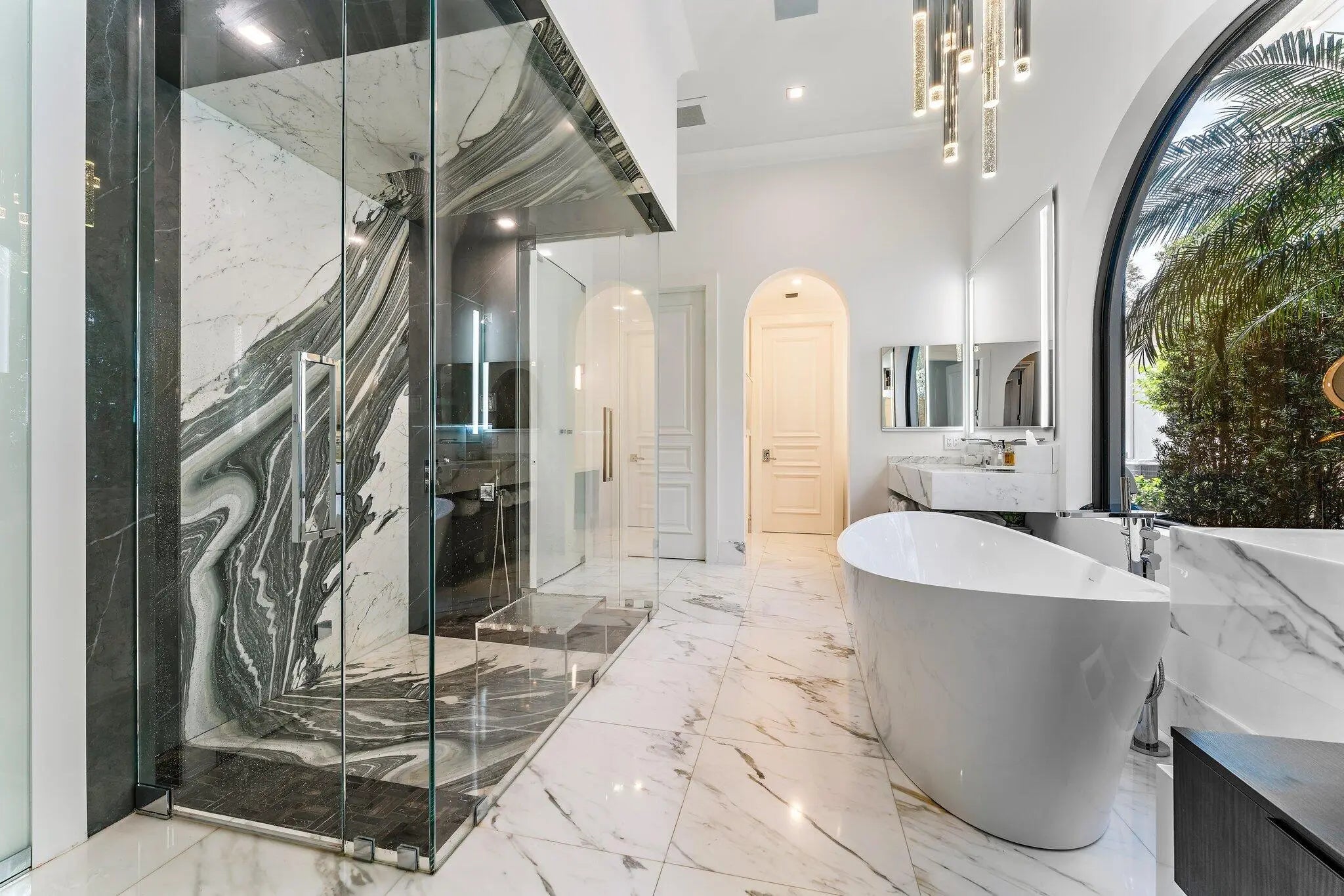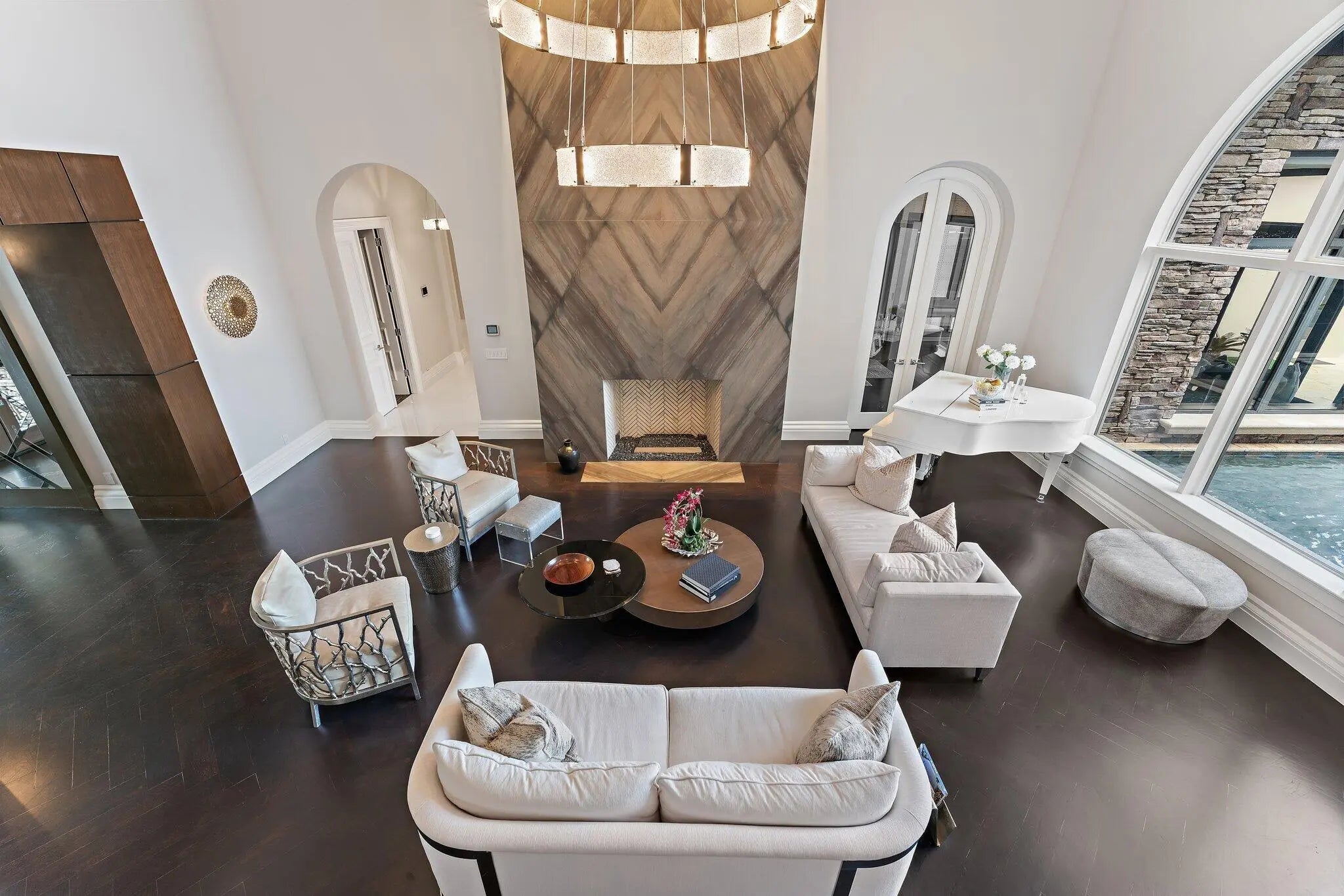 Bar, Built-in Features, Entrance Foyer, Elevator, High Ceilings, Walk-In Closet(s), Roman Tub, Upstairs Living Area, Cabana Bath
