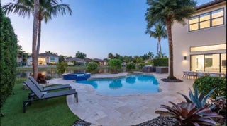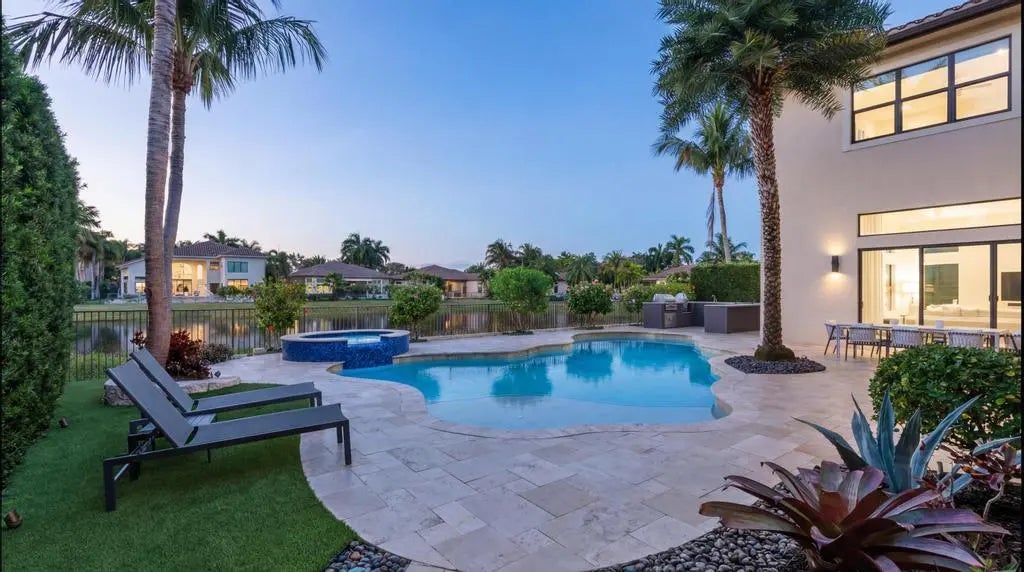 Experience refined lakefront living in The Bridges with over $600,000 in upgrades from the original model. This 6BR + loft + bonus room estate offers en-suite baths in every bedroom, a custom chef's kitchen with Wolf range and Sub-Zero refrigeration, and a spa-inspired primary suite with freestanding tub. Enjoy a Diamond Brite pool with sun shelf, Jerusalem marble patio and updated summer kitchen. Additional highlights include a whole-house generator, new landscaping and lighting, 24x24 porcelain tile, hardwood floors, custom closets, and a 3-car garage with epoxy floors, built-in cabinets and refrigerator, AC - 2025 & 2026. Termite contract included. Gated community with 17,000 SF clubhouse, restaurant with patio and pool service, tennis, pickleball, fitness, splash park and playground.