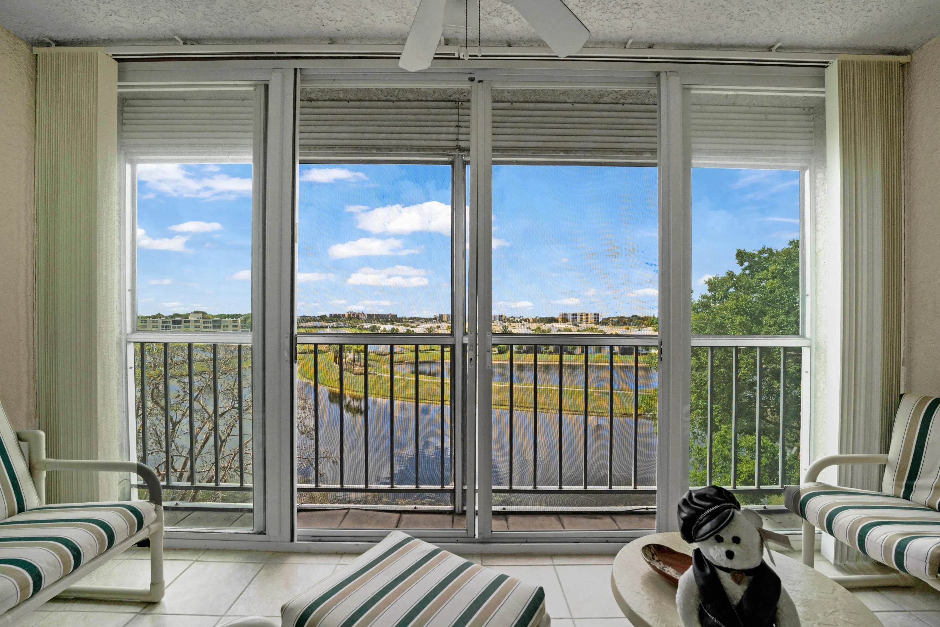 Welcome to this great corner condo w/ gorgeous direct lake and stunning sunset views. This unit has 2 bedrooms and 2 bathrooms. Updated kitchen with stainless steel appliances. Bright living-dining area with access to the fabulous enclosed balcony. Perfect to just sit on it and enjoy the serene views. Very large main bedroom with an abundance of sunlight. Private bathroom. Large guest bedroom. and another bathroom. Low quarterly fees. No special assessment!!! IMPACT SLIDING DOORS ON LANAI!!! HURRICANE ACCORDIAN SHUTTERS FOR PEACE OF MIND THROUGH THE HURRICANE SEASON. Community clubhouse is right across the street. Come take a look at this nice condo. Only minutes away from the beach and downtown Delray Beach.