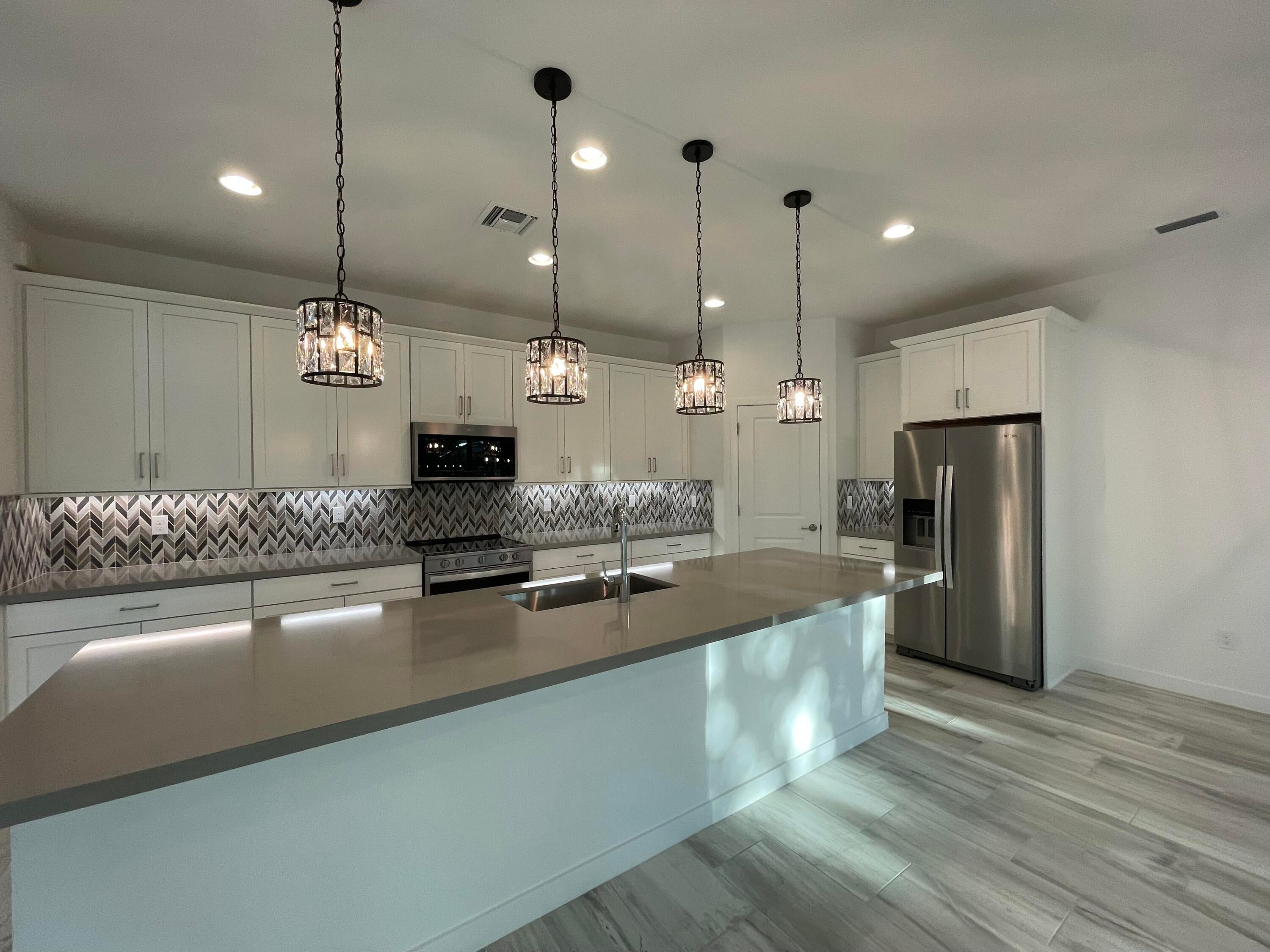 So many upgraded/model like/ contemporary home located in Wellington/Lake worth/ minutes to T-pike and 6-7 minutes to Wellington Green Mall and ''whole food market'' Trade Joe/Sprouts/ Brand new TH/Villa/ semi-detached home feels like SH/Oakley luxury model/walk into two store foyer/top level porcelain large tiles in first floor/advanced kitchen appliances- stove w/ built-in menu/ /tasteful backsplashes/granite counter top /cabinets/under lighting/most trending island lights/chandelier/master bath room shower tiles/whole house *impact windows* 3+den/office /2.5/2 large garages. extended drive way/front patio/walk out back patio/Smart AC monitor etc. clean ready for moving in.