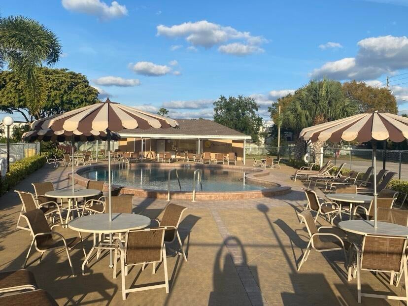 This unit is part in Century Village, a village and has ELEVATOR. Right in front of the building is the swimming pool, where you can meet up with your fellow neighbors. Great opportunity to have your little getaway and join in the action and fun when you want. Century Village is an over 55 community and has many amenities, clubhouse, theater, fitness center and courtesy buses. WITH A FULL PRICE OFFER THE SELLER WILL PAY THE ASSOCIATIONS FOR A FULL YEAR.
