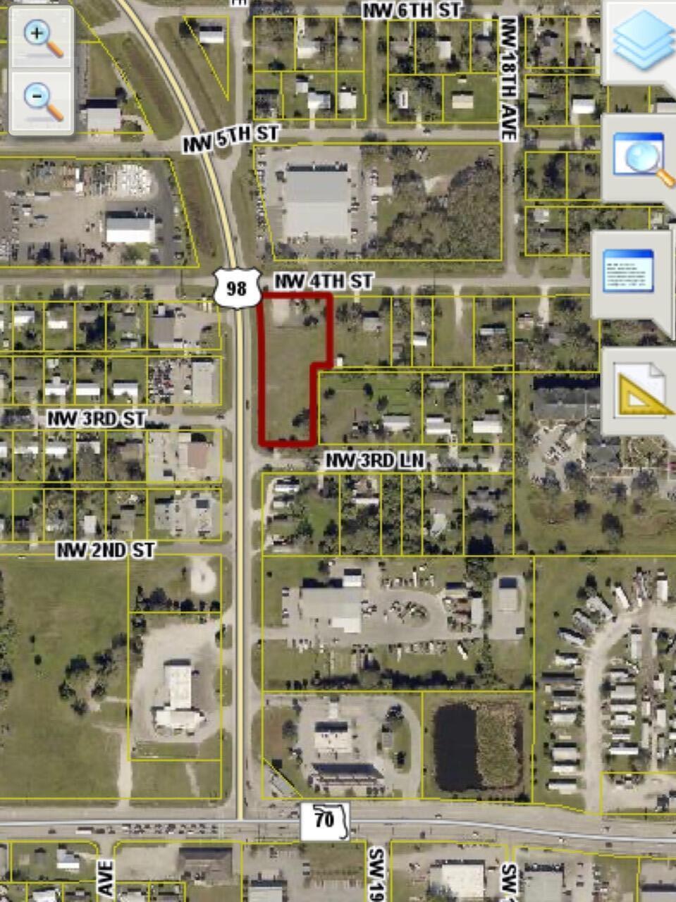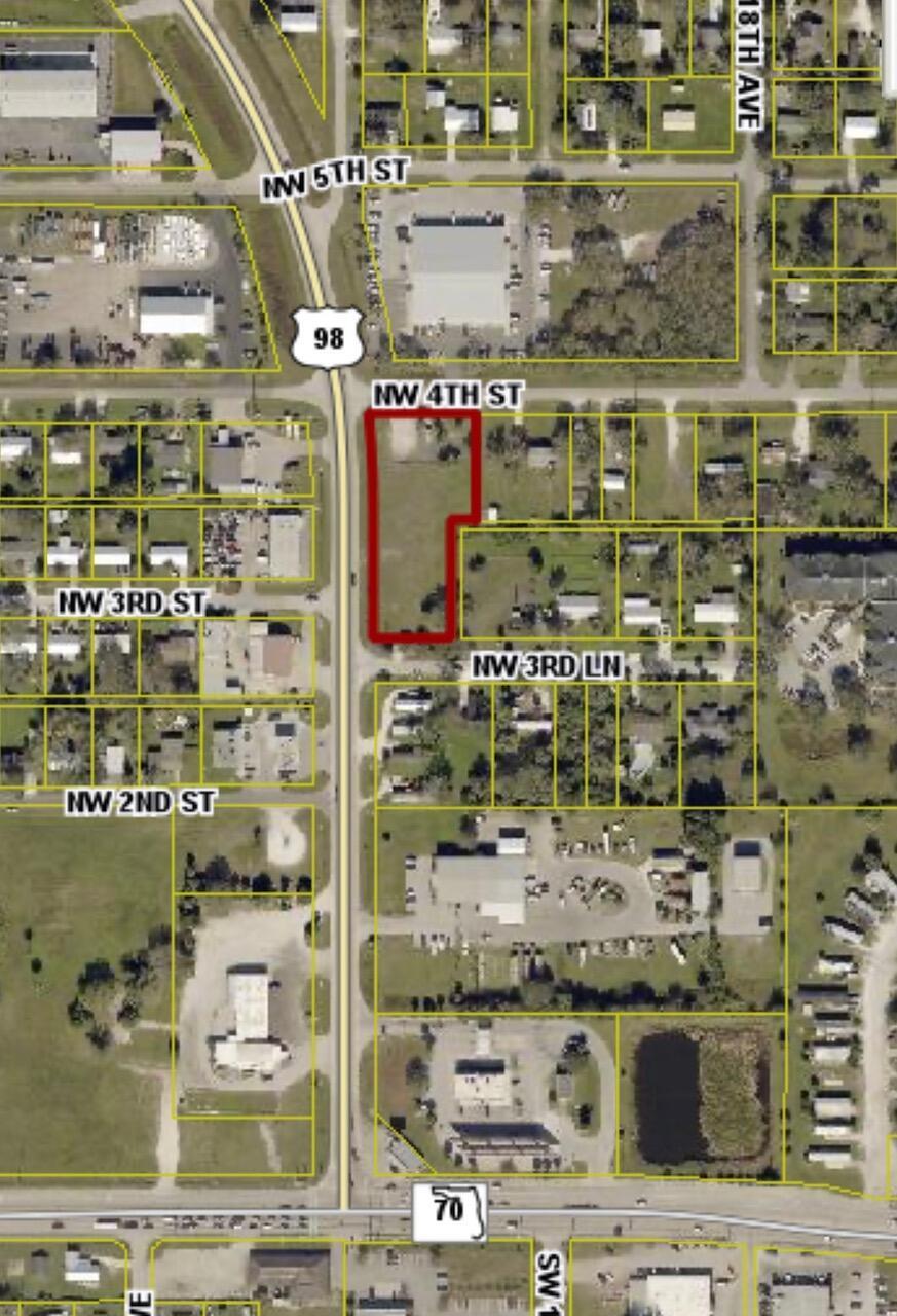 1.19 Acres of Commercial Land located in the heart of Okeechobee, Florida directly on US HWY 98 just north of State Rd 70 high traffic location great for multiple types of commercial businesses. Sizes are approximate.