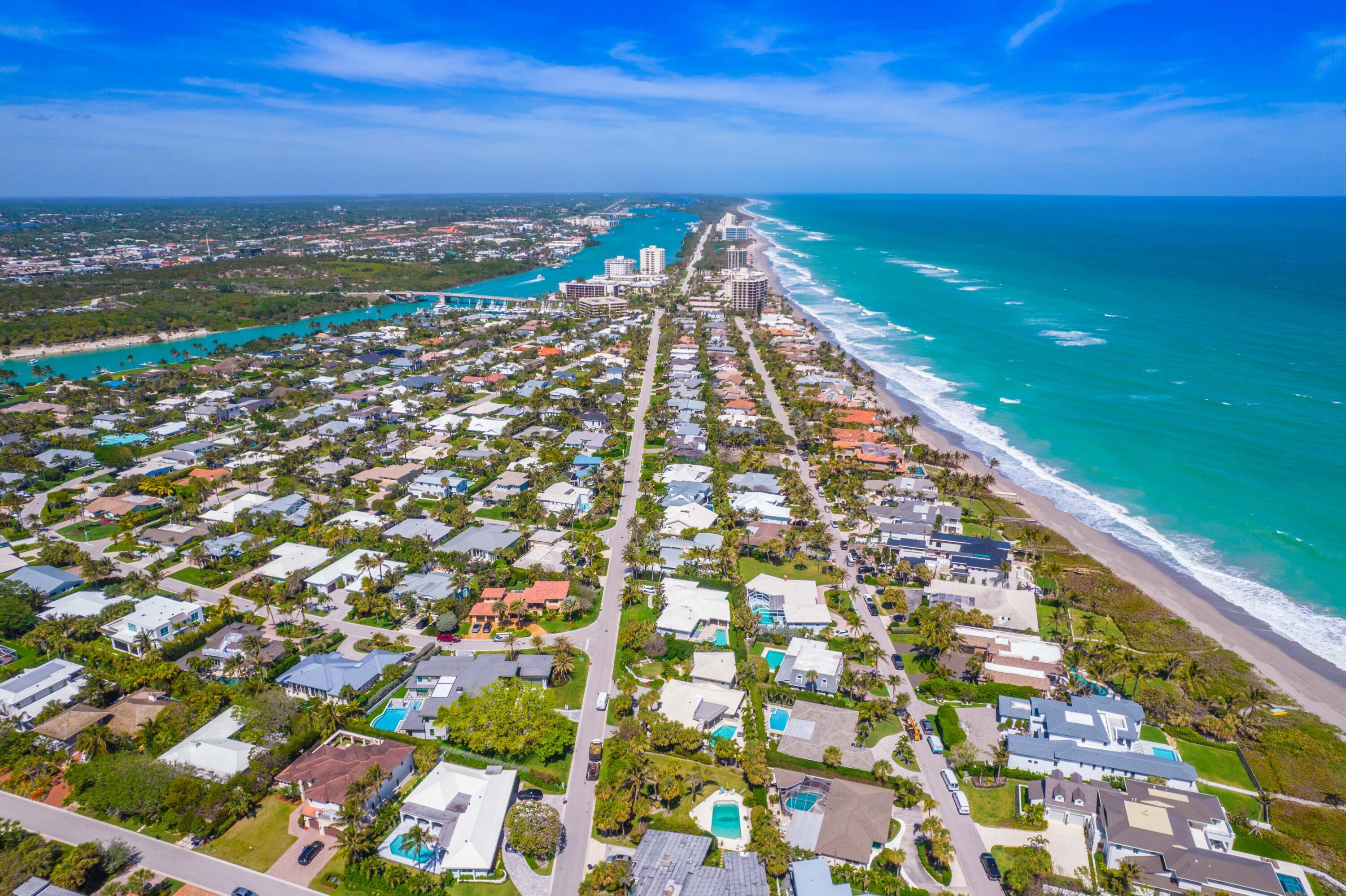 Jupiter Inlet Colony is southeast Florida coastal village spanning just .2 miles. Jupiter Inlet Colony is engulfed by three water features, the Altantic Ocean, the Jupiter Inlet and the Intracoastal Waterway.