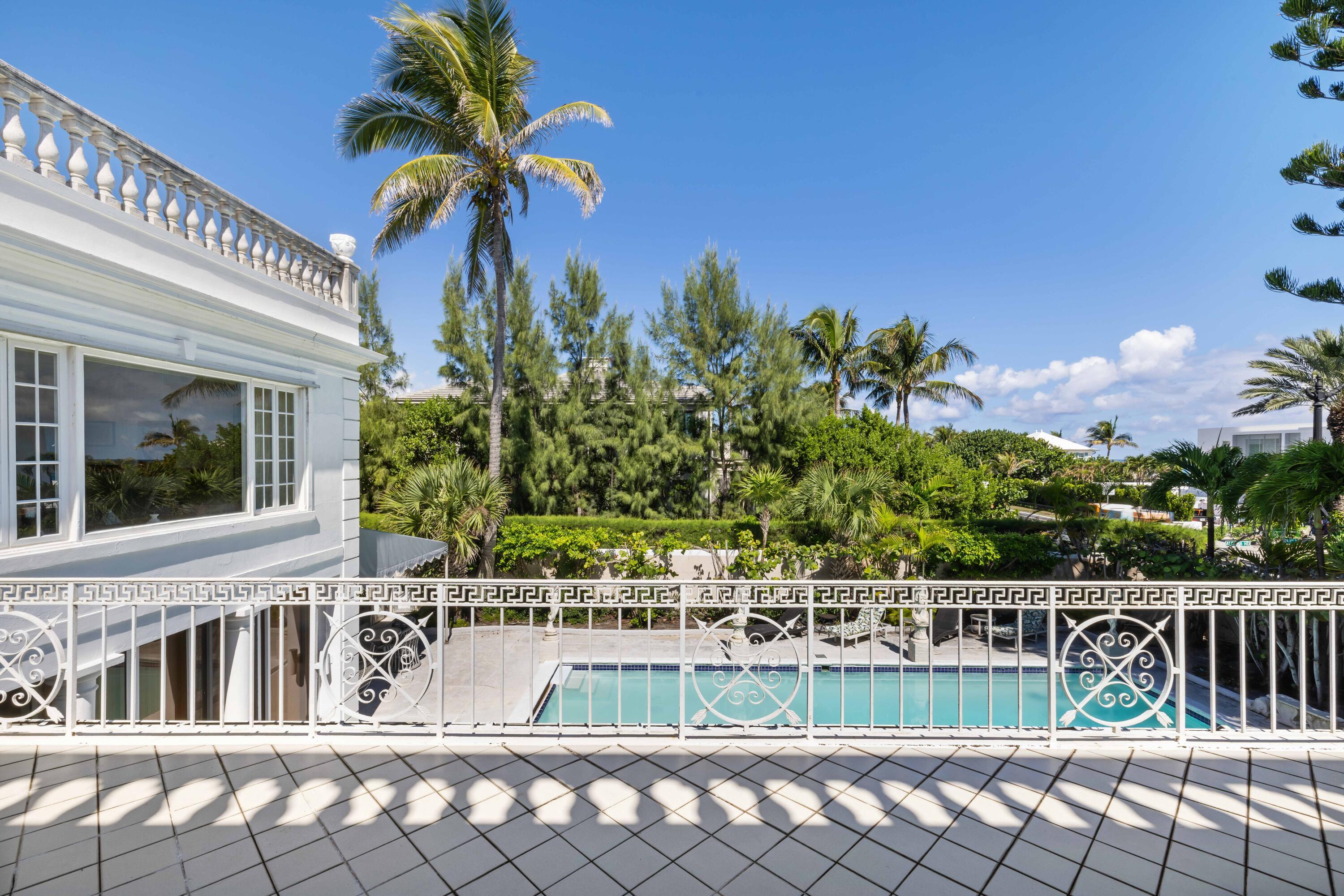 Sited within the Presidential Security Zone just two streets north of Mar-a-Lago, this elegant John Volk-designed Regency home offers timeless Palm Beach appeal with private deeded beach access and sweeping ocean views. Featuring five bedrooms, six full and two half baths, the residence includes two oceanview balconies and a 40-by-20-foot lap pool surrounded by manicured gardens. Perfect for entertaining or as a serene seaside retreat, the property presents an exceptional opportunity to reimagine, renovate, or build a dream home in the prestigious Estate Section--steps from the sand and minutes from Worth Avenue.