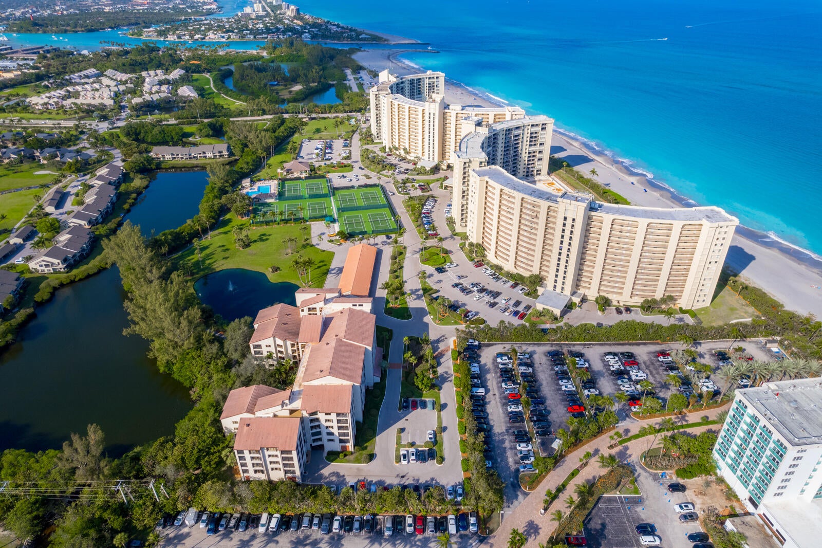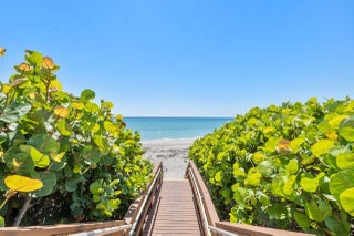 This 1650 S/F residence within the gated oceanfront community of Ocean Trail is a GEM! Experience a lifestyle of morning beach walks, 9 tennis courts, fitness trails, fountains, gardens, a heated lap pool with spa, and exciting nightlife. The wrap-around screen patio of this residence overlooks a natural estuary! Enjoy covered parking, multiple private beach accesses, high-end appliances (including wine refrigeration) and tile floors. The primary bedroom has a delightful walk in shower and closet. Just steps to the sand and outdoor showers! The Jupiter Beach Resort and Jupiter Dunes are adjacent - so take advantage of the spa, restaurant, and golf opportunities next door! Luxury theaters (including Maltz), upscale restaurants, bars, boutiques, and groceries are just seconds away by car.