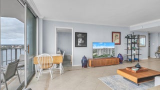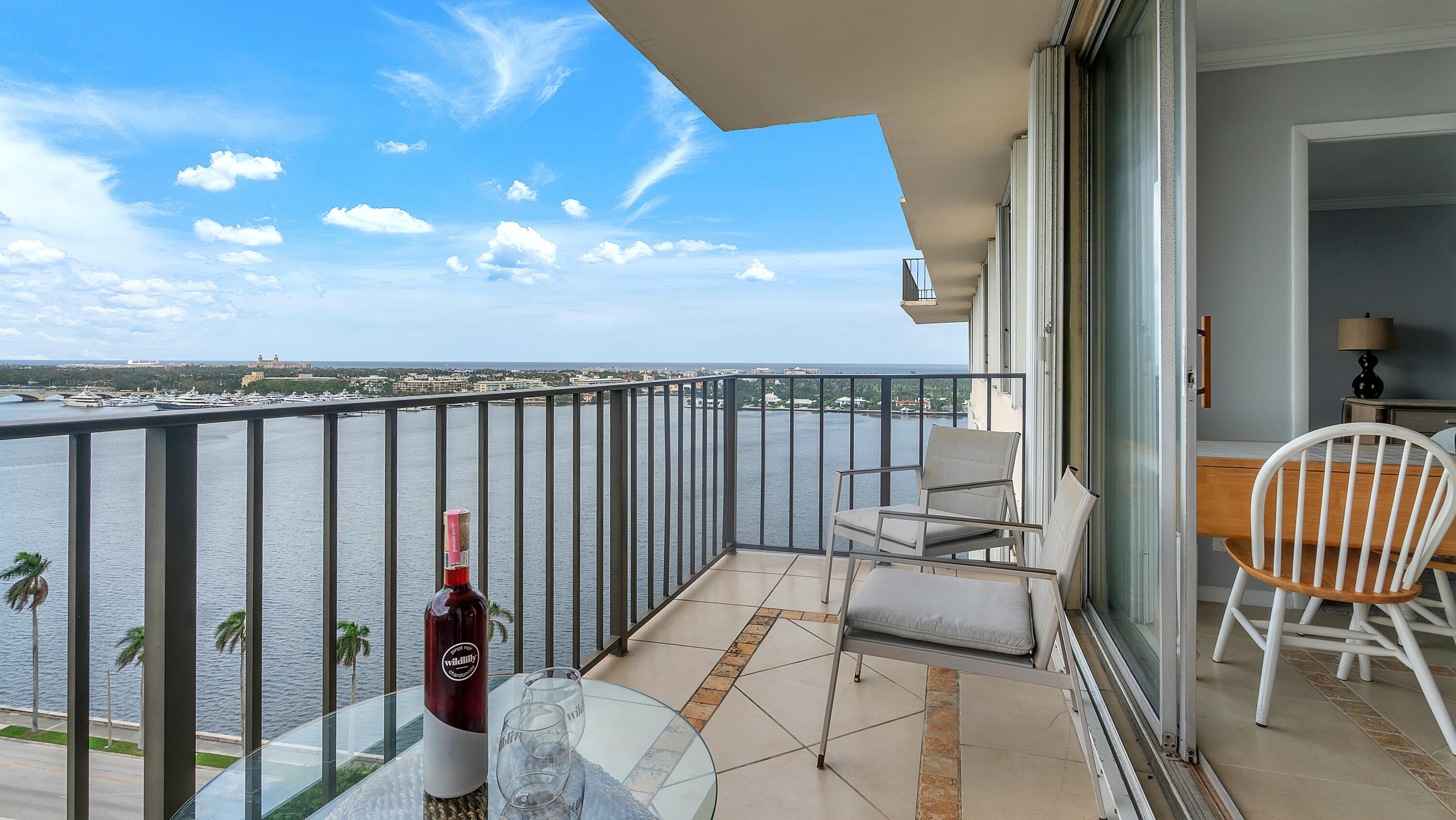 Lower waterfront penthouse with incredible Palm Beach ocean and Intracoastal views from every room! Tastefully reimagined in 2024 this 2 bed/2bath luxury condo features an open floor plan, split bed plan, & modern finishes, Kitchen outfitted with granite counters and all stainless steel appliances. Spacious bedrooms with modern baths. Private balcony perfect for entertaining while watching sunrise/sunset overlooking the tranquil waterways. The Luxurious Rappallo South is a full service building 24hr doorman, heated pool, fitness center, media room, and business center. Prime location just minutes from the best in nightlife, restaurants, shopping and entertainment. PBI airport less than 15 min drive and easy access to local marinas, Brightline, & best schools. Also avail for rent