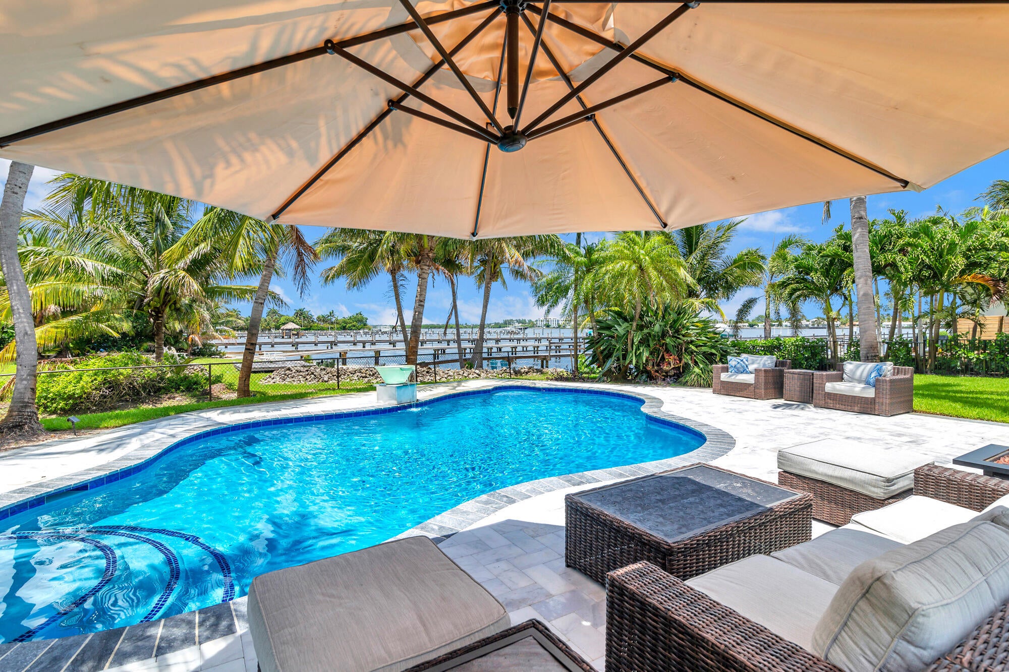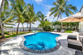 Gated community on the intracoastal with Palm Beach views, close to the Four Seasons and Eau Hotel and Spa with its own new Nobu restaurant.Beautiful Home 5/4.5/2 CBS home with spectacular intracoastal and golf course views. This property comes with it's own assigned boat slip that can accommodate up to a 48' vessel. Featuring over 5300 total square feet there is plenty of room for the family and entertaining of guests. The upgrades include full impact rated windows and doors (2019), metal roof, fully redone pool with marble decking (2019). The home was designed to maximize the amazing views of the golf course from the upstairs balcony, and the pool and intracoastal from the rear second floor balcony. This property is a boater's dream, call to schedule your private Tour.