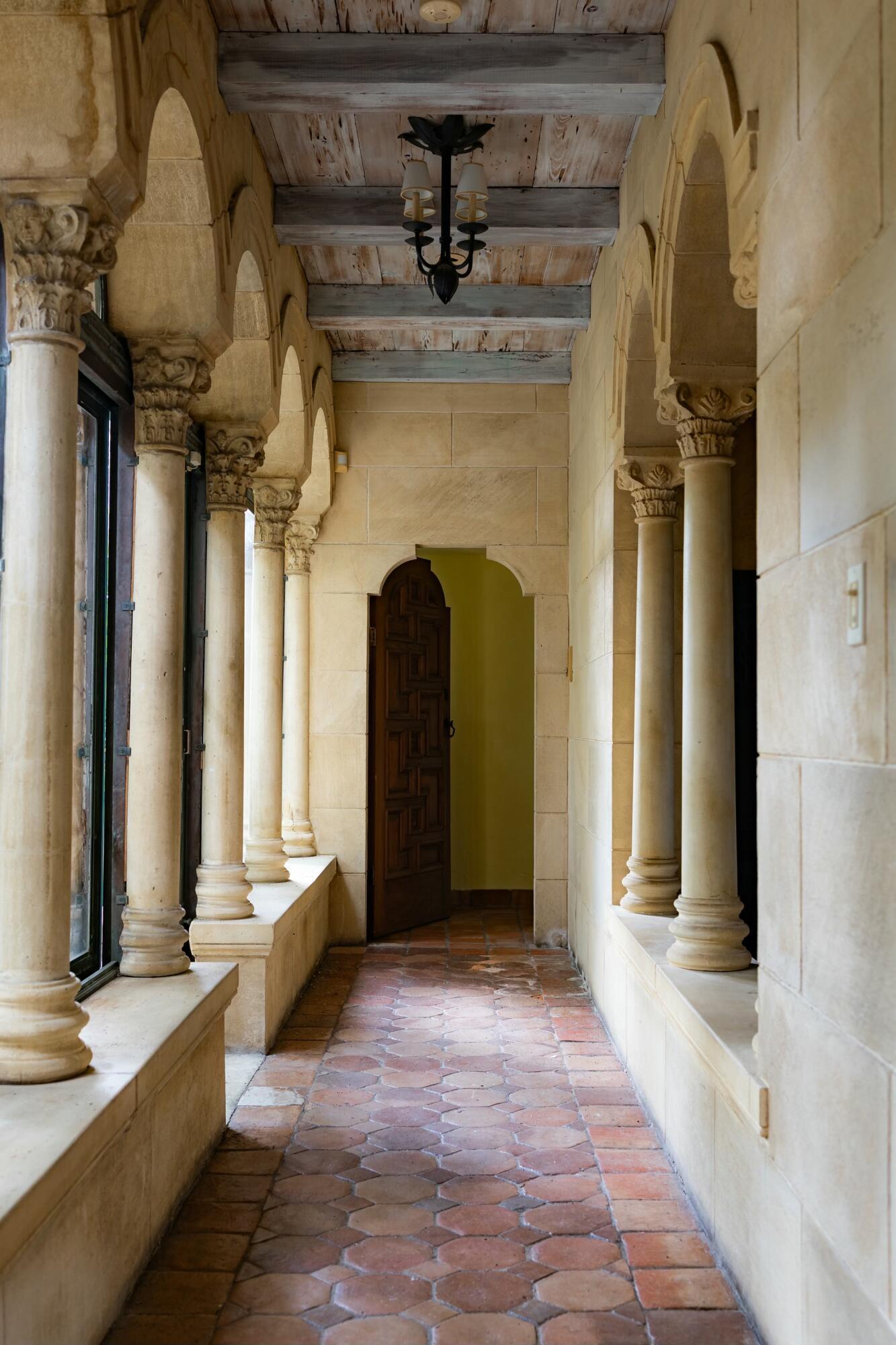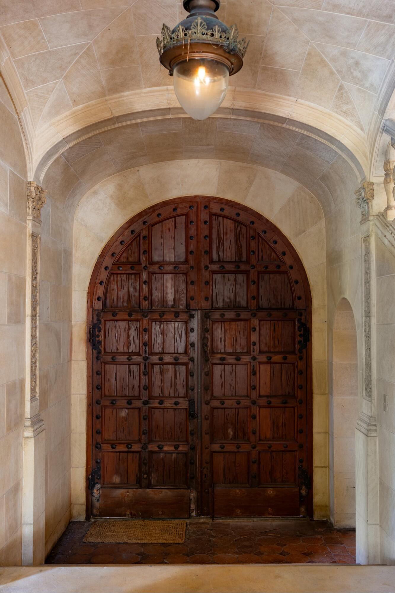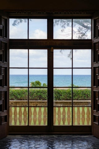 Rare Offering: ''Old Palm Beach'' Ocean Front Property. Addison Mizner Architect. 232' of deeded private beach. sweeping front lawn. ball room/LR, sunroom, master, guest rooms all with direct ocean views, 5 bedroom, 5 full bath, 1 half bath. pool, interior courtyard with original working fountain. All original Mizner architectural features, including 16th century oak paneling. Elizabethan-era stain glass. ornate carvings, decorative tile work, cast limestone detailing, elaborate arches, hand-painted coffered ceiling, pecky cypress ceilings and beams throughout, original fixtures, hand carved doors, intricate ironwork. These distinctive details add richness and visual interest to this home, showcasing the historical craftsmanship and artistic flair.Landmarks like the William Warden House contribute to the sense of identity and pride within this island community. It serves as a symbol of Palm Beach's history, heritage and architectural legacy. Since it preservation efforts in 1980 the property has become an iconic representation of Palm Beach's past and its development into a luxurious destination. It's presence enriches the community's cultural fabric and fosters a sense of place and belonging.