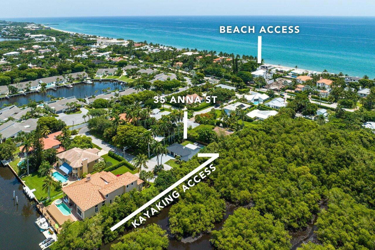 Ideal for nature lovers and water enthusiasts, this property offers direct access for paddle boarding to the Intracoastal Waterway and is just two blocks from the beach. Nestled on an ultra-private street in one of the most sought-after areas of Ocean Ridge, 35 Anna Street boasts a prime location on a tropically landscaped lot offering an unparalleled coastal lifestyle. Encompassing 2,602 TSF, the home includes 3 bedrooms and 2 bathrooms, exuding a charming beach area vibe that creates a wonderfully inviting atmosphere.Recent updates, such as a newly remodeled kitchen and baths, new plumbing and A/C a metal roof, and full-impact windows and doors, ensure modern comforts and safety. Surrounded by lush mangroves and a tranquil natural waterscape, the back garden offers a serene and private oasis featuring a delightful pool, perfect for entertaining and enjoying the refreshing ocean breezes. A brick driveway and a two-car garage add convenience and elegance to the property. Its proximity to Atlantic Avenue and the plethora of attractions that the Palm Beaches have to offer make this home even more desirable. This property is fully prepared for immediate enjoyment, presenting a rare opportunity to embrace the coastal dream lifestyle.