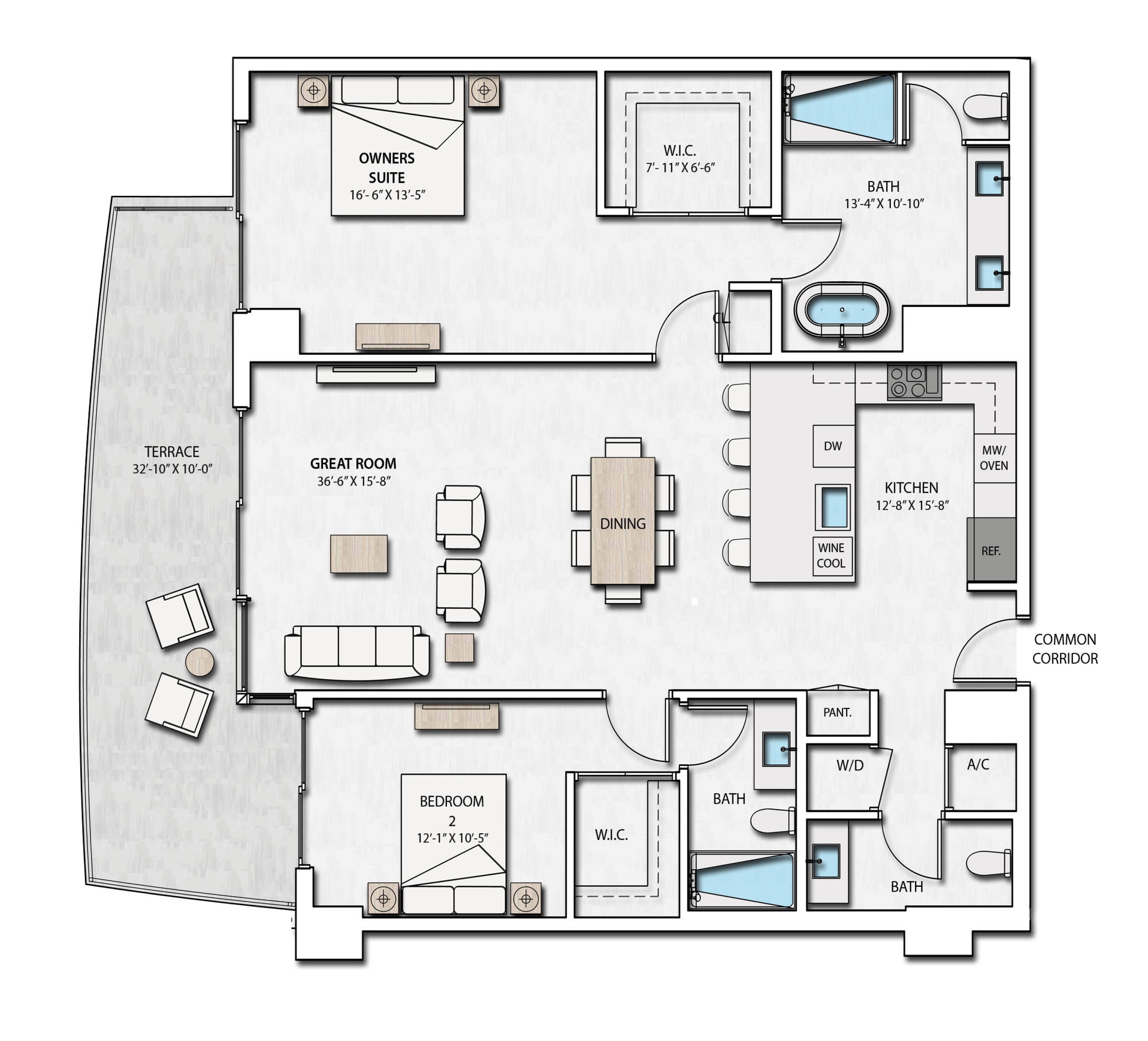 Nautilus 220 is a new luxe waterfront development under construction with closings beginning soon, alongside a marina with 330 condominium residences in two, 24 story towers, a one- acre outdoor amenity deck, the SeaHawk Prime by David Burke restaurant, retail, a cafe and office suites. Everything you need in one place, resort-style living perfected. This unique floorplan is beautifully appointed with 10ft ceilings and hurricane impact glass, porcelain tile throughout, full Miele Appliance package, wine & beverage cooler, waterfall quartz kitchen island and countertops with European cabinetry, split-bedroom layout, oversized owner's suite with large bathroom featuring freestanding soaking tub, and large terrace with Northeast water views.N220 boasts a 1-acre outdoor amenity deck with a resort pool, sundeck, spa, fire pit, yoga deck, putting green, off-leash dog park, and 2 floors of indoor amenities with a spin studio, yoga studio, sauna and steam rooms, bowling, theater, golf + sports simulator, music studio, club room, billiards and card tables, kids' playroom, teen gaming room, and much more including a rooftop lap pool and spa with 360-degree panoramic views. Additional services include 24-hour onsite security and management, electric car charging, guest suites. With waterfront restaurants, retail, offices, café, and private beach club access, N220 is your destination for luxury living. Our Lobby with 18ft voluminous ceilings and amenities areas designed by the renowned Interiors by Steven G. provide a grand arrival into your new home. Our 330 residences offer 2- 3 bedrooms, multiple floorplan options, and multiple water views. Very pet friendly community.