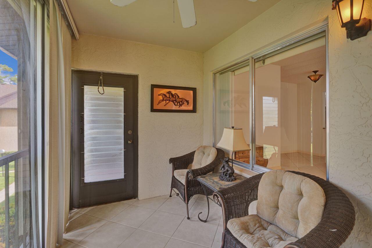 LEASED UNTIL MAY 2026. Beautifully maintained 2/2 condo is a perfect blend of comfort, convenience, and style. Enjoy an open kitchen overlooking the living area. The kitchen has updated cabinetry, a breakfast bar and s/s appliances, Large windows fill the living area with natural light while ceramic tile is underfoot. Both bedrooms include a generous walk-in closet. The 2nd bedroom is versatile and can be used as a guest room, home office, or hobby space. Step out onto your private, enclosed patio with sliding doors to enjoy peaceful mornings with your coffee or to unwind. The serene views of the lush greenery add to the tranquil setting. Other great features included a full-size washer/dryer, a newer electrical panel, a brand new water heater and hurricane shutters.Some photos have been virtually staged. Pine Ridge offers a range of amenities tailored for active adults, including a clubhouse, swimming pool, fitness center, and organized social events. Embrace a lifestyle filled with engaging activities and opportunities to connect with neighbors. Situated in Greenacres, Florida, this condo is conveniently located near shopping, dining, and medical facilities. Enjoy easy access to major highways and explore the beautiful surroundings that South Florida has to offer. This condominium is more than just a home; it's a gateway to an active and fulfilling lifestyle in a welcoming community. Don't miss your chance to experience all that Pine Ridge has to offer.