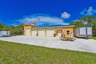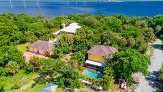 Estate Home with Guest House sitting on a 7.25 Acre parcel of Riverfront land, w/ 460' walk out dock. Calling all Car Collectors ,Very Private Estate Home with attached 2 car garage set back over 250'. Plus 2 Separate Large Garages perfect for Car collection ,3 car detached garage with A/C ,gym & bath,CBS 32X55, plus a new 5 car garage 72' X 32' with apartment , full A/C . High & Dry w/30 ft elevation ''per owner''. Main House 4600 under a/c 6,400 total. 10 ft ceiling Height,3 story, 4 bed, 4 bath, Granite Counters Kitchen & Baths,Double Oven, Media Room, Covered Balconies front and rear, Newer Aluminum Roof, Impact Windows 2nd & 3rd Floors, Electric Hurricane Panels first floor, 60,000 gallon free form resort salt water pool w/Spa , Horses OK
