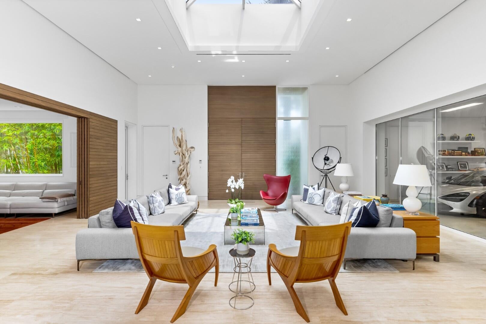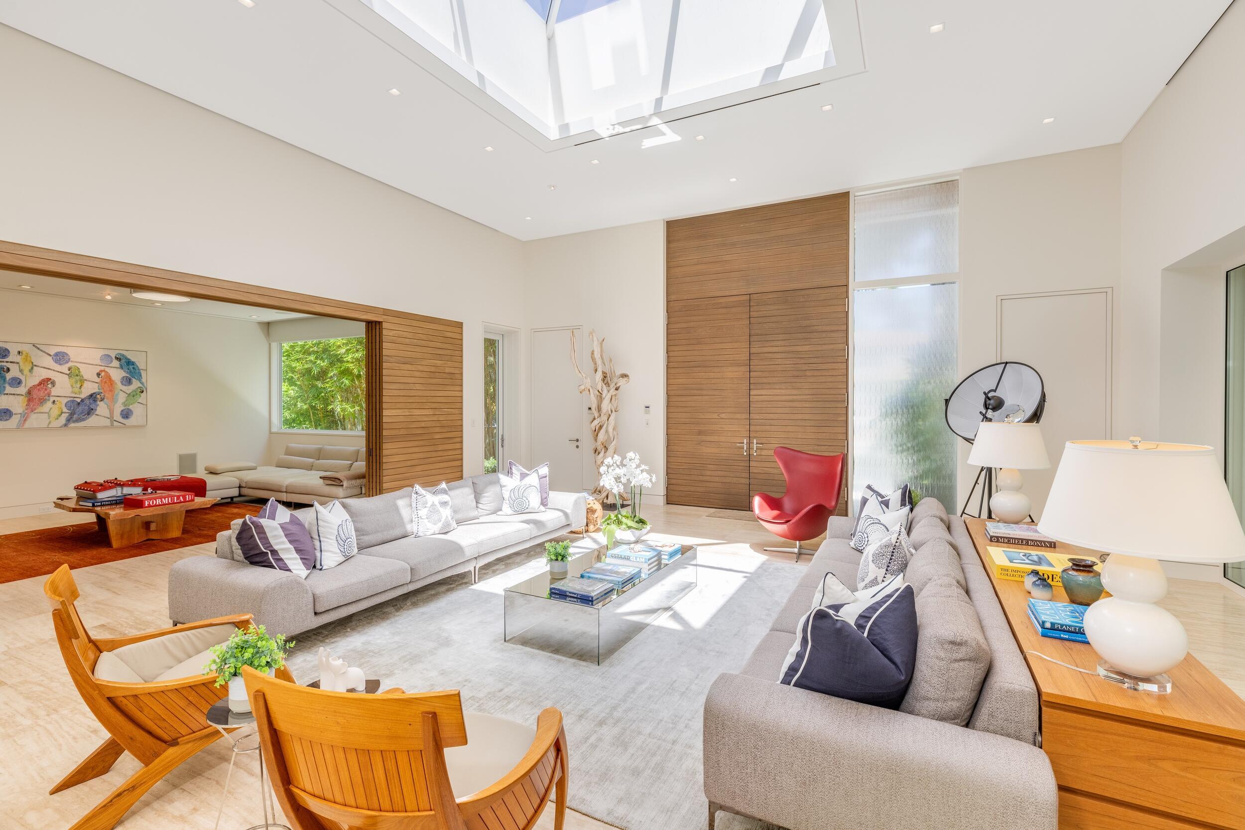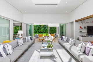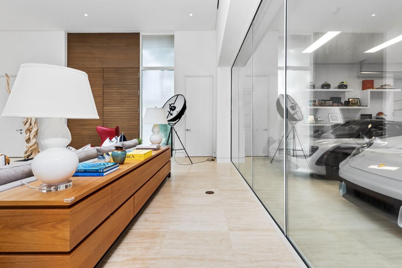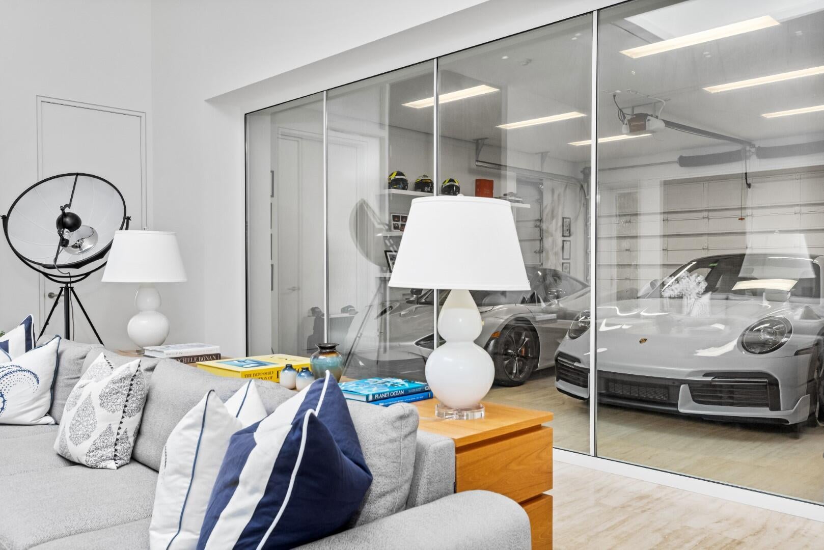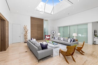Stunning, custom contemporary home designed by award-winning architect Daniel Kahan of Smith and Moore Architecture. This home is an auto-enthusiasts dream property! This pristine 3 bedroom + den, 3.2 bathroom home is situated on a fantastic south side Sea Street lot in the center of town. Features fabulous 4-car garage and automobile showroom. Light filled formal living room with dramatic skylight overlooks the showroom with retractable blinds. Eat-in kitchen with expansive island, top-of-the-line appliances, walk-in pantry, and breakfast room. Beautiful primary suite with walk-in closet and primary bath with dual sinks and oversized shower. Expansive covered loggia and meticulously maintained grounds. No detail has been overlooked with pristine finishes and gorgeous marble and hardwoodflooring throughout. Additional highlights include home gym, media room, sound system, impact windows and doors, and ample storage.
