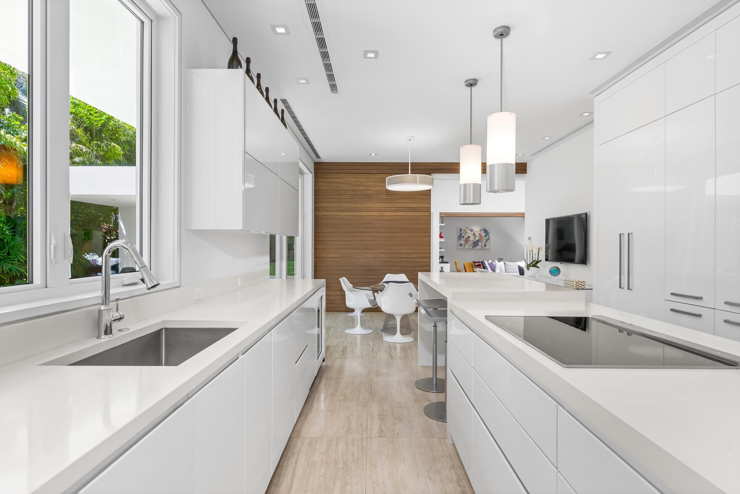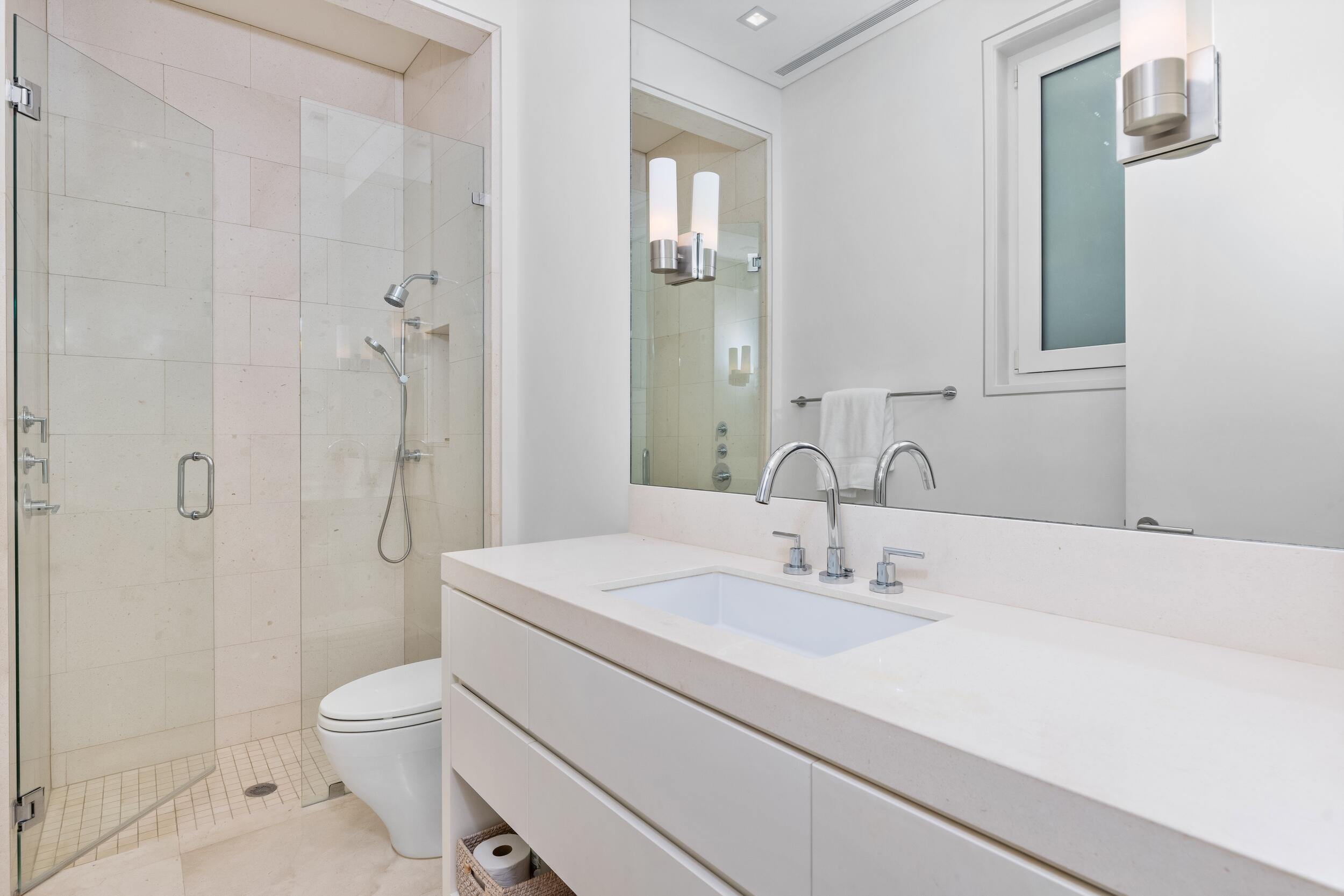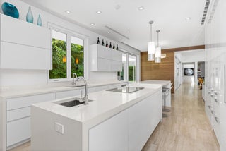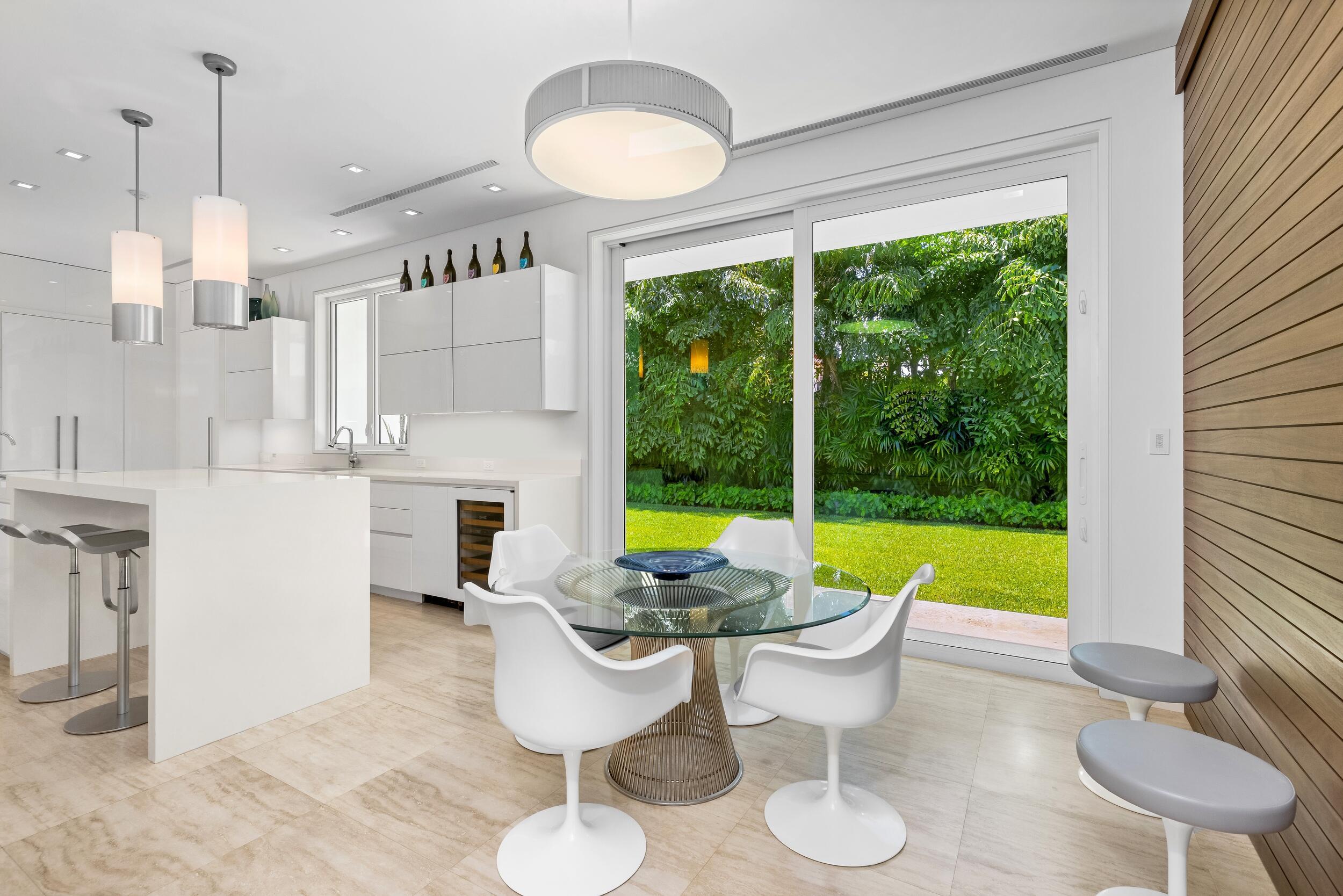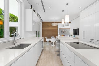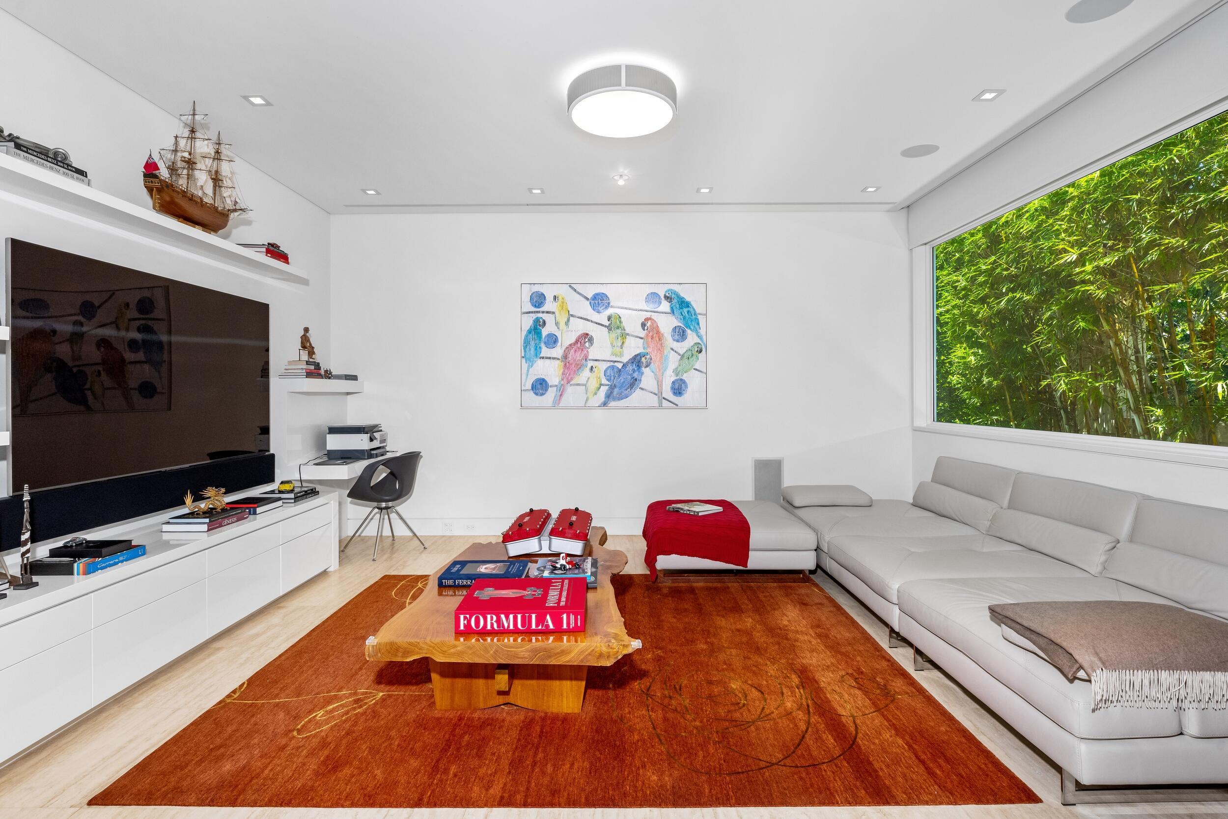 Stunning, custom contemporary home designed by award-winning architect Daniel Kahan of Smith and Moore Architecture. This home is an auto-enthusiasts dream property! This pristine 3 bedroom + den, 3.2 bathroom home is situated on a fantastic south side Sea Street lot in the center of town. Features fabulous 4-car garage and automobile showroom. Light filled formal living room with dramatic skylight overlooks the showroom with retractable blinds. Eat-in kitchen with expansive island, top-of-the-line appliances, walk-in pantry, and breakfast room. Beautiful primary suite with walk-in closet and primary bath with dual sinks and oversized shower. Expansive covered loggia and meticulously maintained grounds. No detail has been overlooked with pristine finishes and gorgeous marble and hardwoodflooring throughout. Additional highlights include home gym, media room, sound system, impact windows and doors, and ample storage.