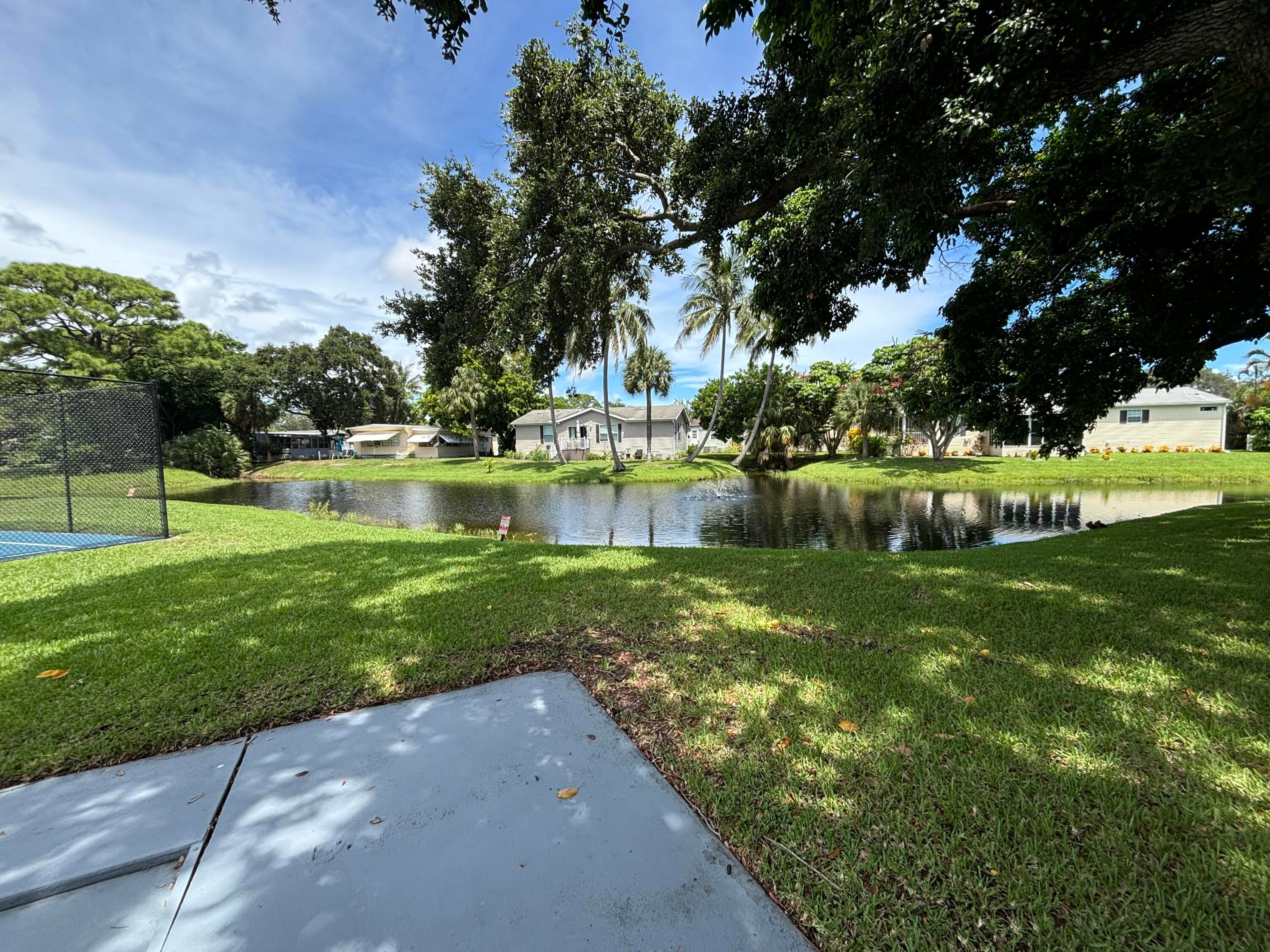 Rare Find. Only 5 homes in the whole neighborhood with a garage and this house has a TWO CAR GARAGE with private 2 car driveway in the Meadows community in Palm Beach Gardens. The Kitchen was updated in 2019 with granite counter tops and stainless steel appliances. Washer and dryer located in laundry closet off the kitchen. Durable Laminate wood floors throughout the house in soft gray tones which match the cookies and cream granite counters in bathrooms and kitchen. Split floor plan with 2 bedrooms/ 1 bathroom on one side and master suite on the other. French doors lead to your master suite complete with roman tub and stand alone shower. Screened Porch. Cul-de-sac location. The land is leased and monthly fee of $1400 includes water, cable, property taxes, maintenance of the pool,shuffle board, putting green, playground, fitness center, social events, RV/boat storage, and common areas. The Meadows is centrally located across from Trader Joe's Market and minutes from The Gardens Mall, beaches, boating, I-95 and the Florida Turnpike.