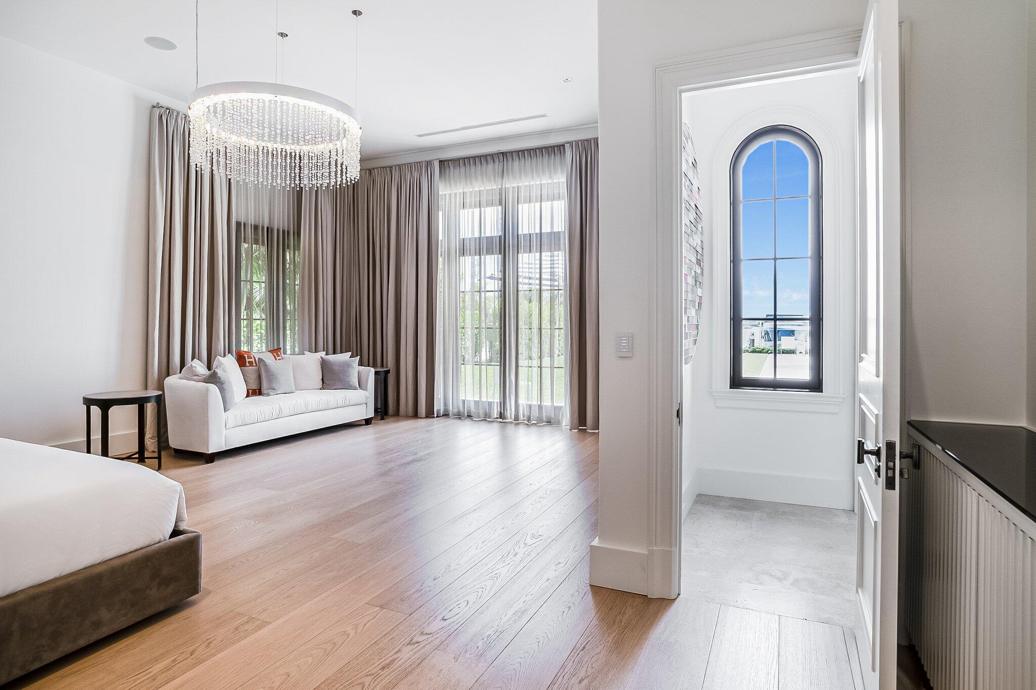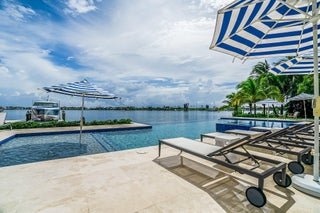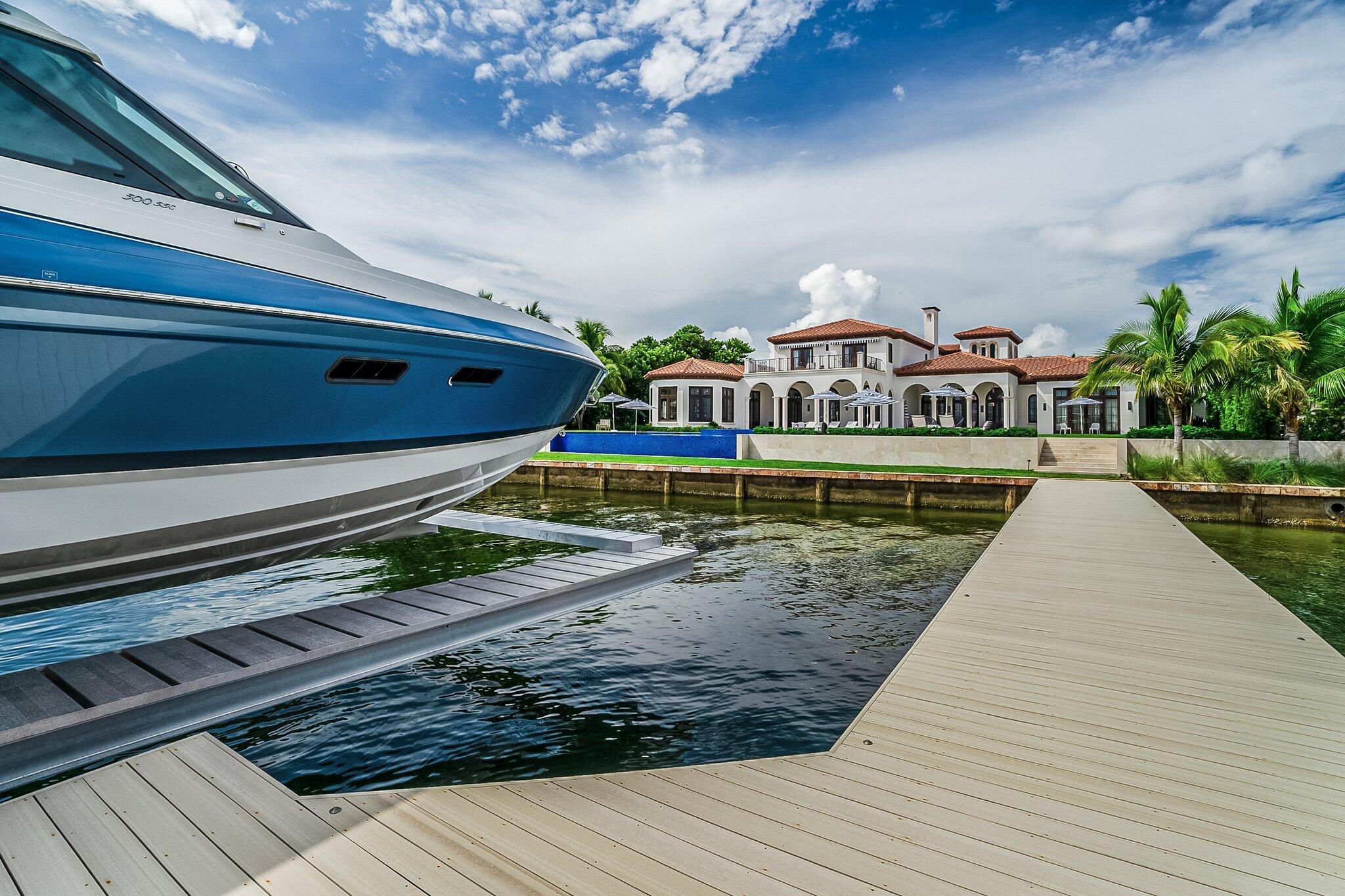 Introducing a remarkable waterfront masterpiece. This ultra-luxury estate spans over 33,000 sq ft of land & 13,000+ sq ft of air-conditioned living space across two stories. Featuring 7 bedrooms & 8.5 baths, the property showcases 140 ft of direct Intracoastal frontage, a private concrete dock, a 60,000-lb boat lift, & a covered jet ski lift. Enjoy an 8-car garage, designer furnishings, a commercial-grade gym, & private guest & staff quarters. With no HOA, this is the finest Intracoastal estate available, offering unmatched privacy, luxury, and convenience.