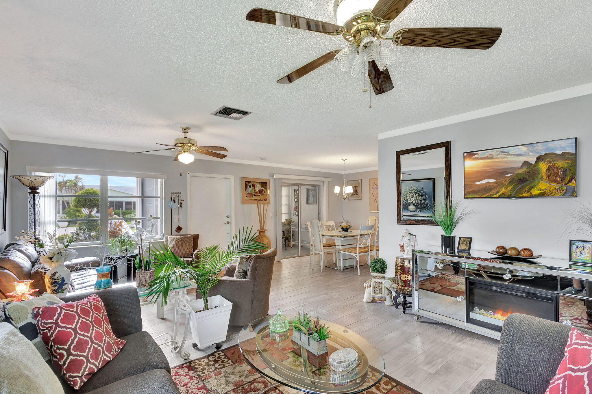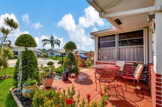 Welcome to your dream villa! This beautifully updated 2-bedroom, 2-bathroom corner-lot home boasts a wrap-around landscape, offering tranquility and privacy with plenty of room in the spacious enclosed front and open back patio to relax or entertain. The roof is new, providing peace of mind for years to come. As you step inside, you'll be greeted by brand-new tile flooring throughout, leading to a completely renovated kitchen featuring new appliances, a marble countertop and backsplash, a farmhouse sink, and a wine cooler. Freshly painted, the villa is move-in ready with updated bathrooms to match its modern charm. In addition to this impeccable home, you'll have access to aan impressive range of community amenities, including a golf course, card room, spa with a jacuzzi, heated pool, tennis courts, and even tai chi classes - all included with no membership required! Whether you're looking to relax or stay active, this community has everything you need to enjoy life to the fullest.