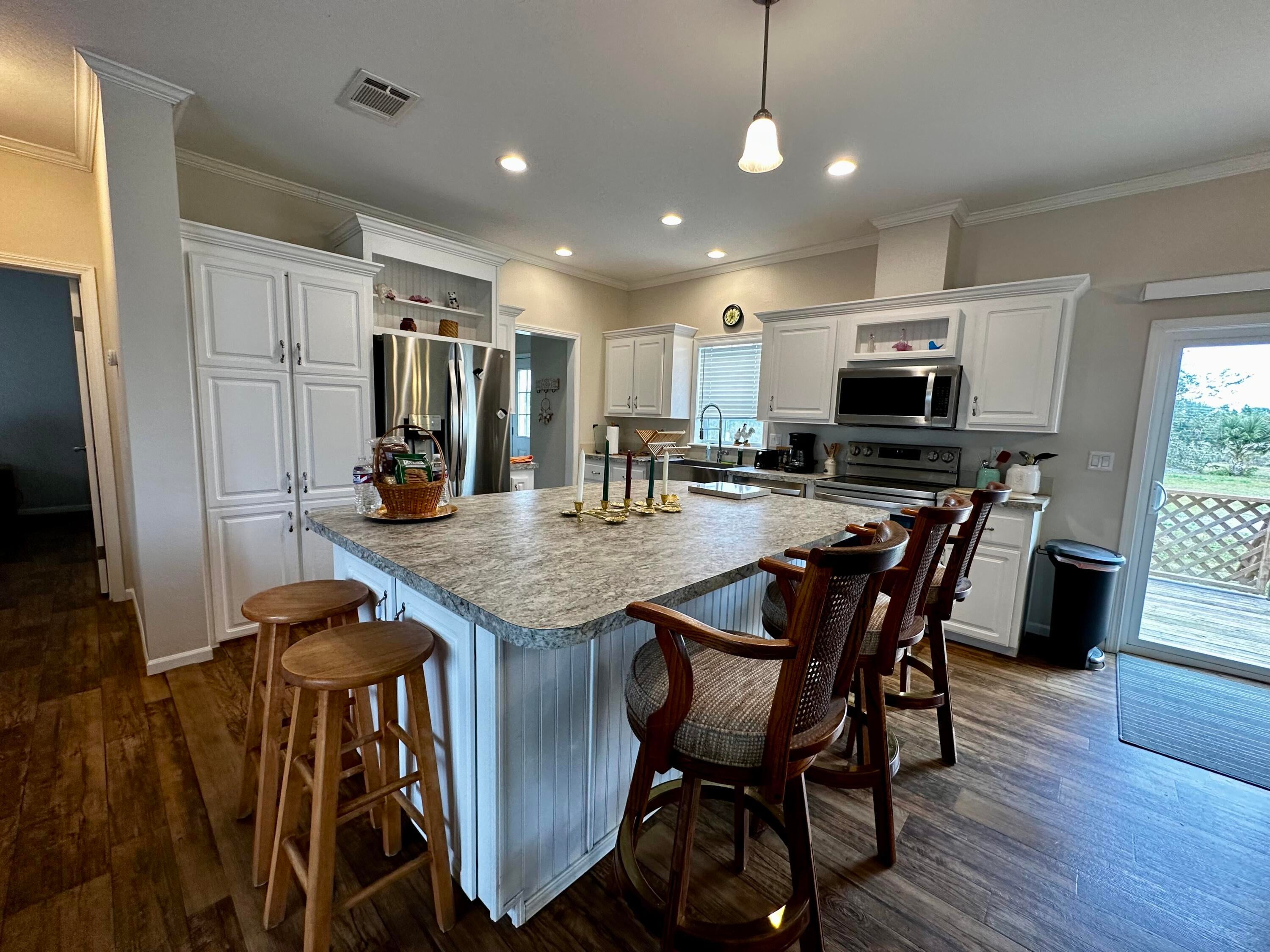 This stunning 3 bedroom and 2 bathroom home is situated on 1.25 acres of tranquil old Florida land that is fully fenced. This almost new manufactured home was completed in July of 2022. A 32'x12' new detached shed is also included. An open kitchen and living space provides the perfect atmosphere for entertaining with stainless steel appliances, walk-in pantry and large kitchen island. Luxury vinyl throughout and each bedroom has its own walking closet. This split floor plan comes fully furnished. The construction of this home was completed with solid tie downs and upgraded energy efficiency windows.This home comes with its own water treatment system. It is a jewel in the heart of Florida.