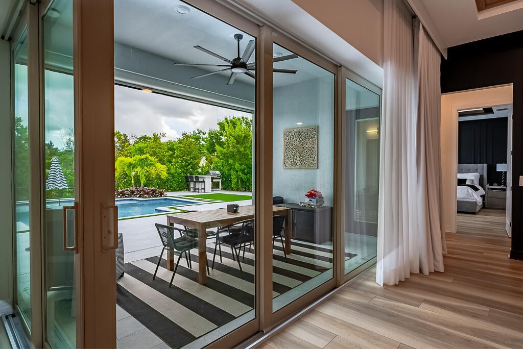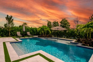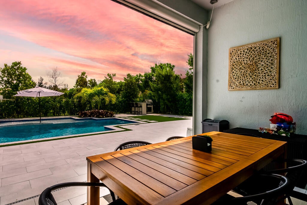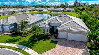 Come check out this property, boasting luxury and top tier finishes, This NEW construction home offers both functionality and elegance. The combination of lake views, a corner lot on a cul-de-sac, and a pool oasis makes for a serene and inviting atmosphere. 3 bedrooms(PLUS 2 flex rooms-a den and sunroom, 4 bathrooms, plus the 3 car garage is a show stopper! Equipped with luxury vinyl plank (LVP) flooring. Every bathroom, including the cabana bath is designed with full height wall tile and porcelain tile floors. The primary suite is a true retreat, featuring a grand walk-in closet with custom built-ins, tray ceiling with custom lighting, a board and batten wall feature and moreEnter the master bathroom for a spa-like experience! It offers a dual sink quartz vanity, huge walk-in shower with 2 shower heads. The kitchen is a culinary masterpiece, boasting a professional-grade chef's setup with quartz countertops and backsplash, ceiling high soft-close cabinets, high-end KitchenAid appliances including double ovens, a built-in microwave, and a 66" wide built-in fridge/freezer! A chimney-style stainless steel hood completes the sleek aesthetic. Step outside to enjoy the jaw dropping backyard with lush landscaping, saltwater pool surrounded by a luxurious marble deck and artificial turf design. The pool has a heater and a cooler. The outdoor summer kitchen has a propane grill and outdoor fridge. For added comfort, a retractable motorized screen covers the lanai, perfect for outdoor living. Greatness continues into the garage with epoxy-coated garage floors, 18,000 BTU mini-split unit for climate control and insulated doors. Additional desirable upgrades include hurricane impact windows and doors, custom closets, blinds, curtains, motorized drapes, custom wood ceiling details, wall paper, custom lighting, storage solutions, high end fixtures, and builder warranties. Community ammenities include pool, clubhouse, pickleball courts, 1G of ATT internet, and an unmanned gate. Check out the upgrade list for more. This home is WOW factor!