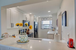 OCEANRISE ON HUTCHINSON ISLAND - As you step into this updated penthouse condo, you are immediately greeted by breathtaking panoramic views of the blue ocean, stretching all down the coastline. Every sunrise will be yours to enjoy from the comfort of your home. The newly renovated kitchen/master bath are truly stunning, featuring white shaker cabinets, Quartz countertops & kitchen views of the intracoastal waterway with amazing sunsets. You will love the tile floors in the living areas & laminate floors in both bedrooms. Impact glass sliding door/bedroom window & replaced AC (2025). Amenities include pool, clubhouse, shuffleboard, car wash and dune walk to beach. Furniture is negotiable. MIRS and SIRS inspections have been completed, All sizes, taxes, descriptions and HOA are approx.