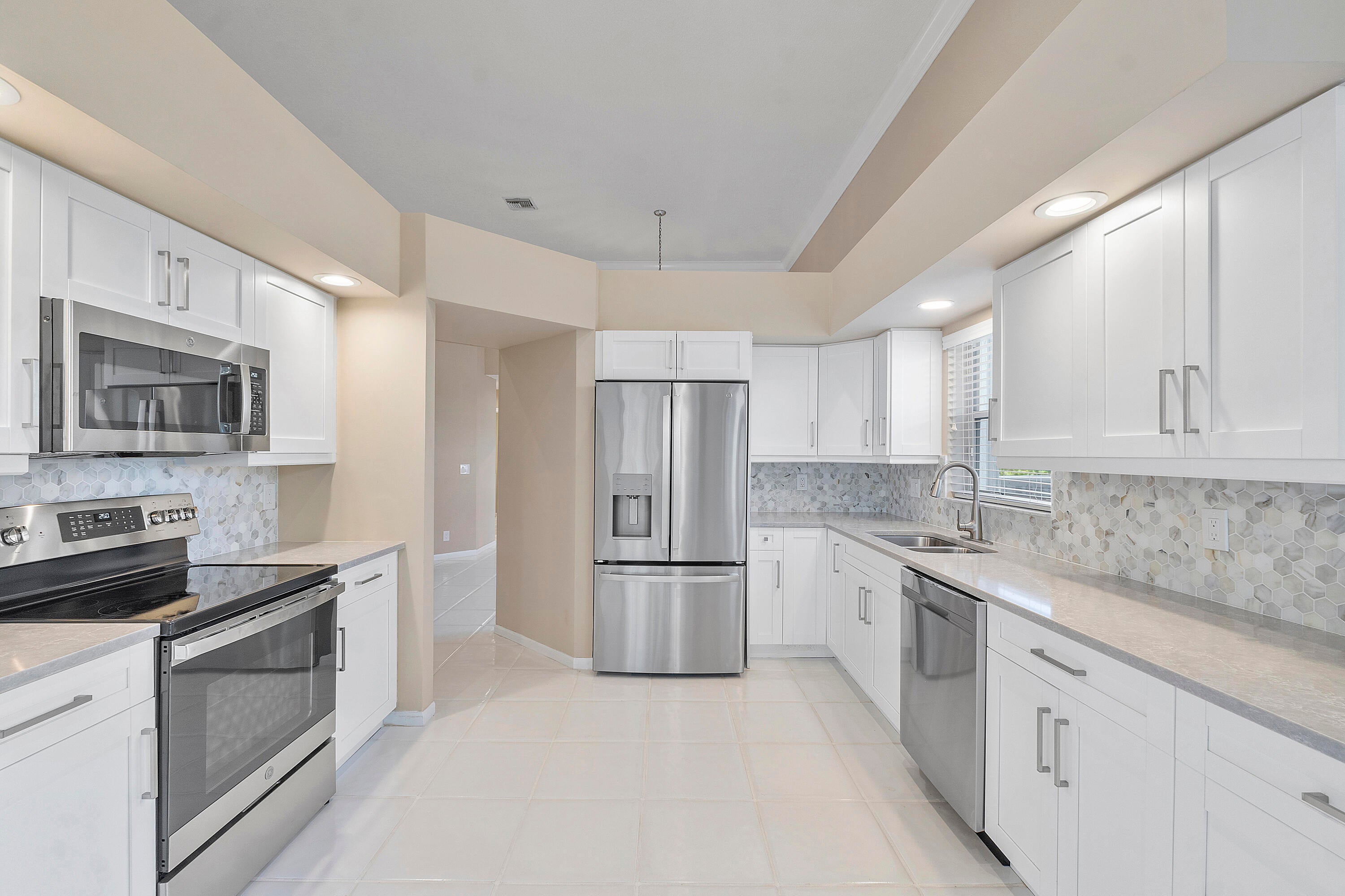 Discover this beautifully remodeled & pristine gem with incredible direct lake views, in Indian Spring, a vibrant 55+ community. This freshly painted 3-bed, 3-bath home features contemporary, neutral fixtures throughout, creating a modern and inviting atmosphere. The brand-new kitchen is equipped with state-of-the-art appliances, sleek cabinets and elegant countertops. The renovated bathrooms include a spacious master bath with a large walk-in shower. 2 of 3 bedrooms are newly carpeted and offer overabundant closet space, including a double-entry W/I closet.The living space is filled with natural light. The open layout blends comfort with sophistication. Perfect for entertaining, the home includes a bar area for gatherings and a charming sunroom for relaxation....and to soak in the serene lake views. Take part in the active lifestyle with Indian Spring Country Club where memberships are optional! Don't miss the chance to make this stunning home yours!