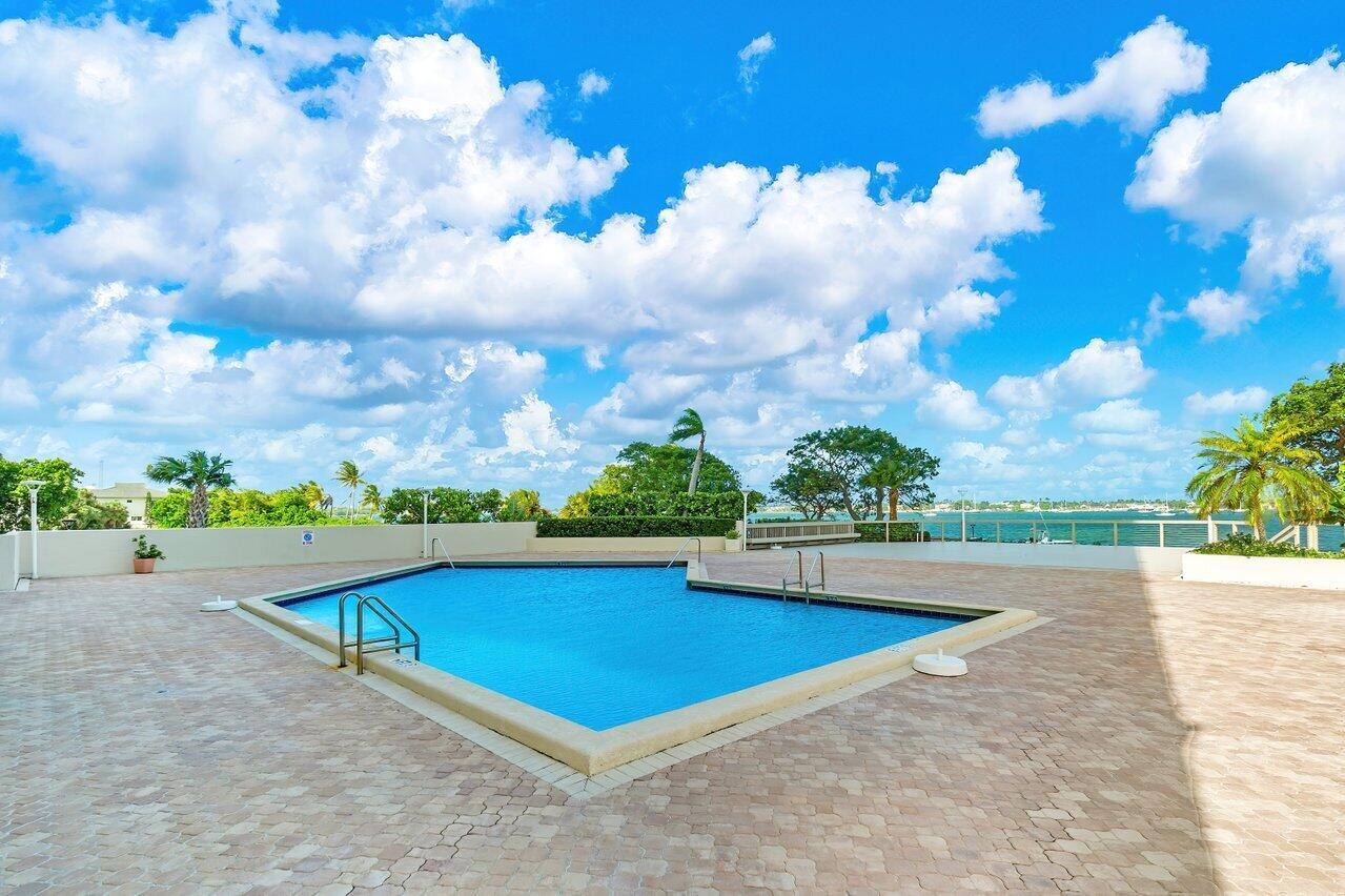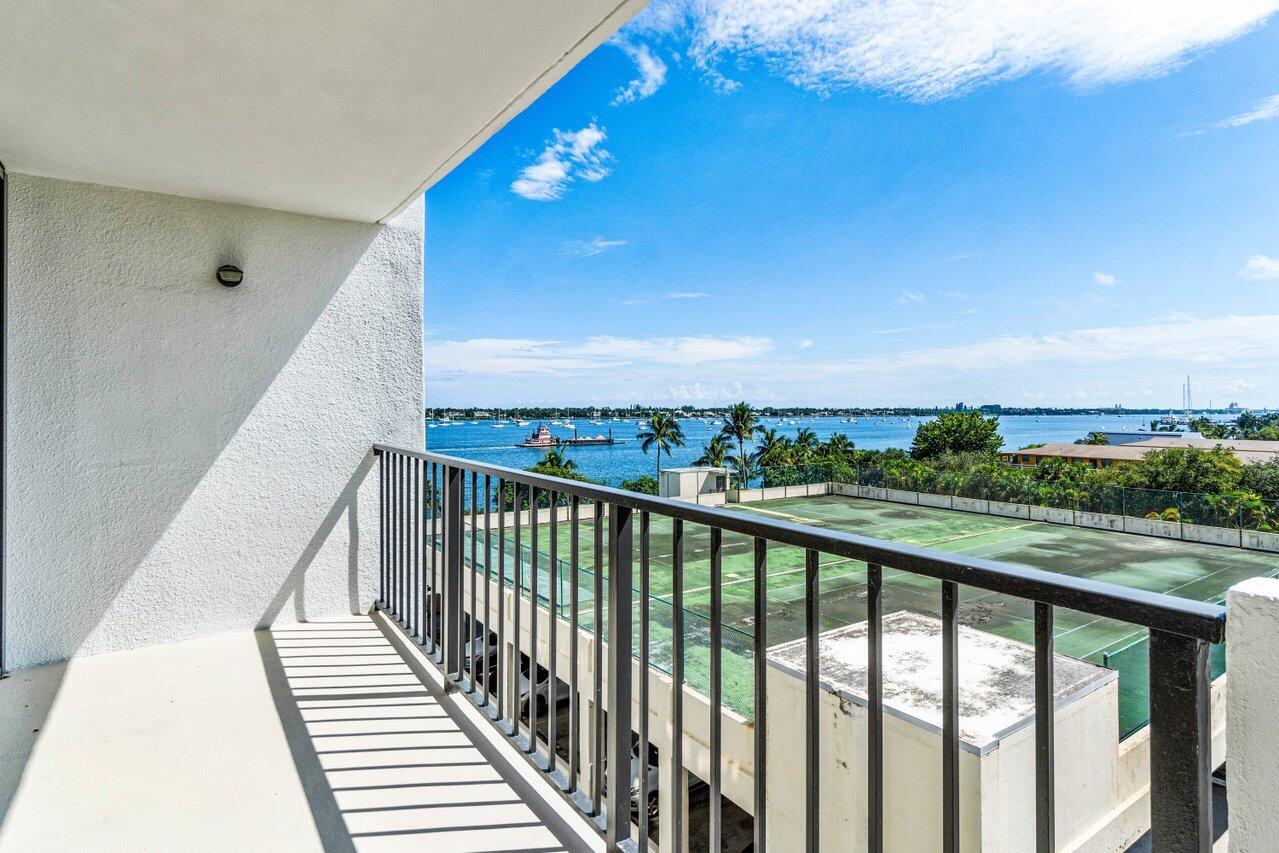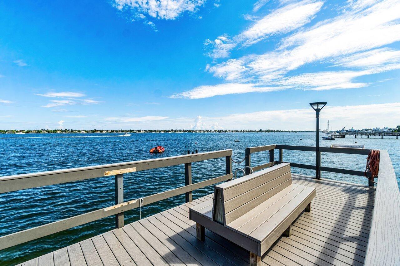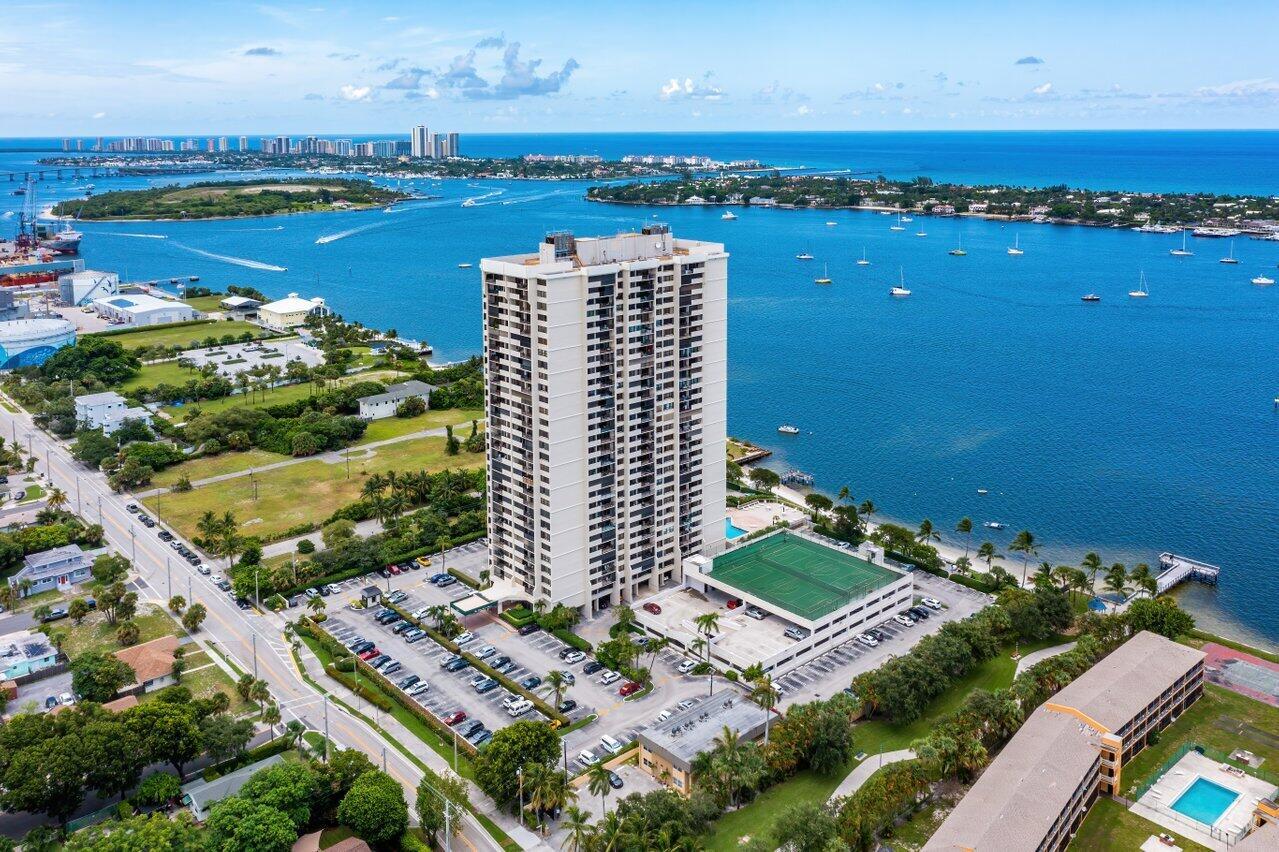 Great investment, tenant thru 7/2026. Large private beach! Updated 2BR/ 2BA condo w/large balcony & Intracoastal view! Large rooms & great living space! New interior paint, new recessed lighting, tiled floors throughout (NO CARPET), new dishwasher, ALL impact windows/sliders, foyer closet, trash chute conveniently nearby, air conditioned storage locker. Manned gated entry. Building: front desk attendant (8:30-5), lobby, activity room, 2 social rooms (1 w/catering kitchen, 1 w/wet bar), library, fitness, shower rm w sauna, pool w/waterfront sun deck, hot tub. tiki, grills, PRIVATE BEACH, pier w cleaning station, kayak/canoe ($120/yr rental). Quiet location close to waterfront dog park, flotilla club (w referral), sailing club, manatee lagoon, PBI airport, & Rybovich Marina!