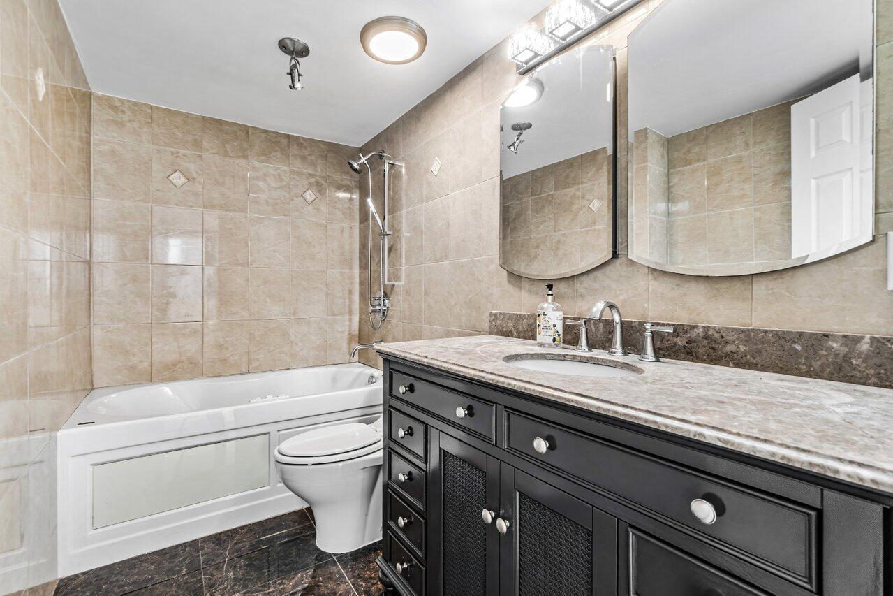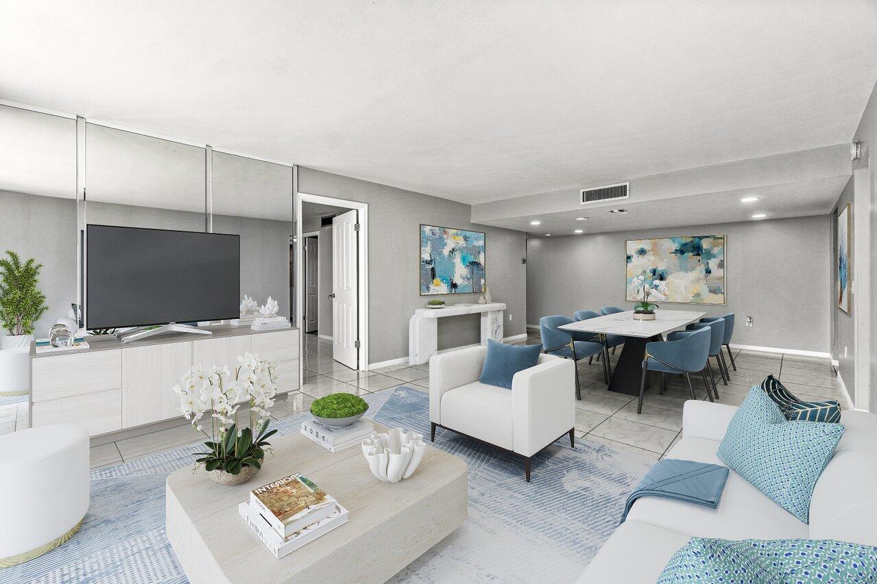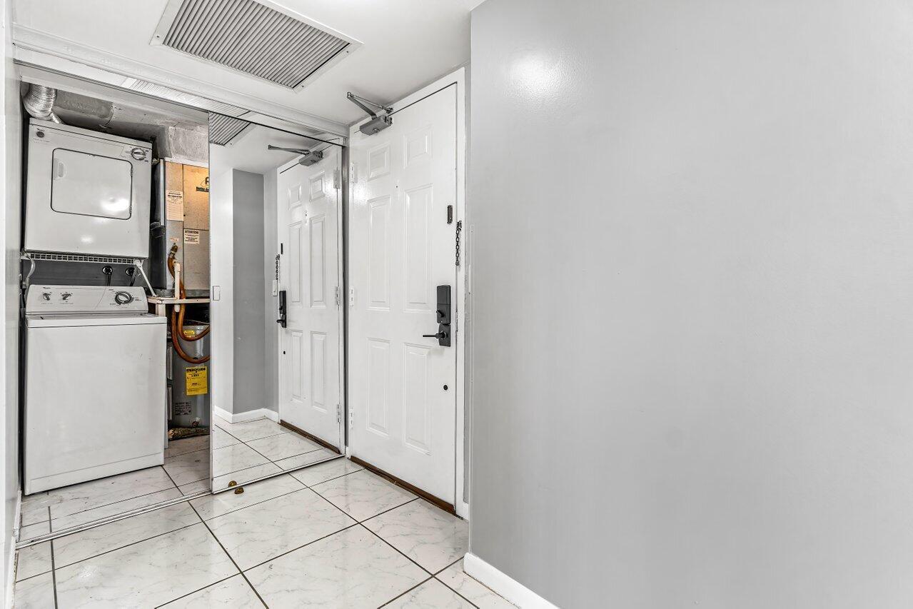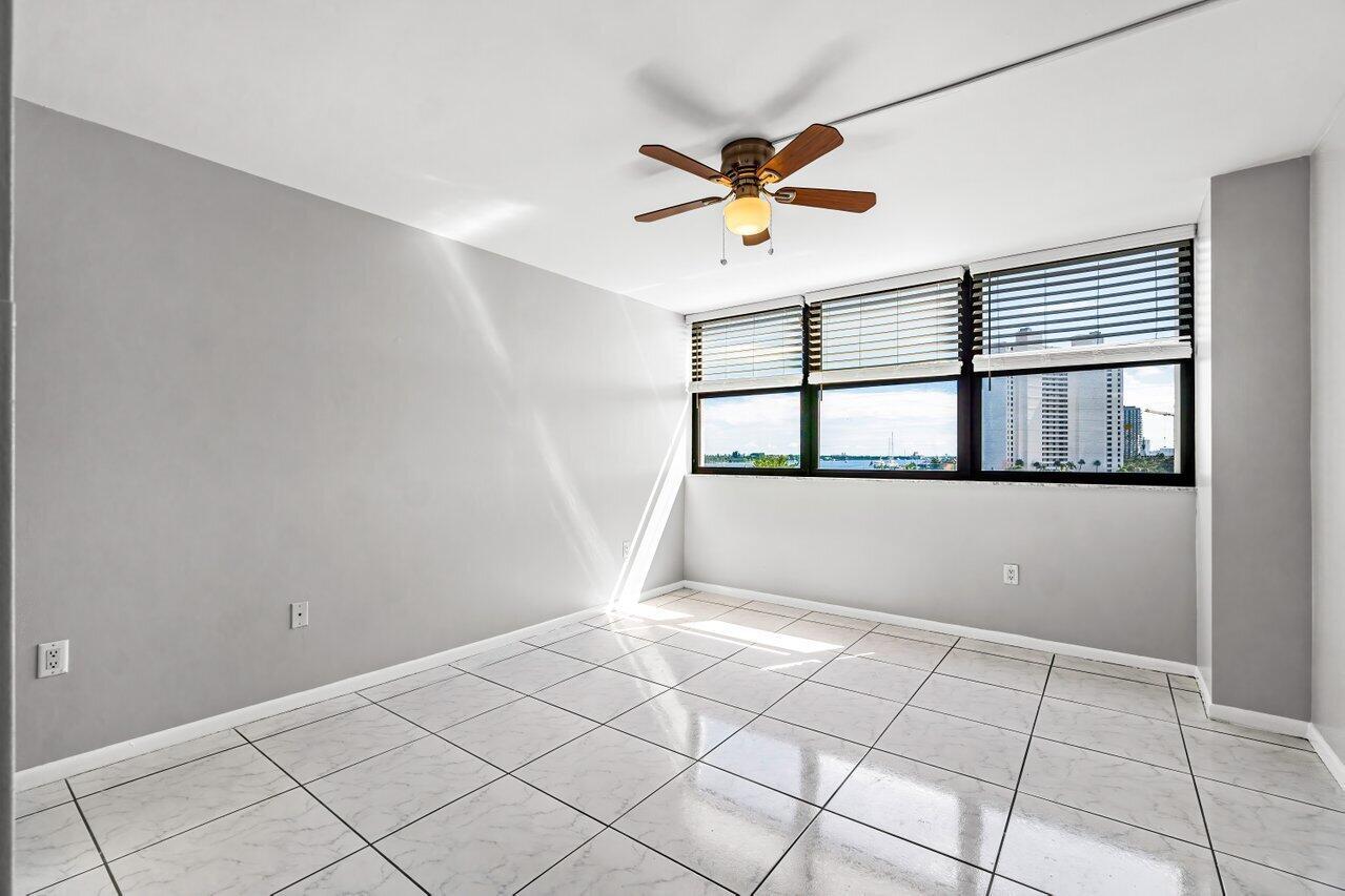 Great investment, tenant thru 7/2026. Large private beach! Updated 2BR/ 2BA condo w/large balcony & Intracoastal view! Large rooms & great living space! New interior paint, new recessed lighting, tiled floors throughout (NO CARPET), new dishwasher, ALL impact windows/sliders, foyer closet, trash chute conveniently nearby, air conditioned storage locker. Manned gated entry. Building: front desk attendant (8:30-5), lobby, activity room, 2 social rooms (1 w/catering kitchen, 1 w/wet bar), library, fitness, shower rm w sauna, pool w/waterfront sun deck, hot tub. tiki, grills, PRIVATE BEACH, pier w cleaning station, kayak/canoe ($120/yr rental). Quiet location close to waterfront dog park, flotilla club (w referral), sailing club, manatee lagoon, PBI airport, & Rybovich Marina!
