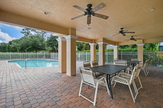 OFFERING A $5K CREDIT TOWARDS CLOSING COSTS. Villa Palma at Northlake is a gated community that welcomes pets and features a small dog park along with sidewalks for leisurely strolls. This 4-bedroom, 2.5-bathroom residence has a saltwater pool, a fenced yard, and a screened porch equipped with seating, a built-in grill, and a mini fridge. The backyard has an open dining patio adjacent to the pool, complemented by banana trees that enhance the lush landscaping and provide added privacy. NEW TILE ROOF FEB 2025.