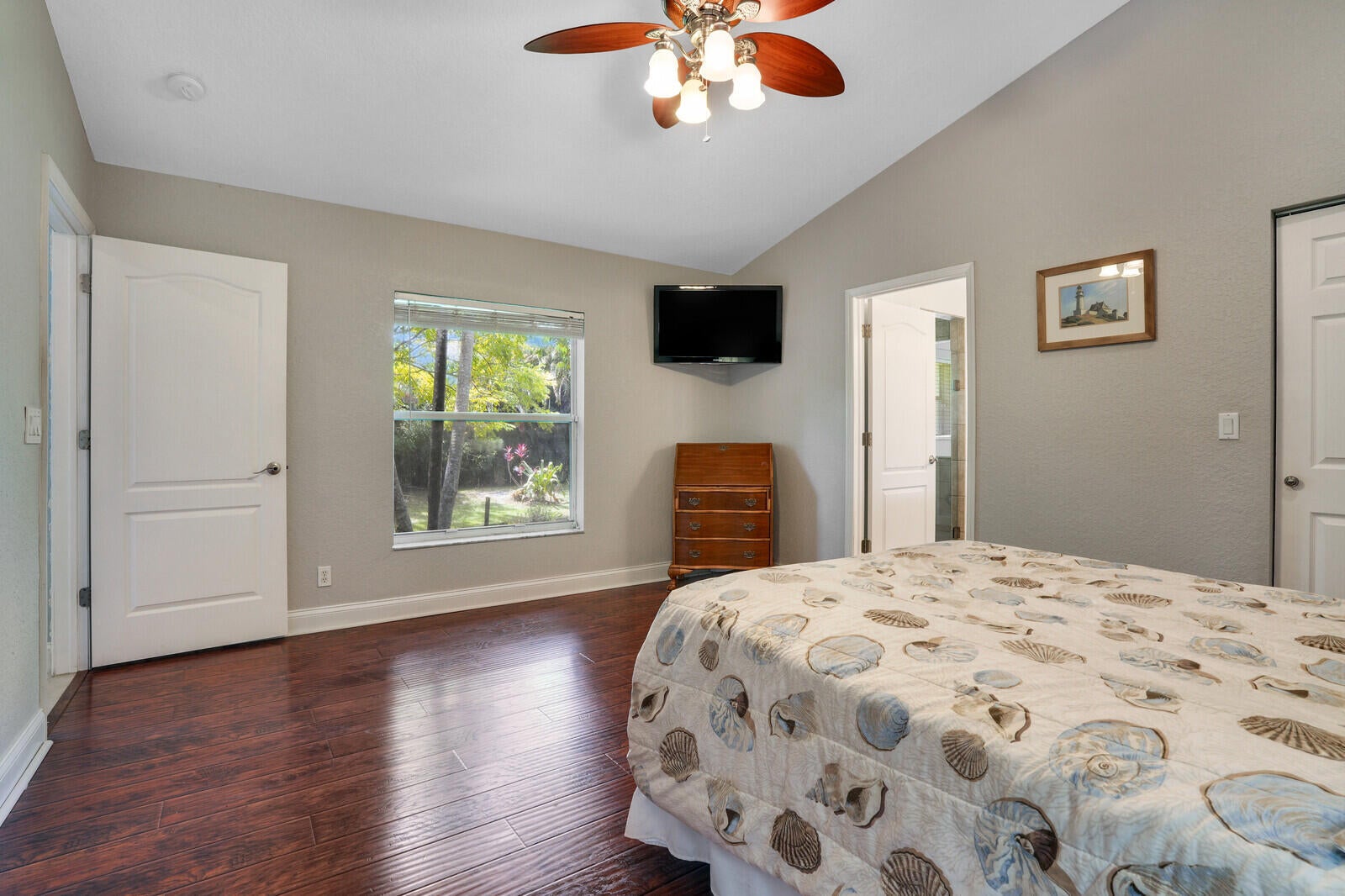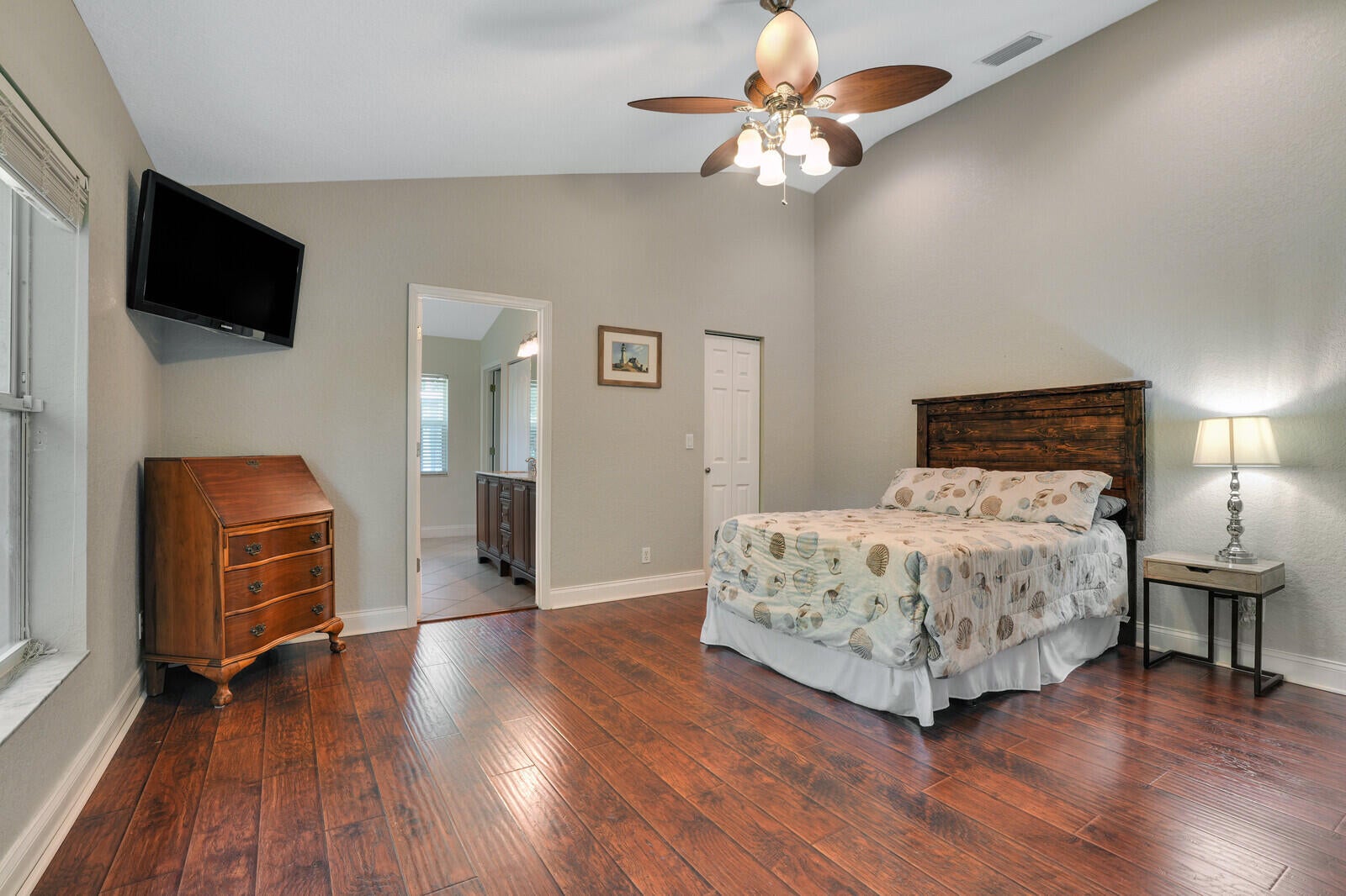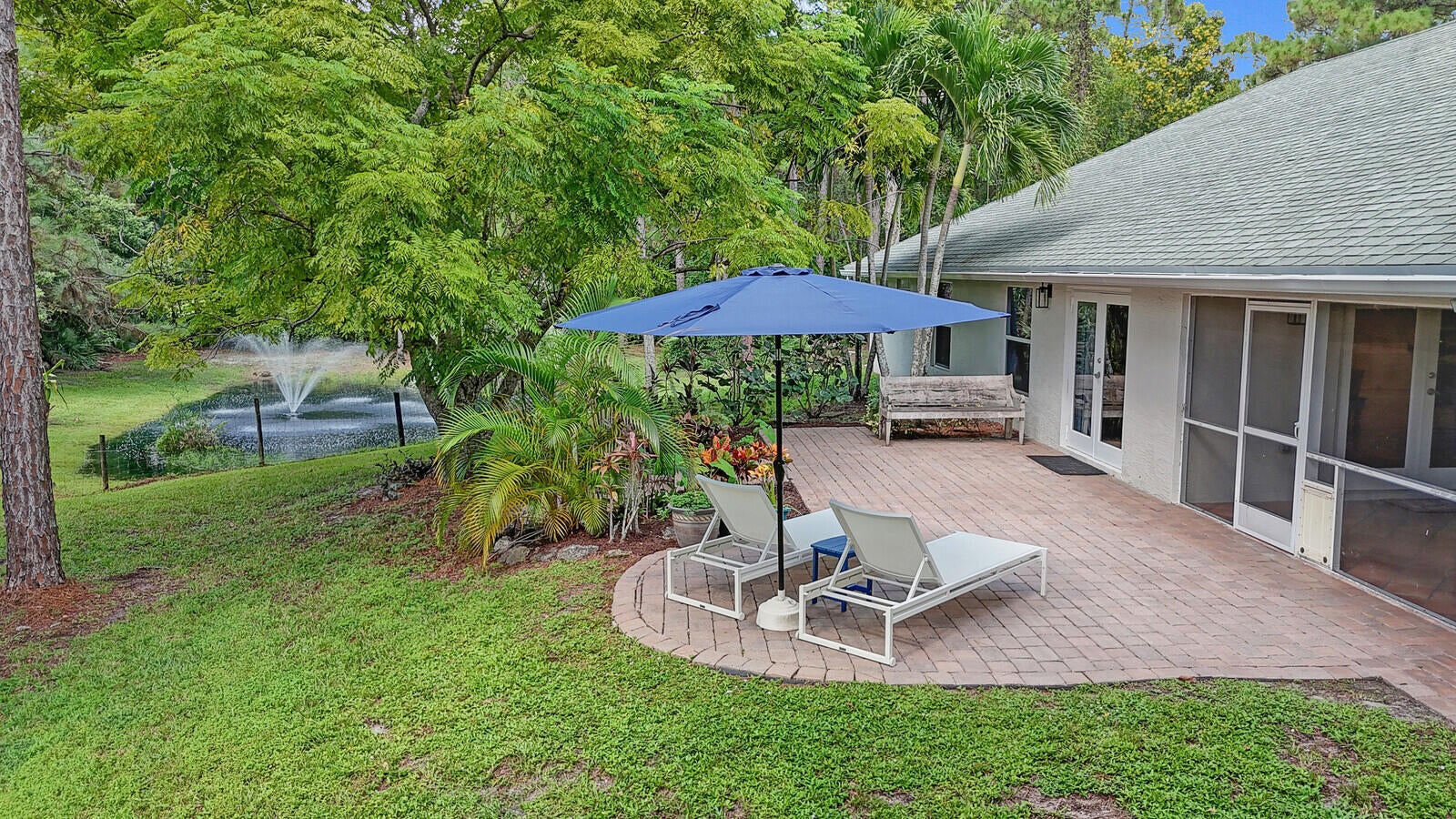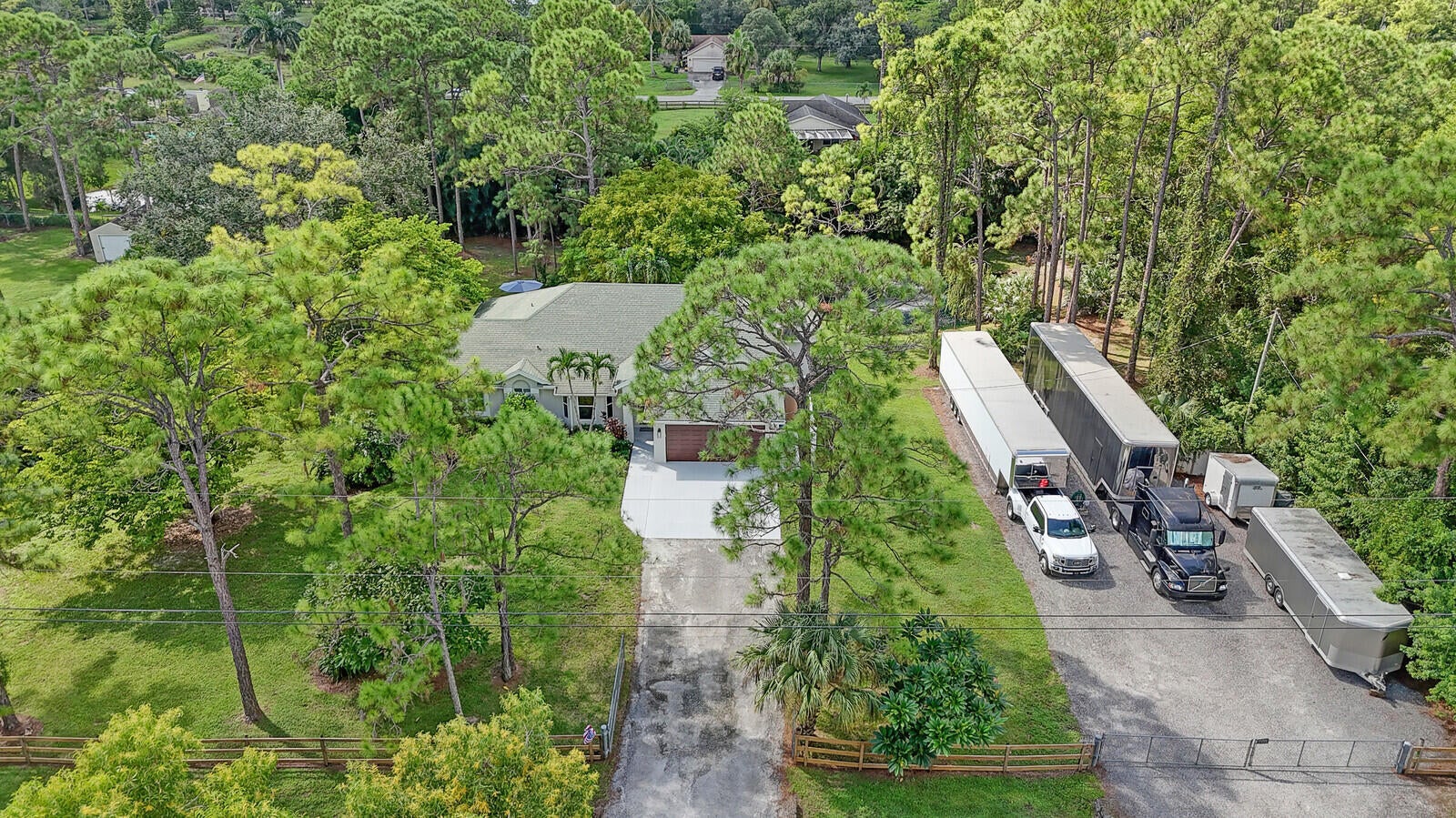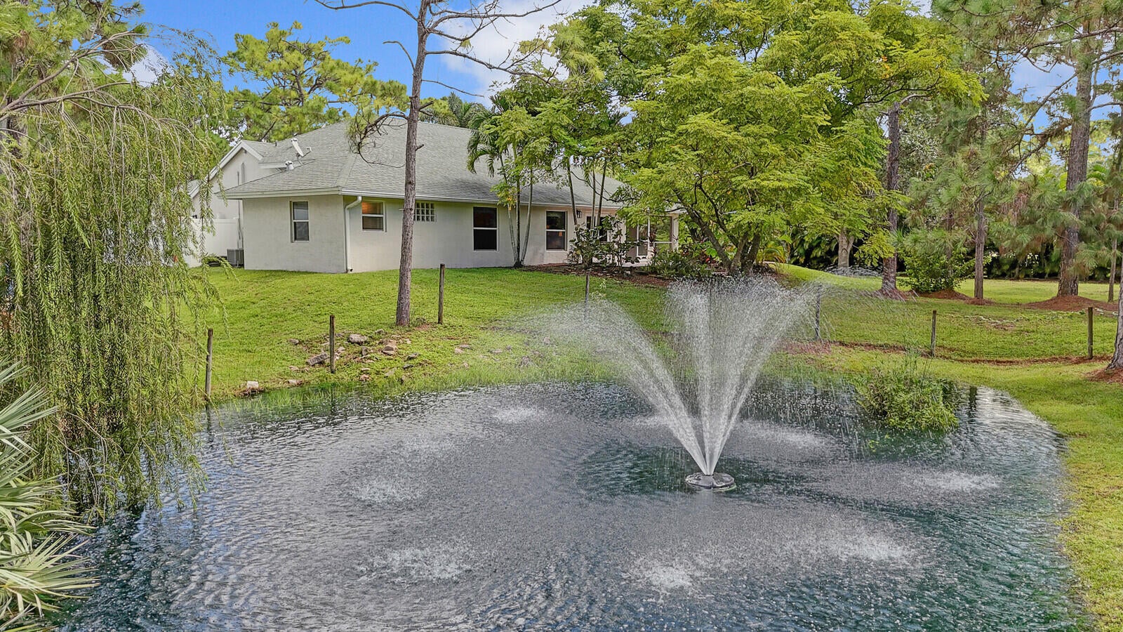 Welcome to the country! Bring your RV, Boat or horses!This CBS/concrete construction home is set on a fully fenced, 1.15-acre lot. Meticulously maintained featuring 4 bedrooms (with 2 master suites), 3 full bathrooms and a 2 car garage with upgrades throughout. Upgrades include a NEW ROOF (9/2025), complete RO (Reverse Osmosis) water system, custom kitchen, dual newer a/c units, vaulted ceilings in nearly every room, french doors, and separate oversize driveway for all your toys with 30 amp service and water supply.The main Master suite features a large walk-in closet, double sinks, water closet, spacious walk-in shower, and Roman jetted tub. Second Master bedroom has a newly updated ensuite and walk-in closet. The beautifully updated kitchen showcases custom real wood cabinets, double oven, induction cooktop, counter depth refrigerator, granite countertops, and kitchen island. French doors open up to a screened porch and paver patio, where you can unwind while overlooking a serene fishing pond with jet fountain. With no HOA, you'll have the freedom to bring your RV or boat to park in the separate, gated driveway with 30 amp electric hookups and running water. Recent updates include a new roof, two new A/C units, new Bosch stainless steel dishwasher, and freshly painted exterior. Only 5 minutes to new Publix plaza coming soon at Northlake and Coconut and easy access to the turnpike and 95.