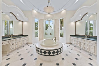 Golf Membership initiation INCREASING on Nov 15th! Rarely available stunning custom home in St Thomas at BallenIsles Country Club. Spanning approx 6,500 sq ft of living space, this residence features 5 beds, 5.1 baths, office, soaring ceilings, abundant natural light, new LED lighting, and 2020 roof, all set on a spacious, private lot. Impressive 12 ft doors welcome you to a magnificent foyer, leading to the living room with a dual-sided fireplace. The master suite features an oversized bedroom with a sitting area, his and hers walk-in closets, dual sinks and water closets. Kitchen and family room boast soaring ceilings, a sunken bar, and private wine cellar, offering ample space for entertaining. The grandeur extends onto the patio, summer kitchen, and pool area. Must see to appreciate