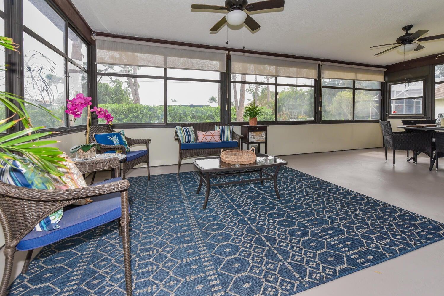 Escape to this beautifully updated home on Florida's stunning Treasure Coast! Fully furnished single family home offers everything you need for a memorable vacation with stylish, modern interiors with cozy living spaces. Home features a fully equipped kitchen and three spacious bedrooms that are thoughtfully furnished. The split floor plan layout and serene decor make it the perfect retreat for families or small groups. Outside, soak up the famous Florida weather in the privacy of your own lush landscaped backyard. The outdoor living areas include a lanai (Florida room) with outdoor seating and dining area, a barbeque grill on the exterior patio and a stunning fire pit perfect for sips and smores after a long day. Explore nearby golf courses, beaches, water activities, shopping & dining.Entire Home | Pet Friendly w/ Fee | Free WiFi/Cable | Comforting Amenities | Includes Water, Electric & Trash Removal