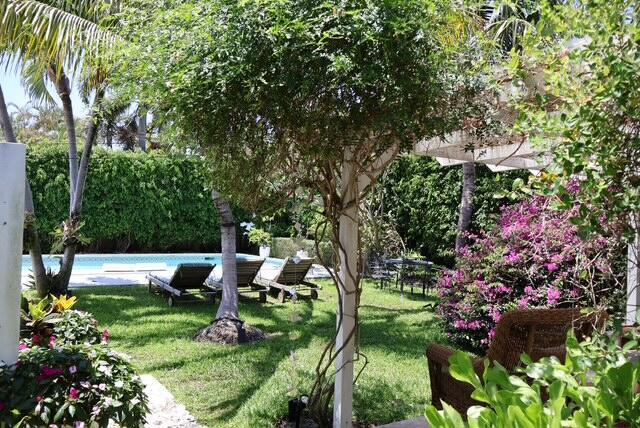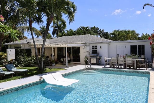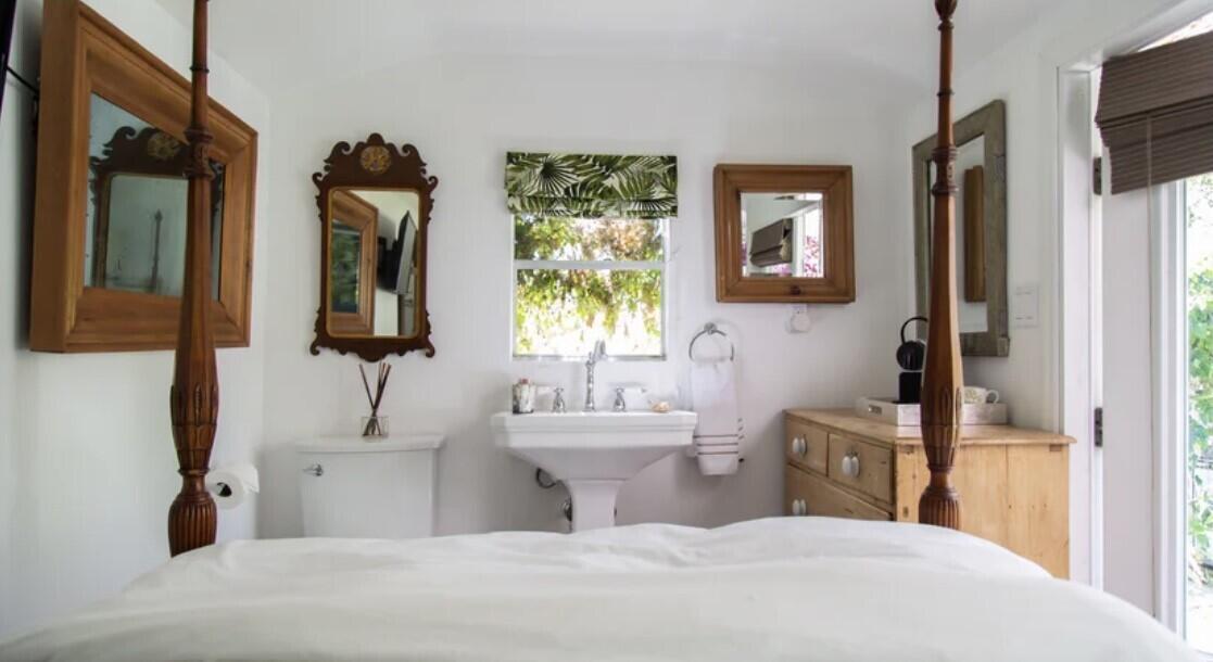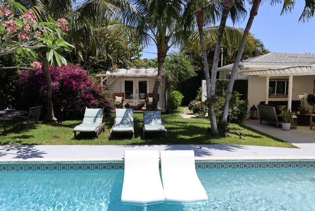 Filled with art and antiques from around the world, this charming bungalow boasts 3 bedrooms, 1 full bath, 2 half baths and one outdoor shower. The main house has two bedrooms, one queen and one king, with a full bath in between. There is a cabana bath off the kitchen with access to the pool.''The Shed'' has a full bed with toilet and sink inside the room and a very private outdoor shower just steps off the porch. The seasonal rent is $16,500/month. Landlord looking for 2-3 month term during season.